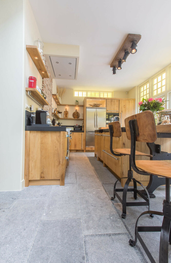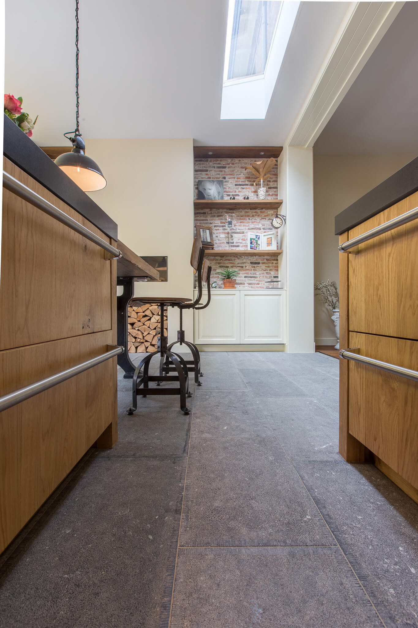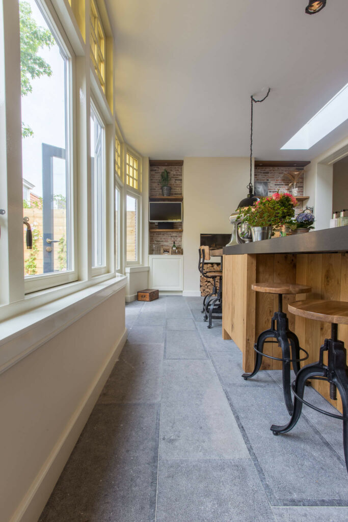 De familie Joesten wilde graag een Belgisch Hardstenen vloer voor in de woonkeuken van hun woning. Bij ons in de showroom zijn we samen langs de verschillende Belgische Hardsteen gelopen en al snel viel de Belgisch Hardsteen Old Country Style in de smaak. Deze tegel is het dan ook geworden.