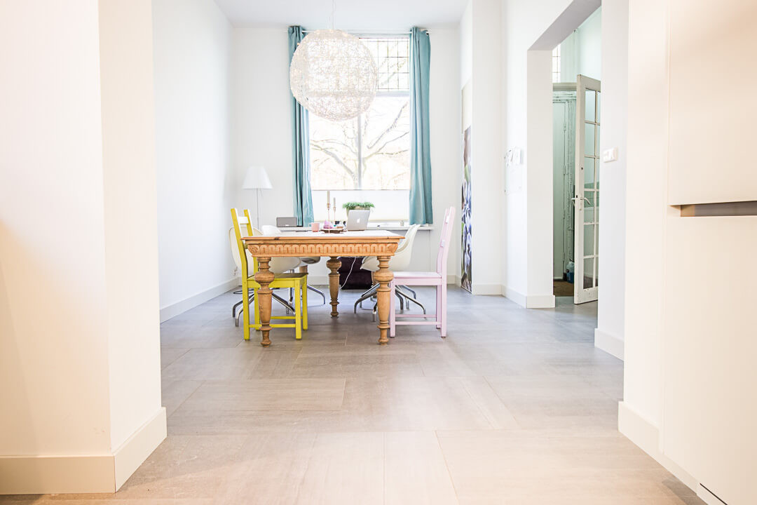 Wij hebben alle materialen geleverd. Daarna hebben onze eigen tegelzetters met veel plezier de vloer verwerkt.