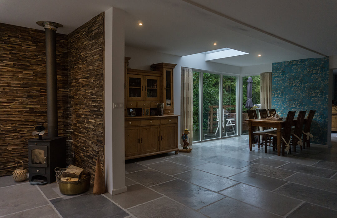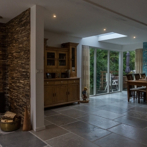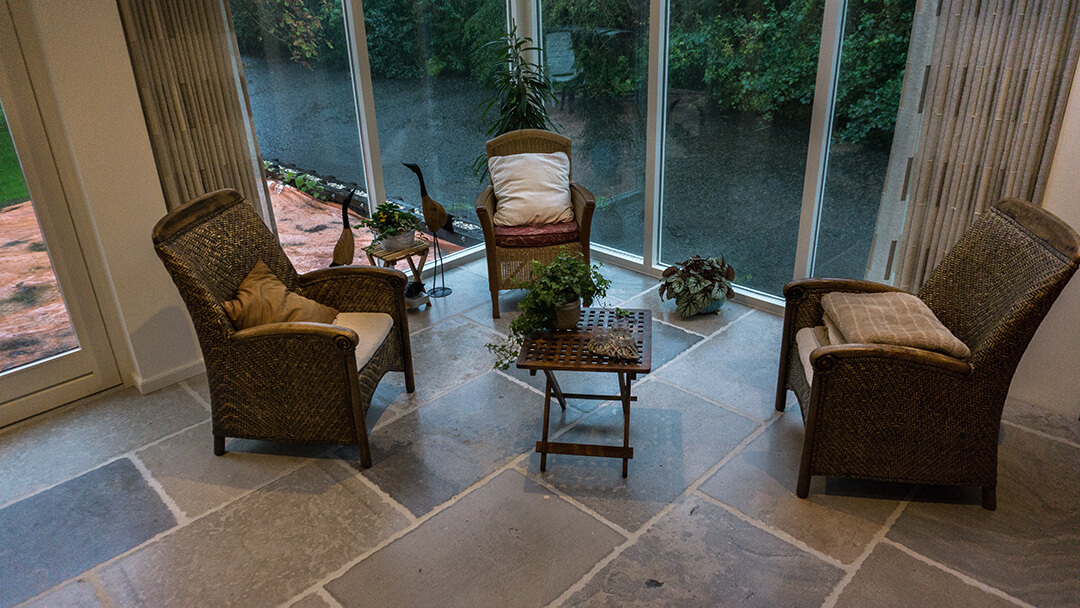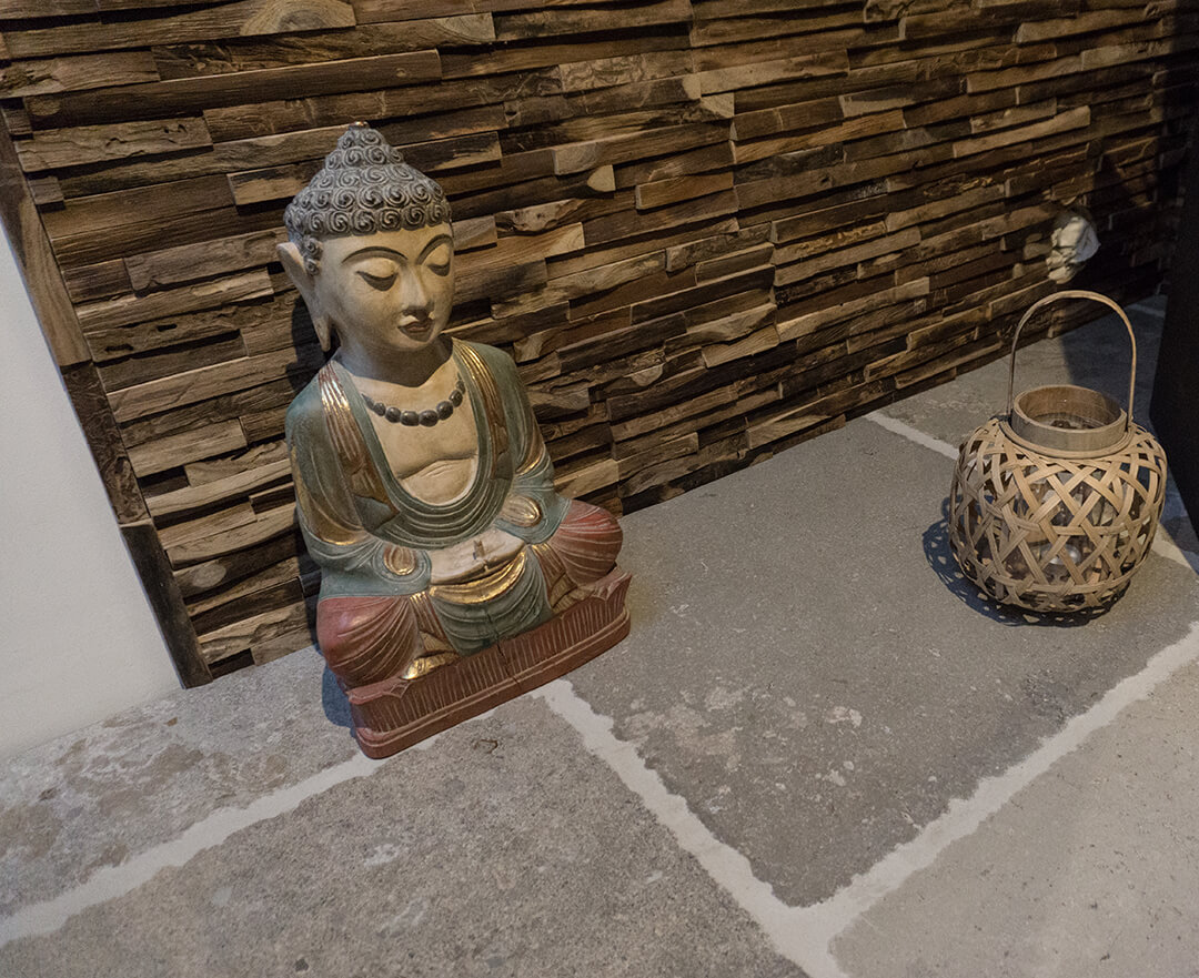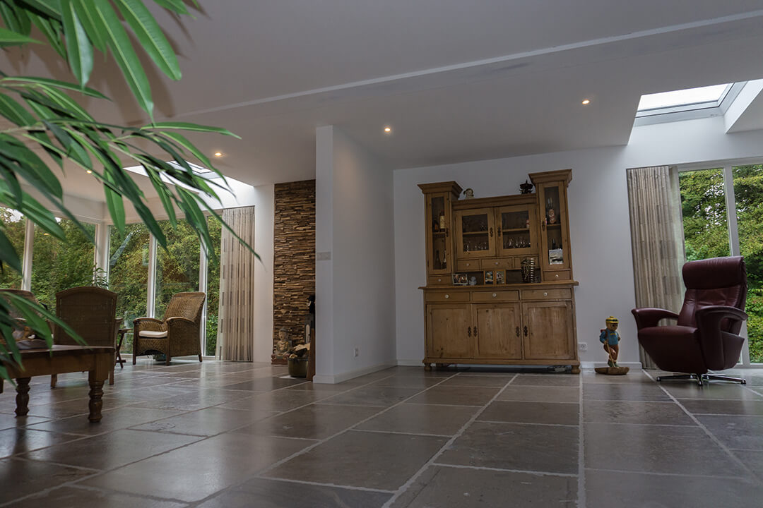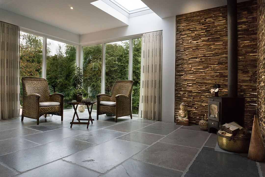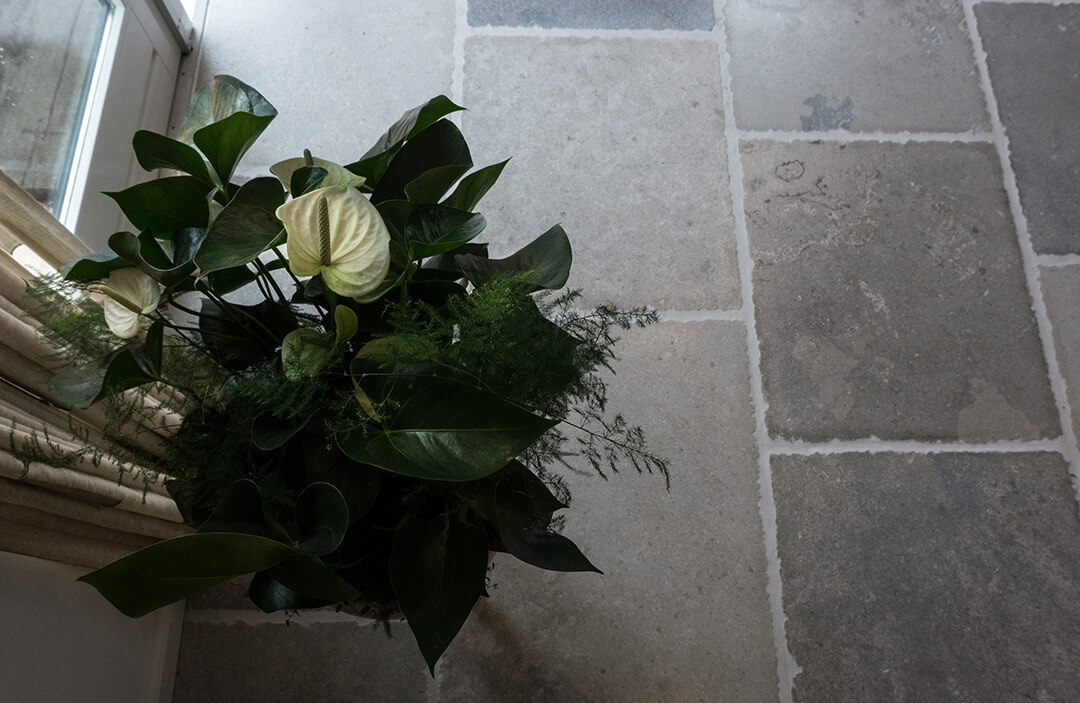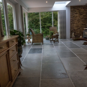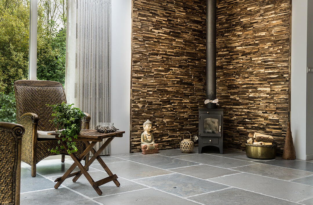 De verouderde zijdes en de robuustheid van deze Franse kalksteen zorgt voor een landelijk karakter in de woning van de familie Kleinbekman. Daarnaast zorgt het fijn geschuurde oppervlak voor een mooie matte uitstraling.