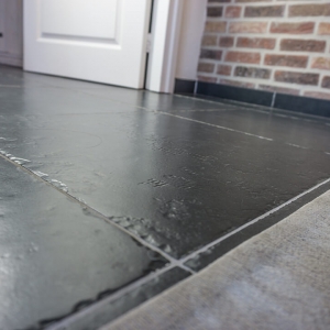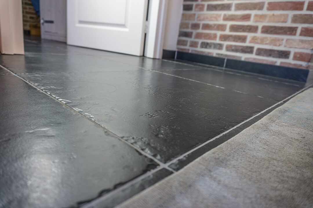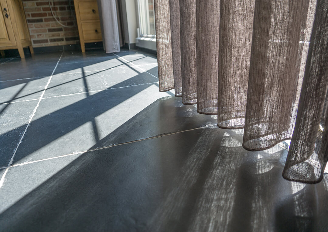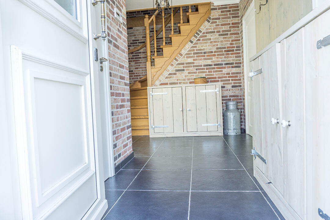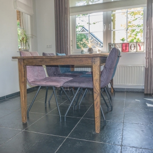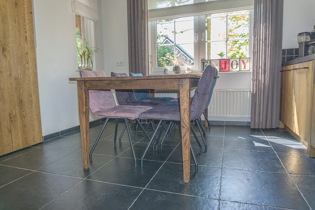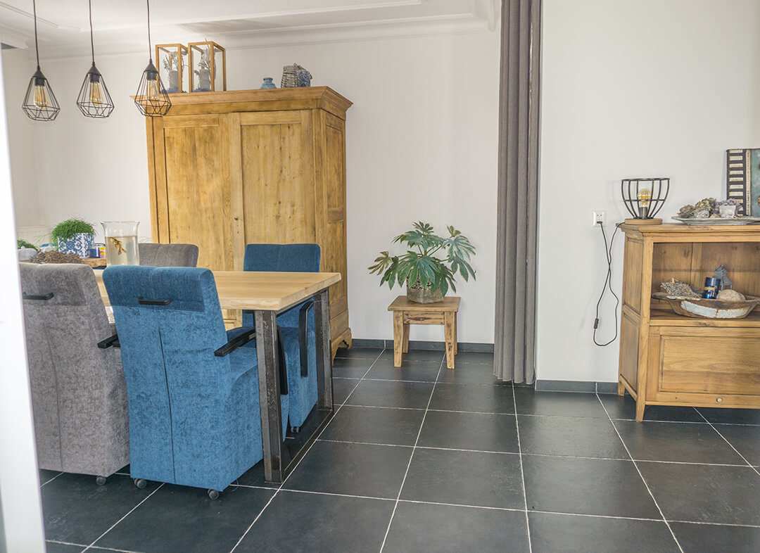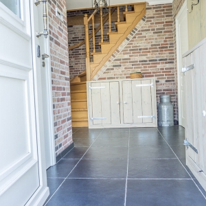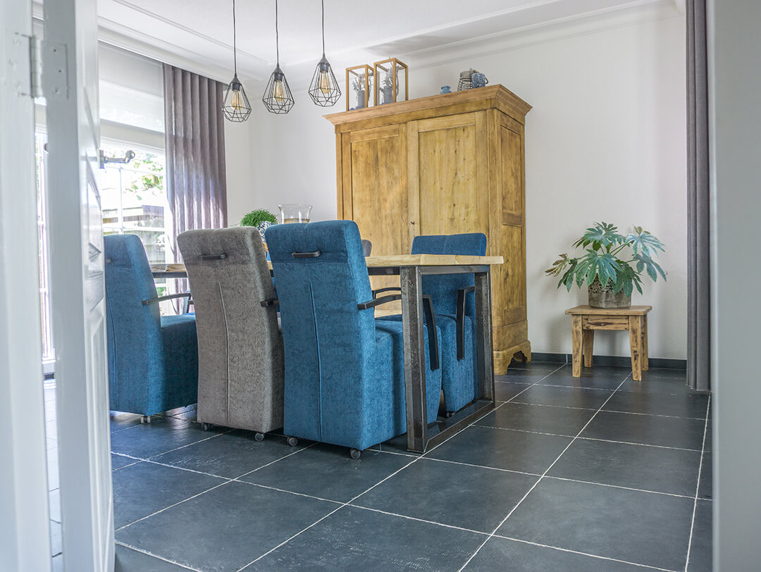 De familie Oomen was op zoek naar een vloer waar echt op geleefd mag worden. De Harappa Look Keramiek is een van de makkelijkste vloeren die bijna 1 op 1 op een echte leisteen uit India lijkt.