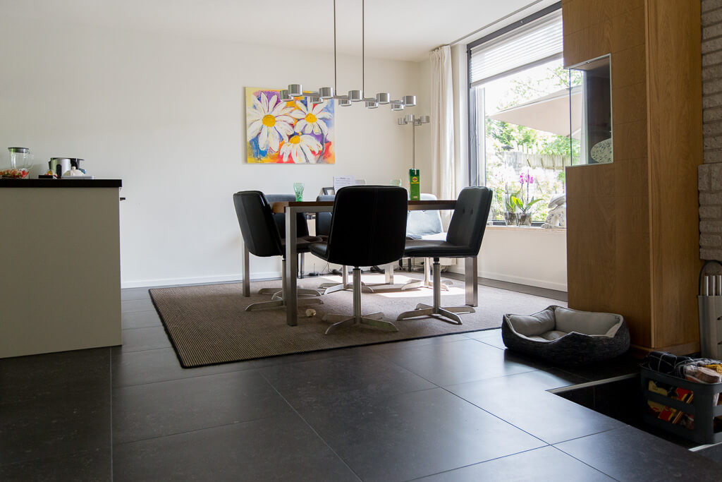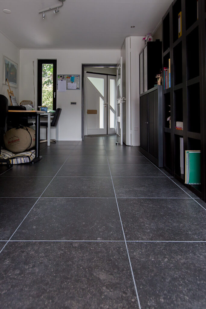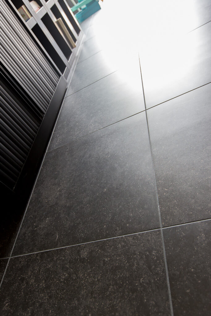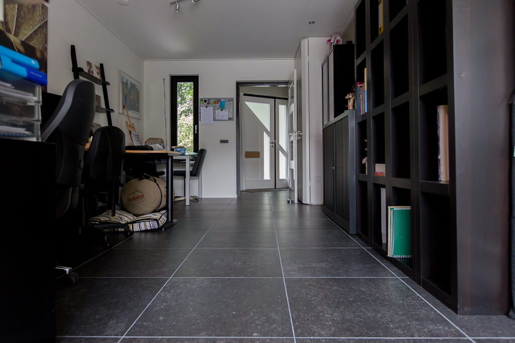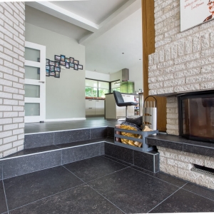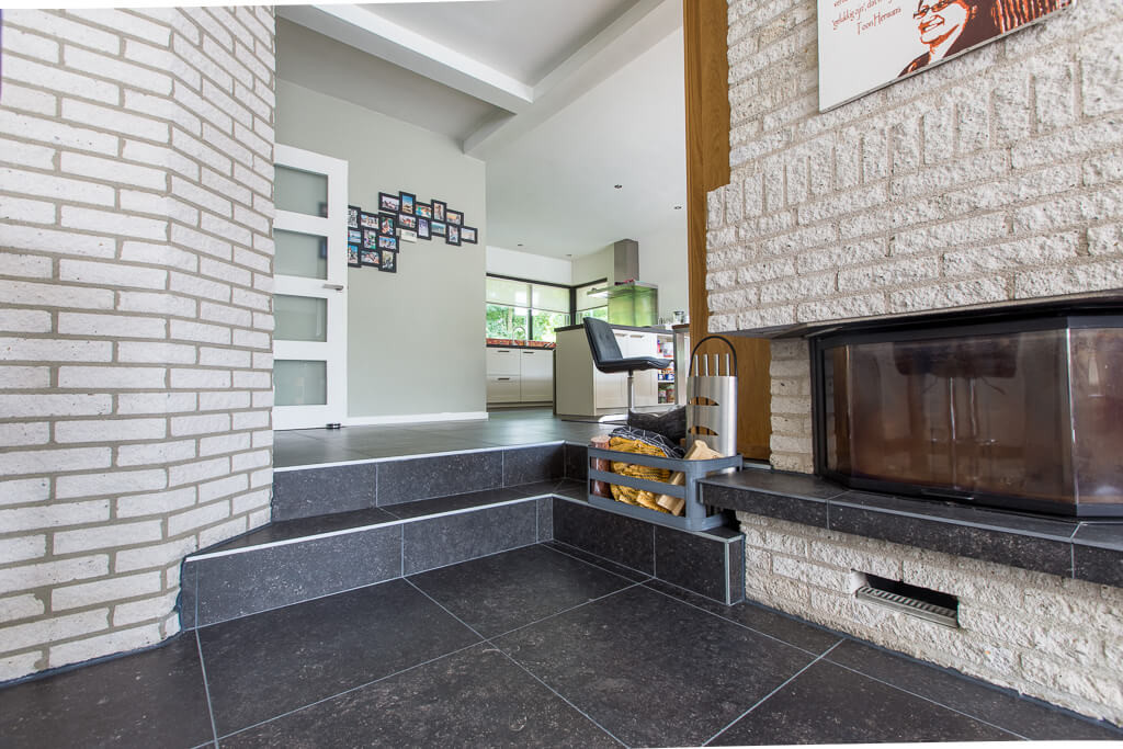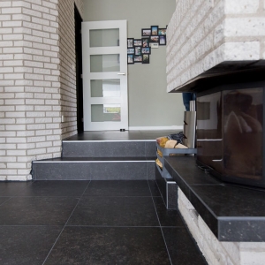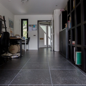 Voor binnen wilde de familie Pelz ontzettend graag een Belgisch hardsteen look. Er is uiteindelijk gekozen voor de Belgisch Hardsteen Look Keramiek Donker Gezoet. Voor het terras viel de keuze op de Nuovo Belgio Blue Rubbed.
