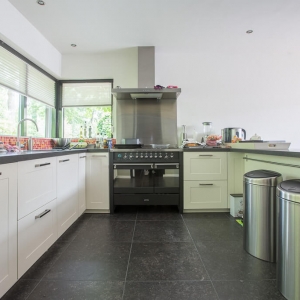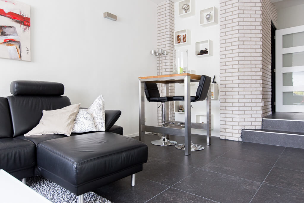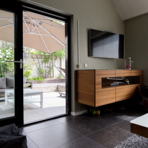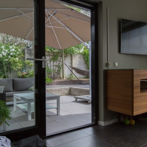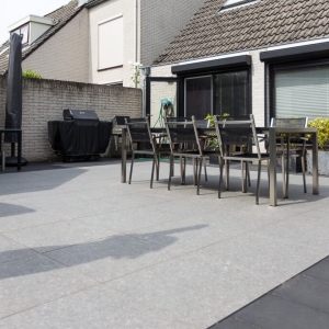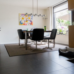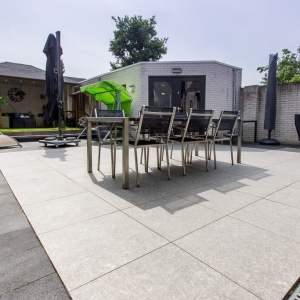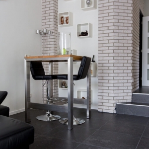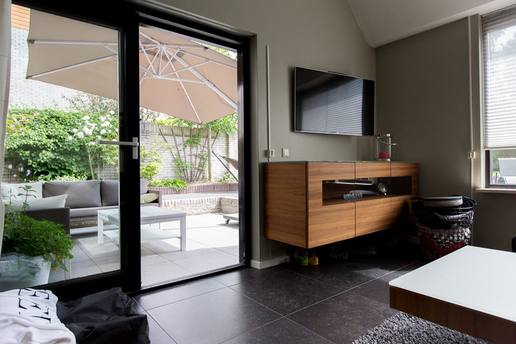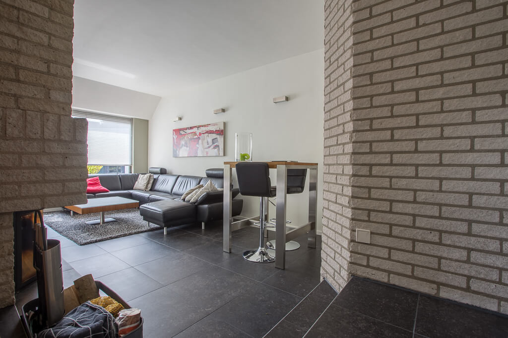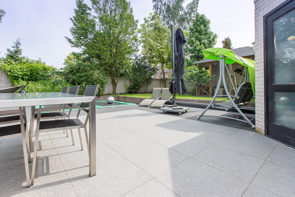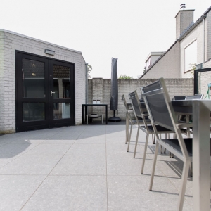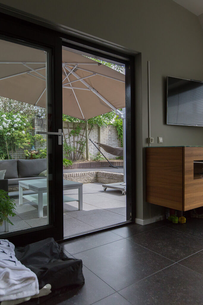 Voor binnen wilde de familie Pelz ontzettend graag een Belgisch hardsteen look. Er is uiteindelijk gekozen voor de Belgisch Hardsteen Look Keramiek Donker Gezoet. Voor het terras viel de keuze op de Nuovo Belgio Blue Rubbed.