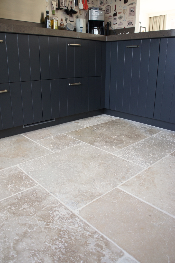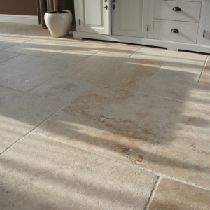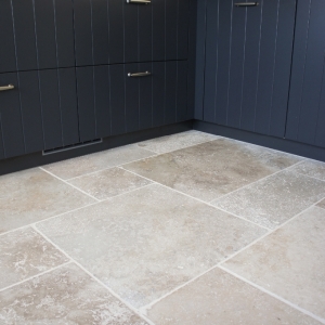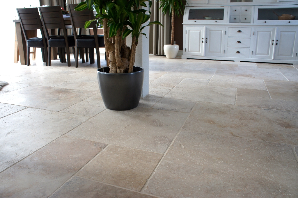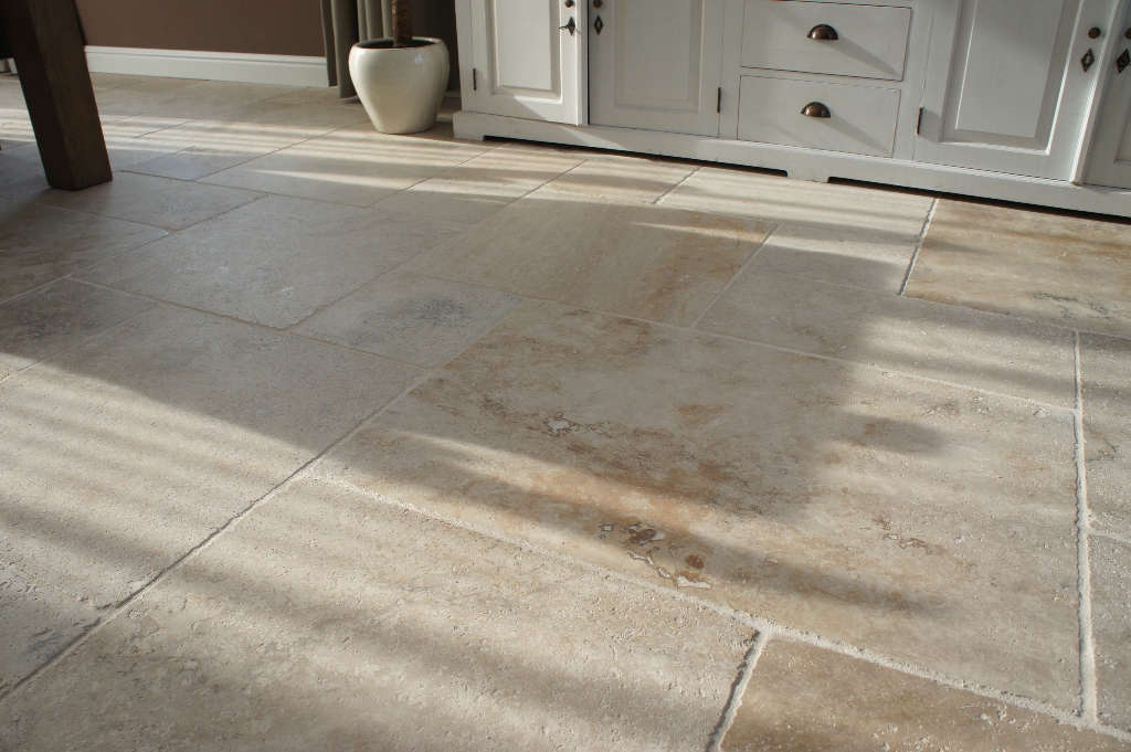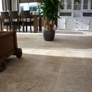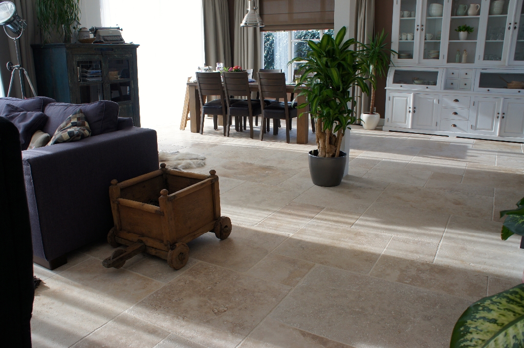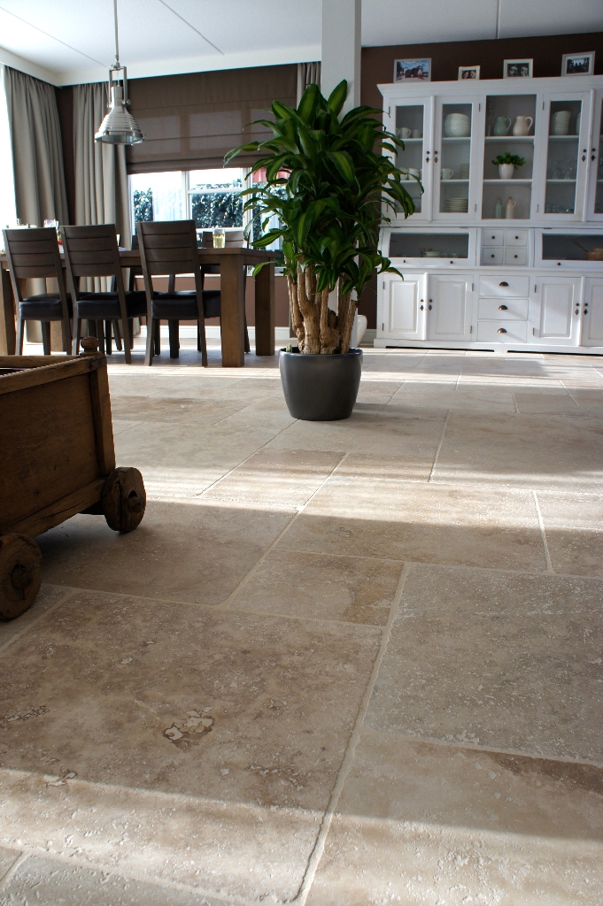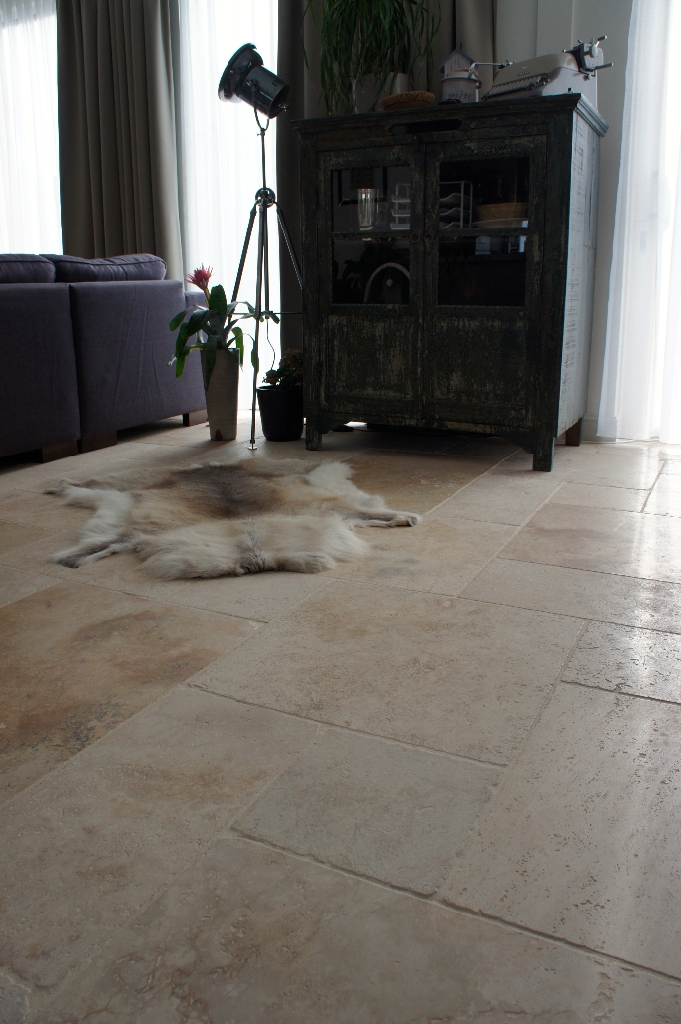 Deze prachtige travertin vloer werd ook gelegd door onze eigen tegelzetters van het Tegelzetters Gilde.