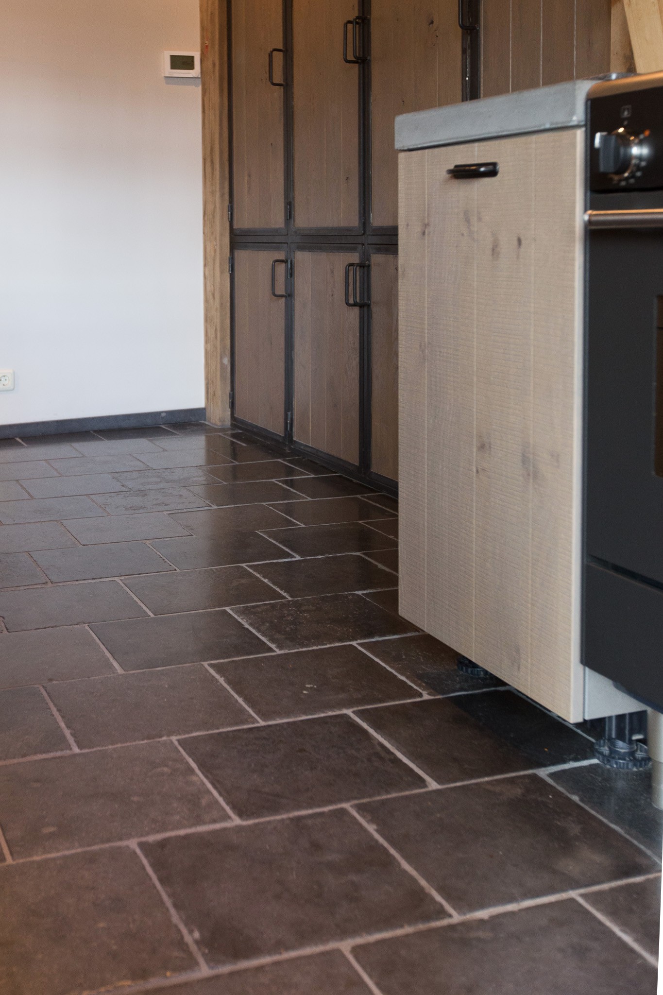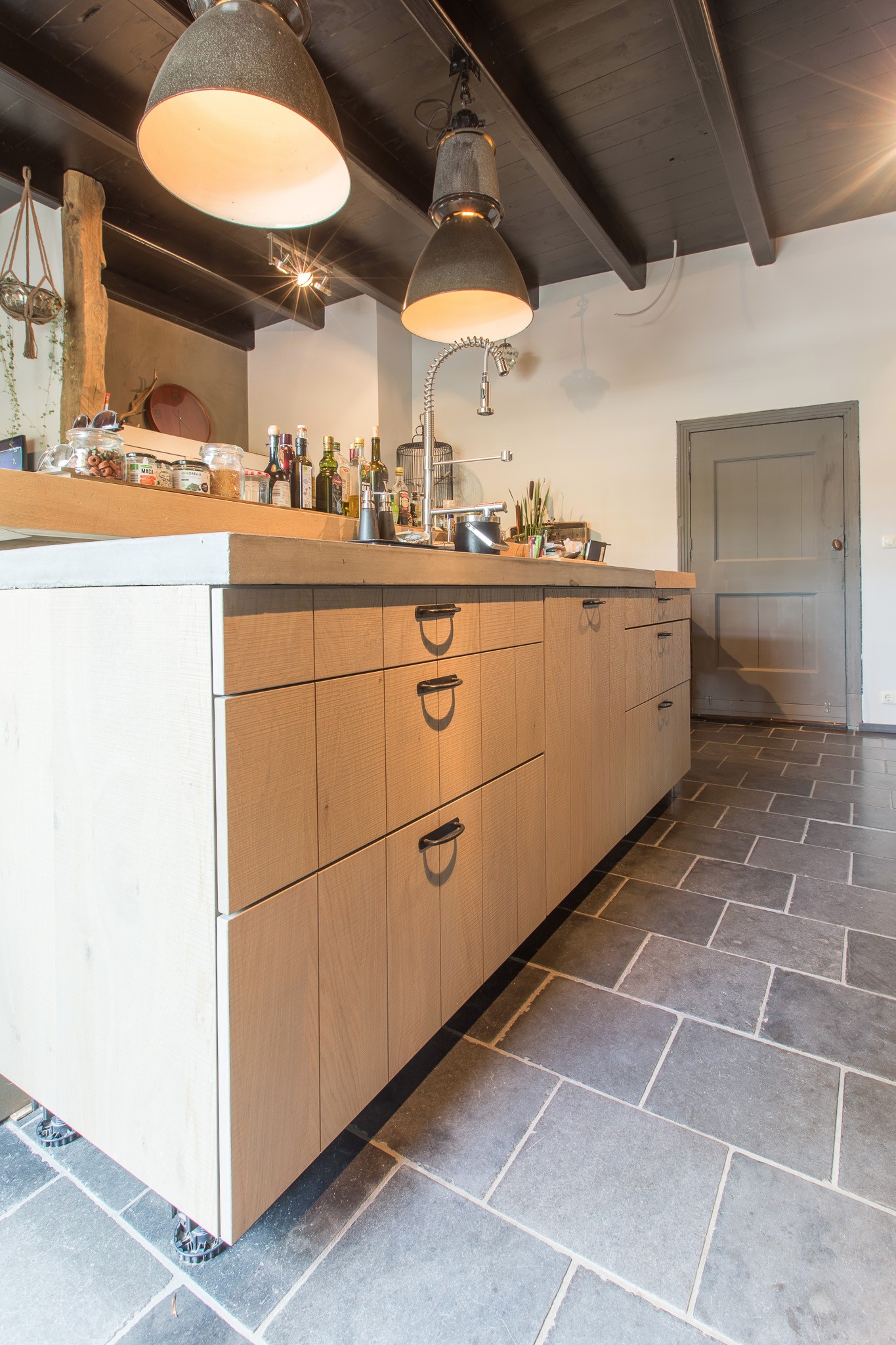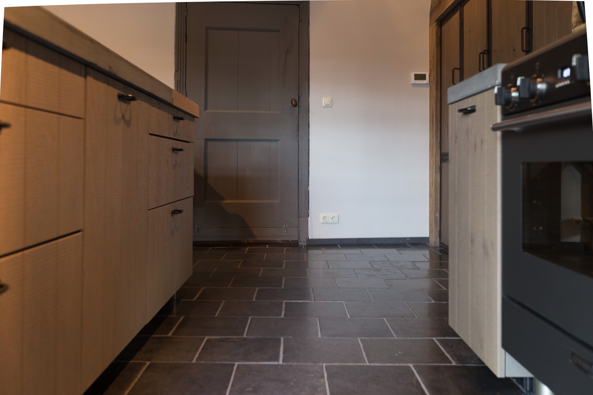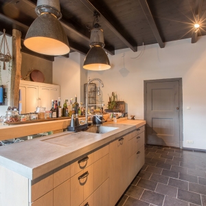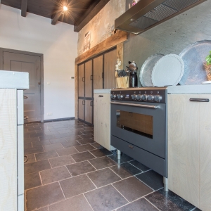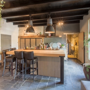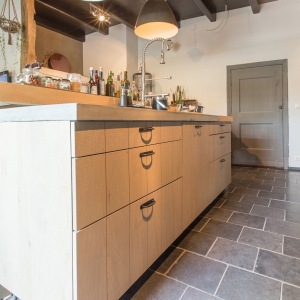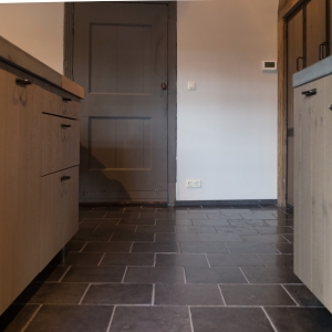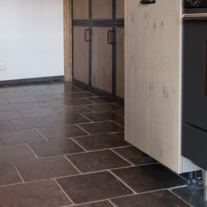 De familie Schoenmakers was op zoek naar een geschikte vloer voor in hun leefkeuken. Na kennismaking in onze showroom is er gekozen voor deze prachtige Belgisch Hardsteen Manueel Verouderd, Lichte Schuring tegels. Het resultaat is dan ook een bourgondische keuken waar in gekookt mag worden!