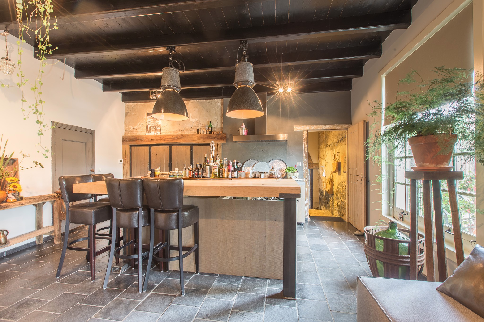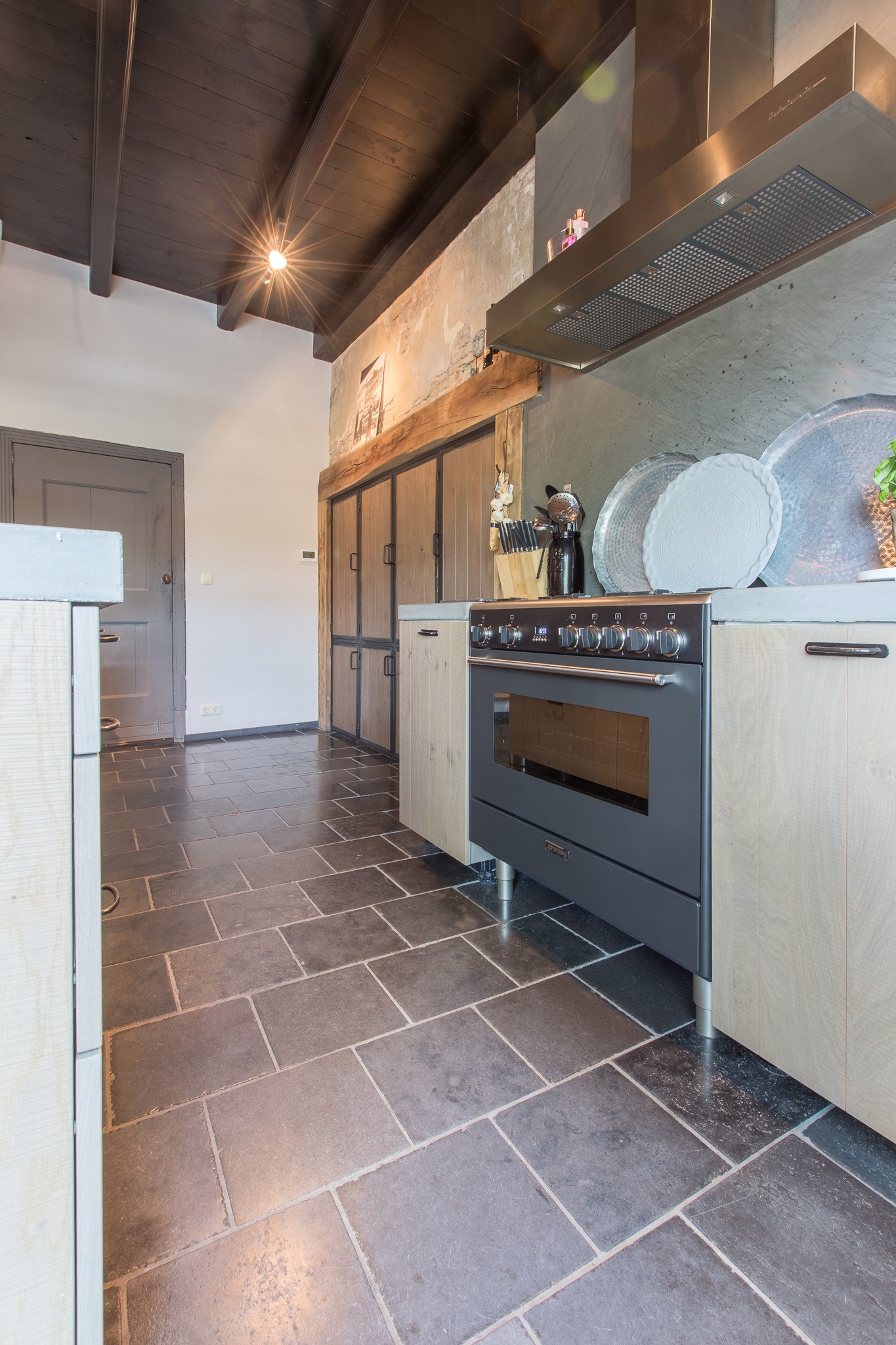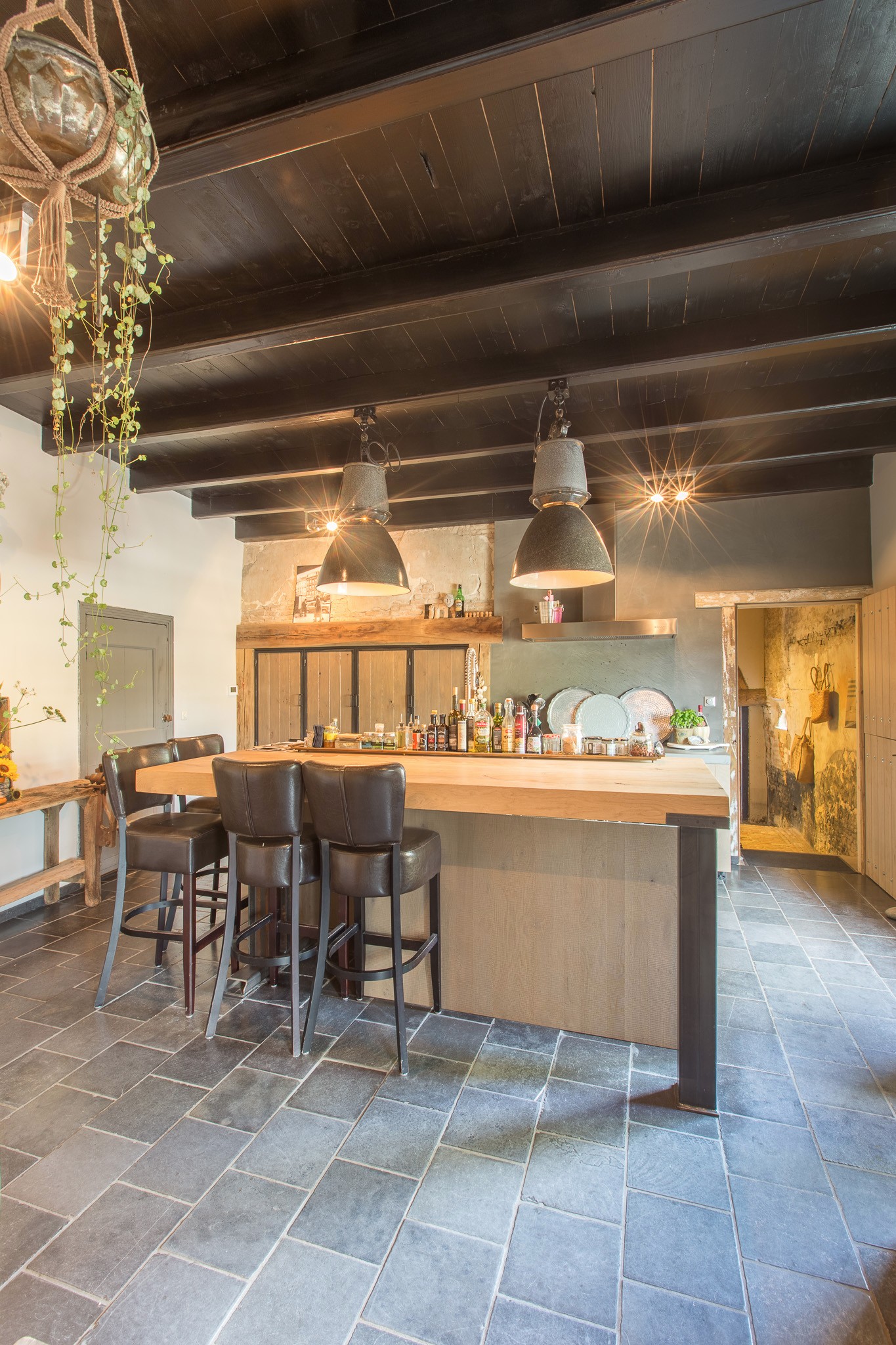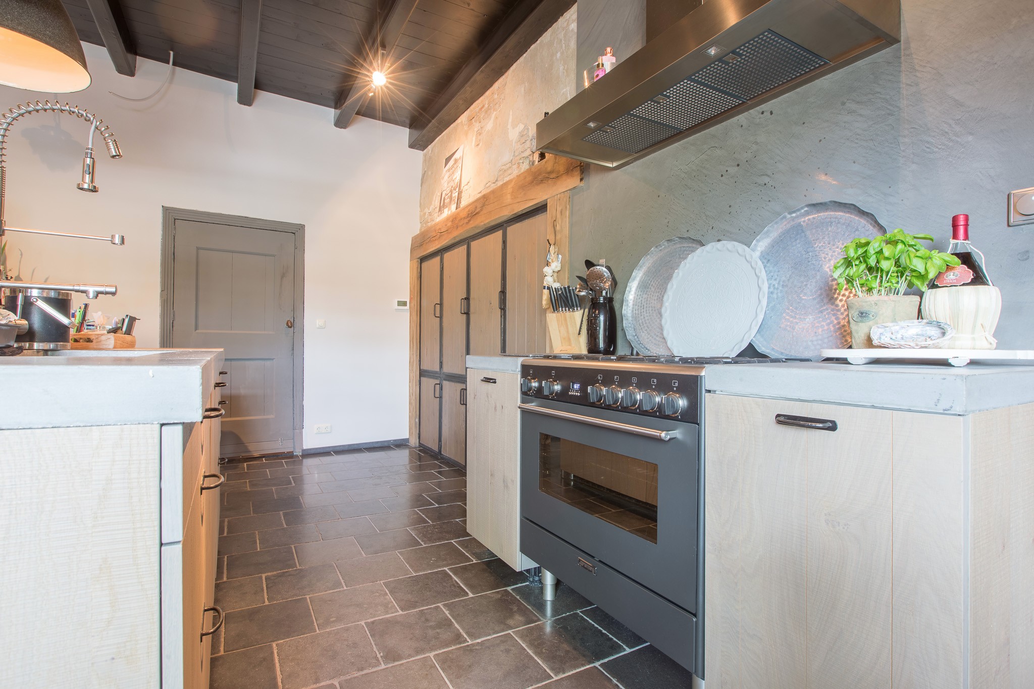 De familie Schoenmakers was op zoek naar een geschikte vloer voor in hun leefkeuken. Na kennismaking in onze showroom is er gekozen voor deze prachtige Belgisch Hardsteen Manueel Verouderd, Lichte Schuring tegels. Het resultaat is dan ook een bourgondische keuken waar in gekookt mag worden!