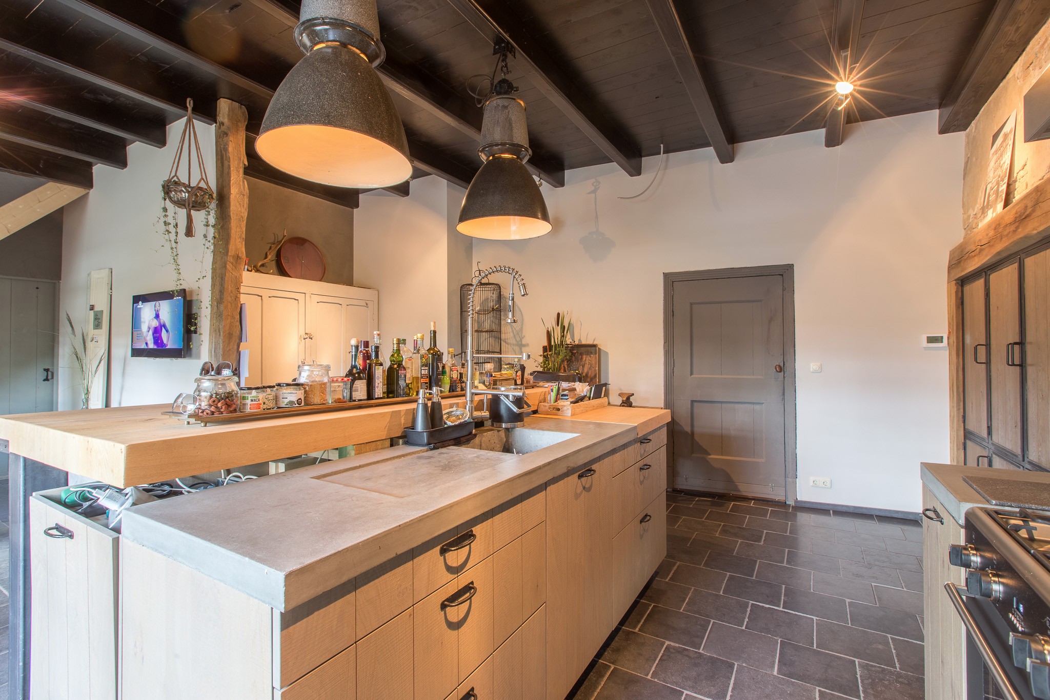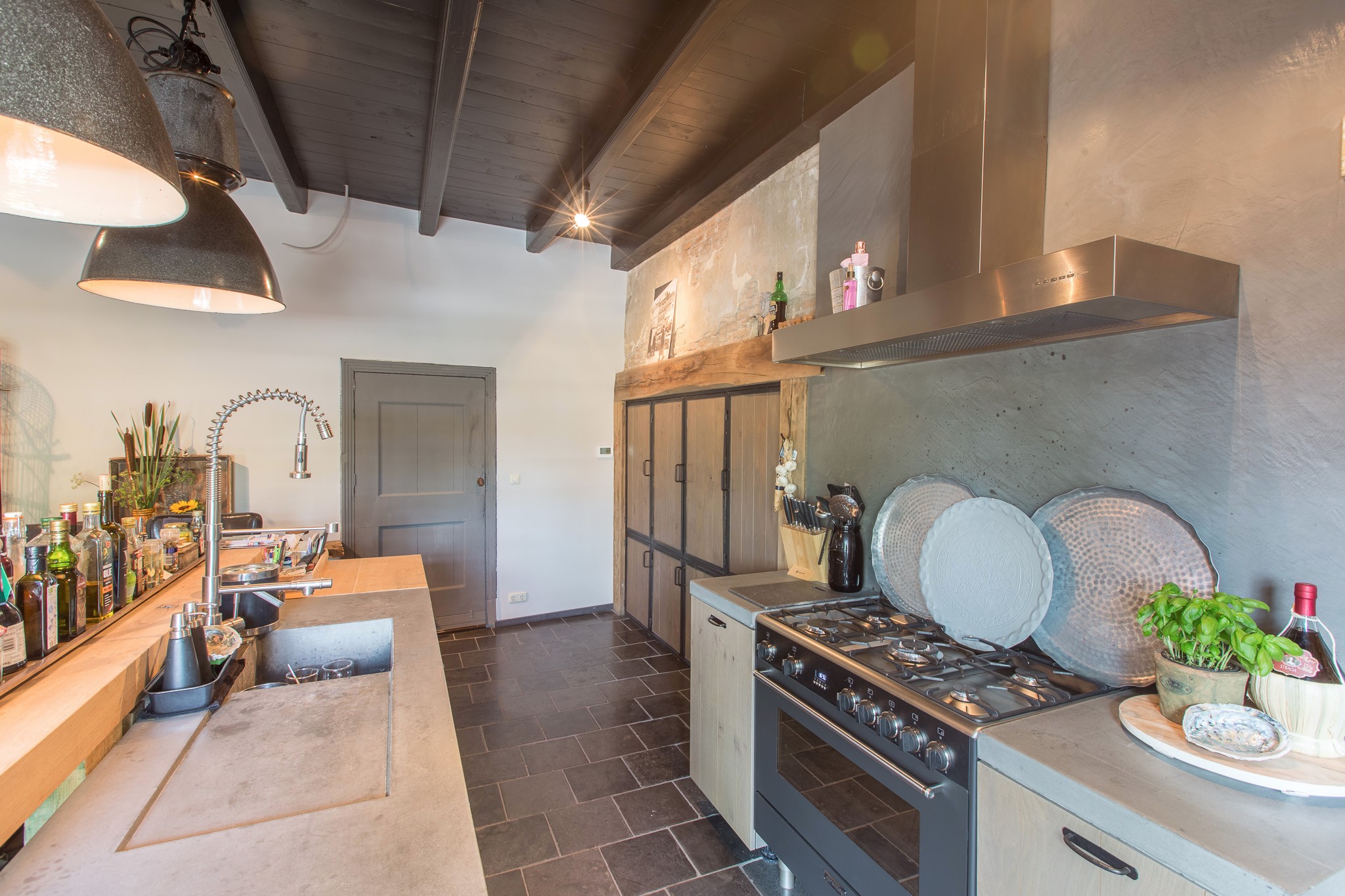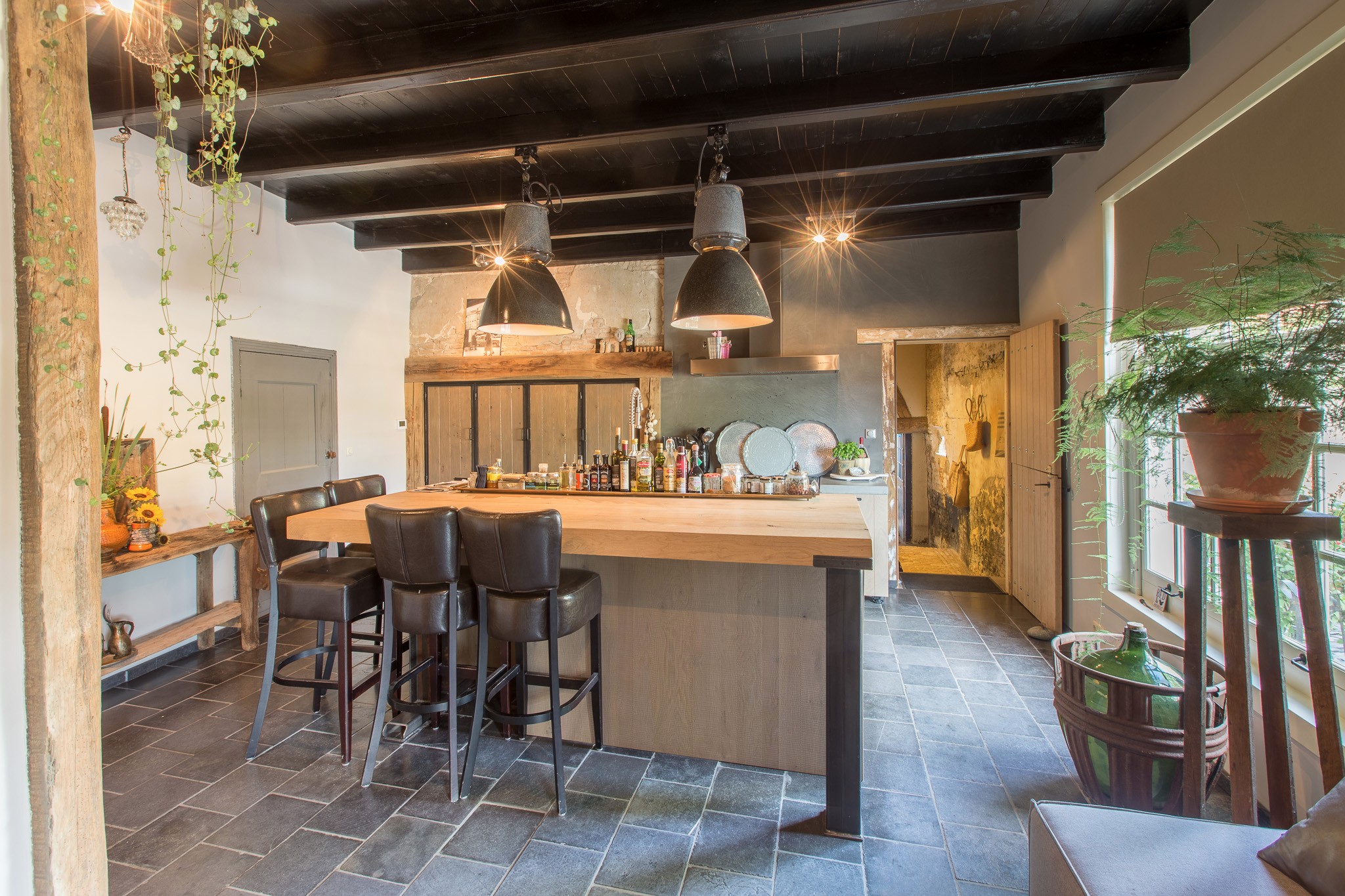 De familie Schoenmakers was op zoek naar een geschikte vloer voor in hun leefkeuken. Na kennismaking in onze showroom is er gekozen voor deze prachtige Belgisch Hardsteen Manueel Verouderd, Lichte Schuring tegels. Het resultaat is dan ook een bourgondische keuken waar in gekookt mag worden!