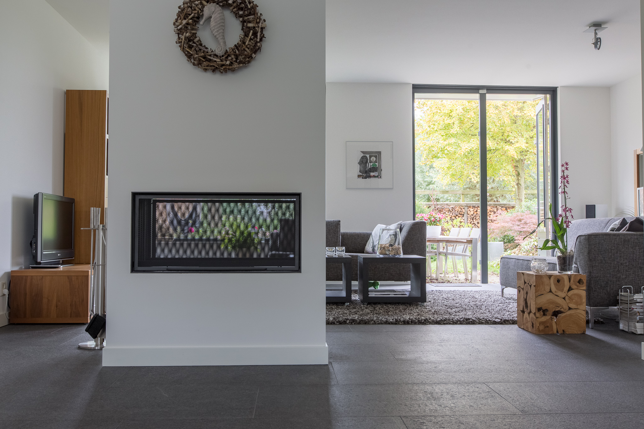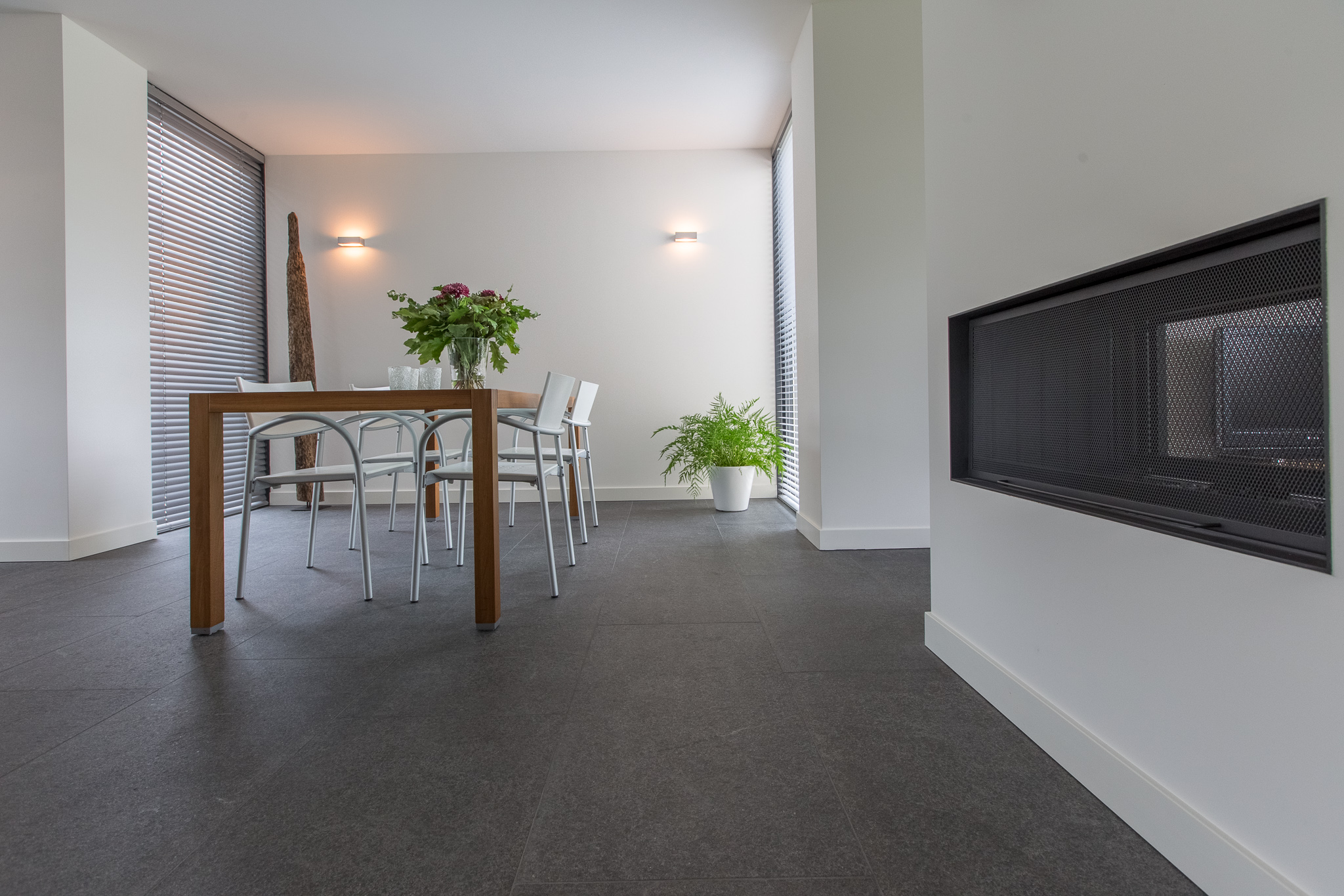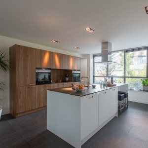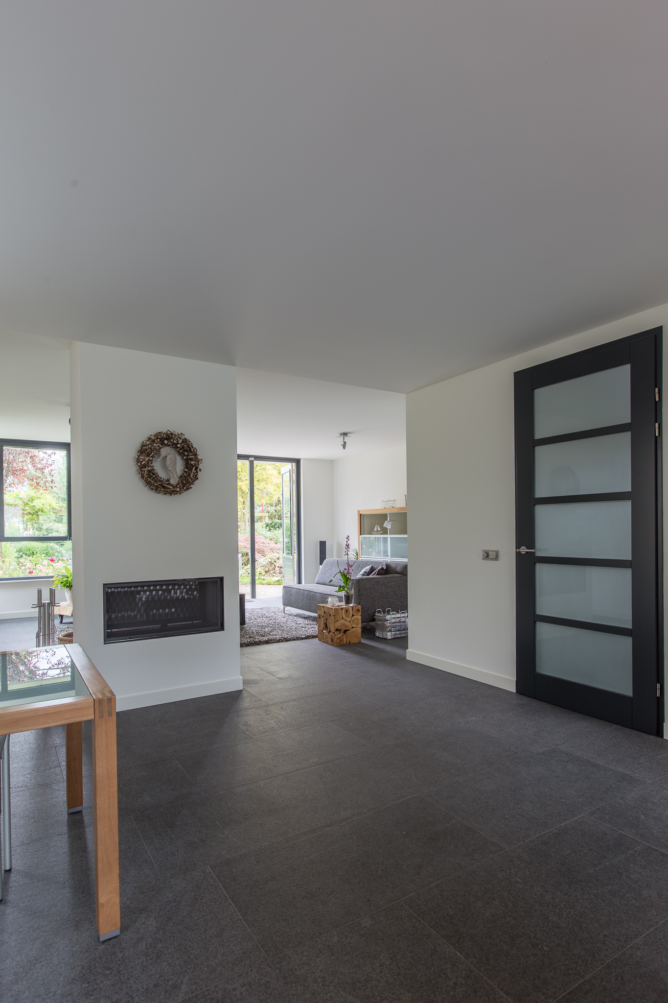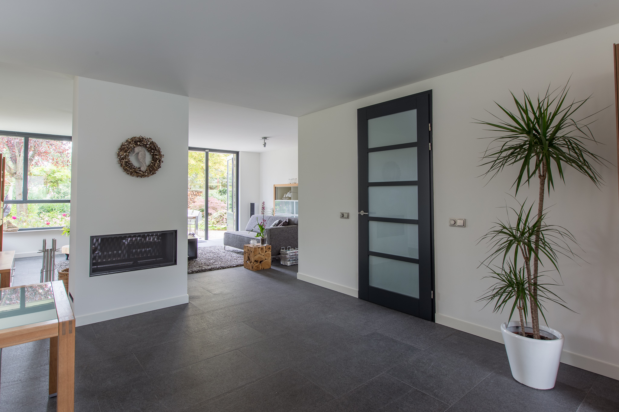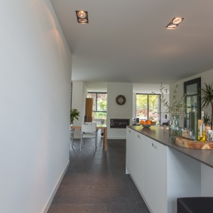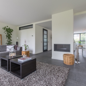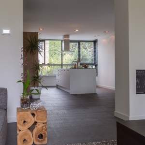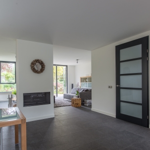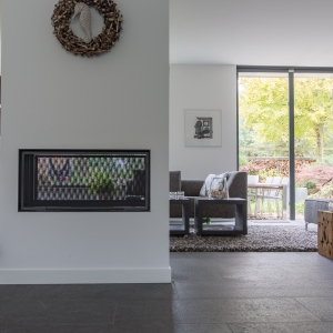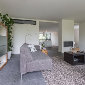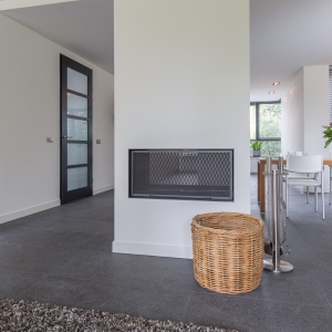 De familie Schop vertelde ons tijdens een bezoek aan onze showroom in Breda, dat ze op zoek waren naar een grote tegel met een strakke en moderne uitstraling. Bij ons kwam direct de Olivian Black Gevlamd in tegels van 100×50 cm naar voren. Deze grote tegels zijn bij de familie in een prachtig banen verband verwerkt.