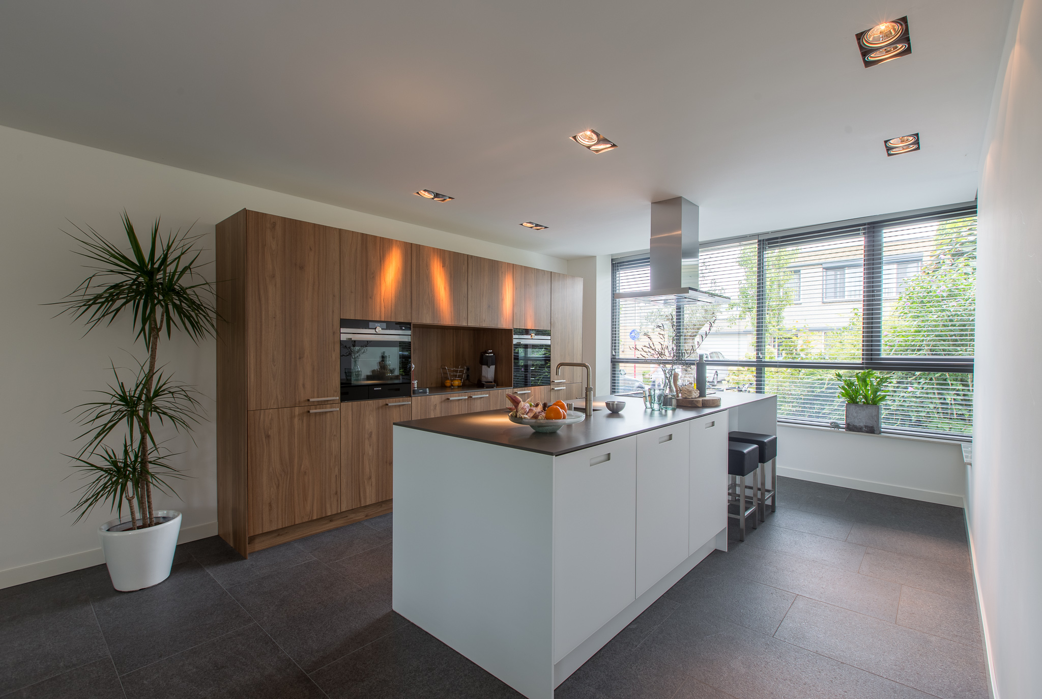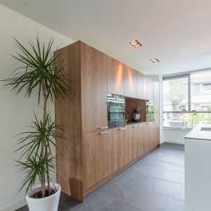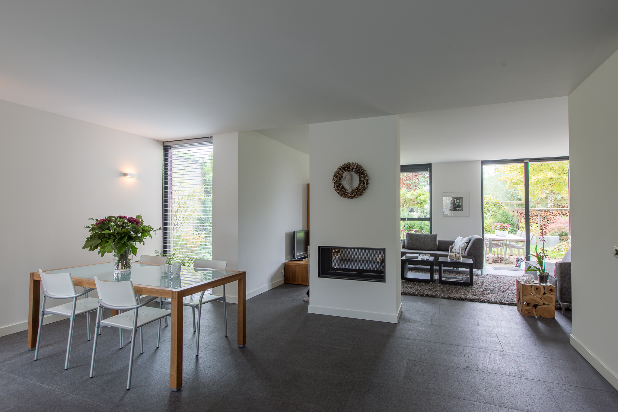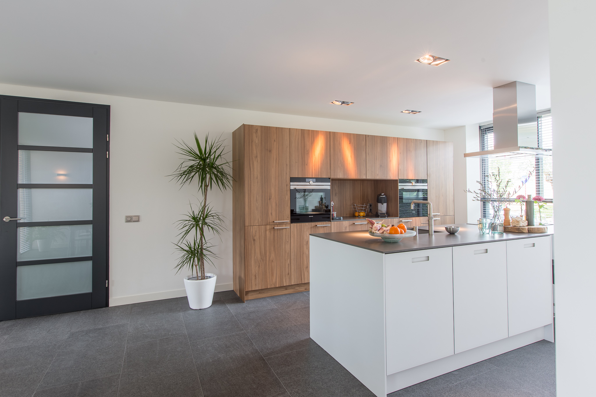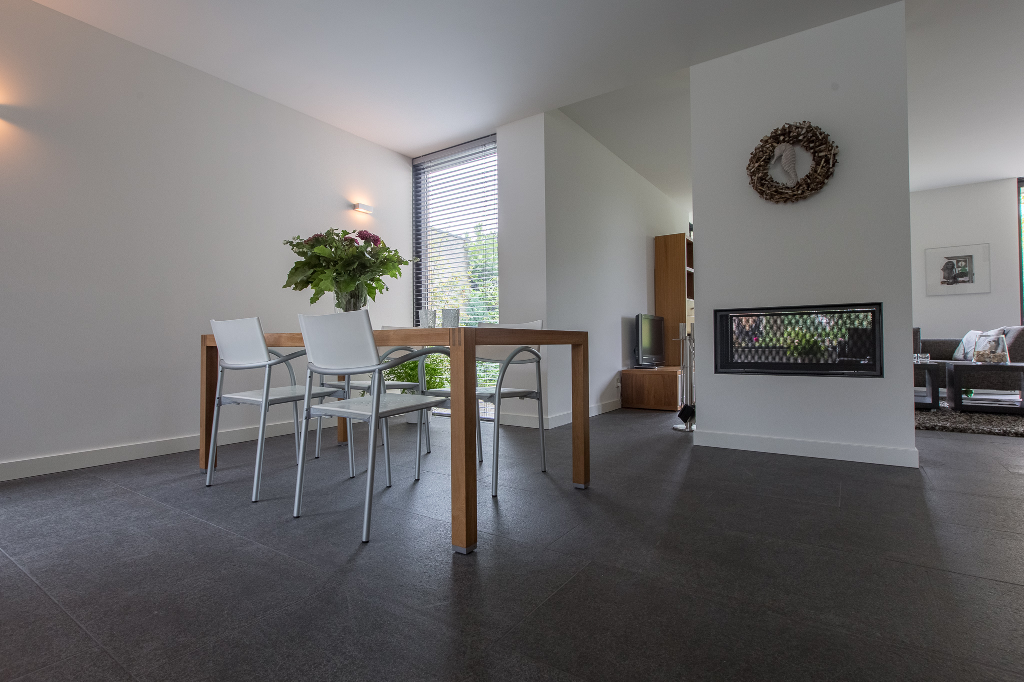 De familie Schop vertelde ons tijdens een bezoek aan onze showroom in Breda, dat ze op zoek waren naar een grote tegel met een strakke en moderne uitstraling. Bij ons kwam direct de Olivian Black Gevlamd in tegels van 100×50 cm naar voren. Deze grote tegels zijn bij de familie in een prachtig banen verband verwerkt.
