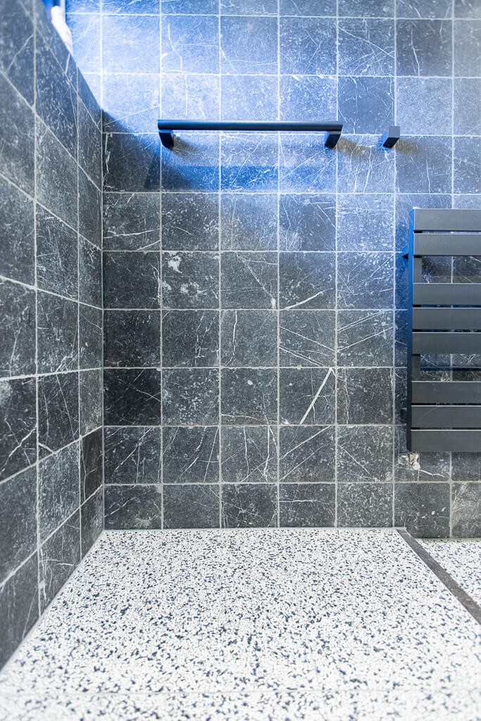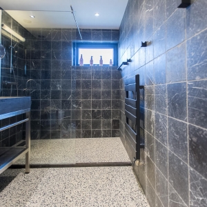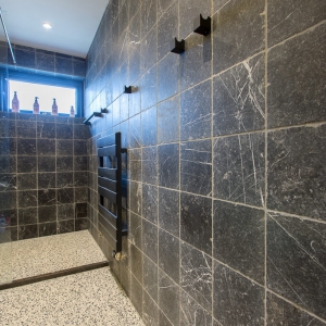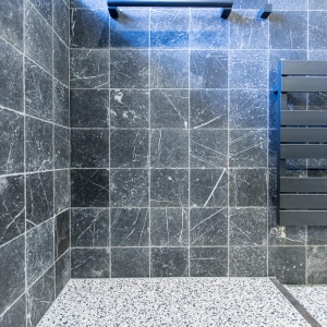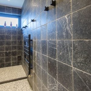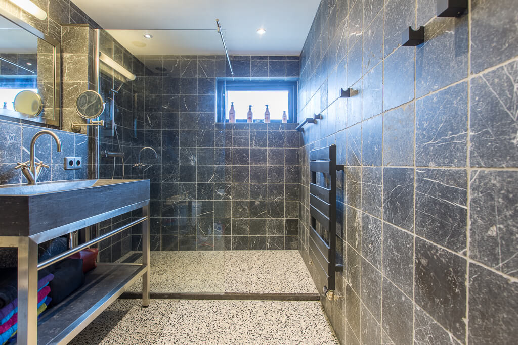 De familie Troost was op zoek naar schitterende tegels voor de badkamer. Zowel voor de vloer als tegen de wand. Wij hebben de familie allerlei verschillende vloeren en wandtegels laten zien en uiteindelijk is de keuze gevallen op de Efesus Marmer Zwart “Soft Finish” voor tegen de wand en de Terrazzo Stone Wit “Gezoet” voor op de vloer.