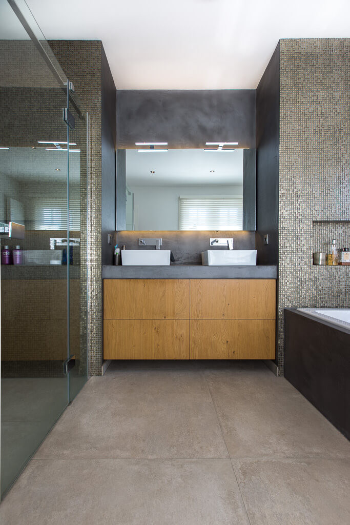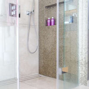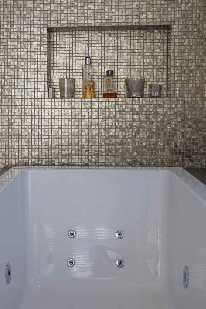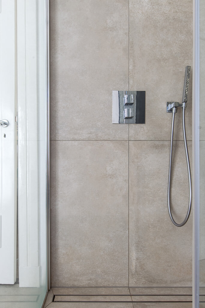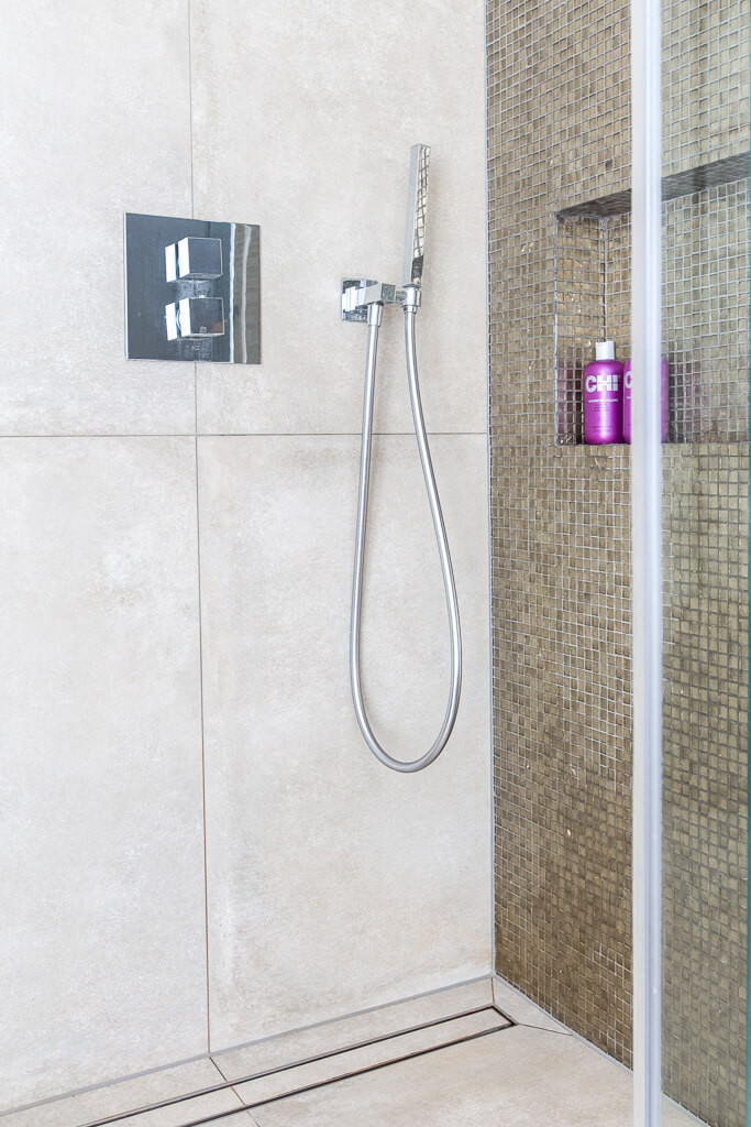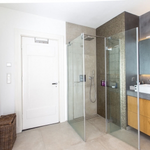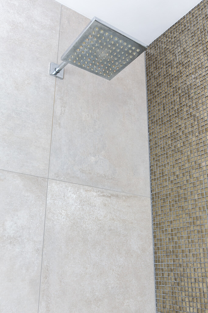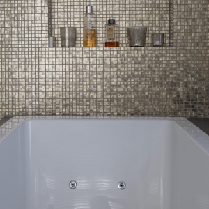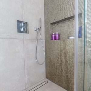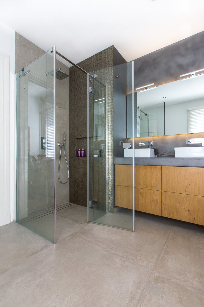 Na het bekijken van diverse soorten tegels in onze showroom is er gekozen voor de Cimento Piano “Grigio” en de Glass Mosaics San Marco Champagne. Wij hebben deze tegels dan ook mogen leveren. Bekijk hieronder het resultaat.