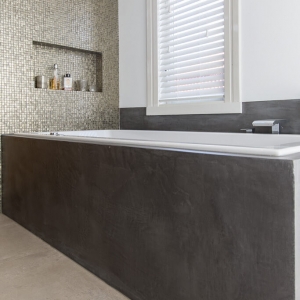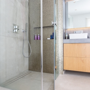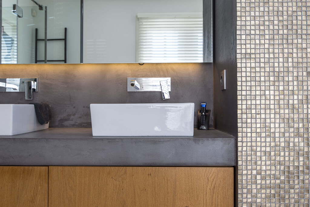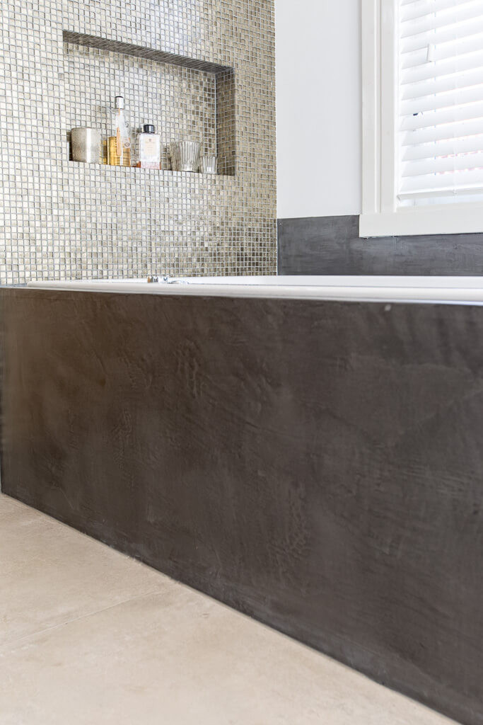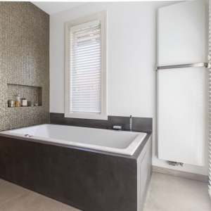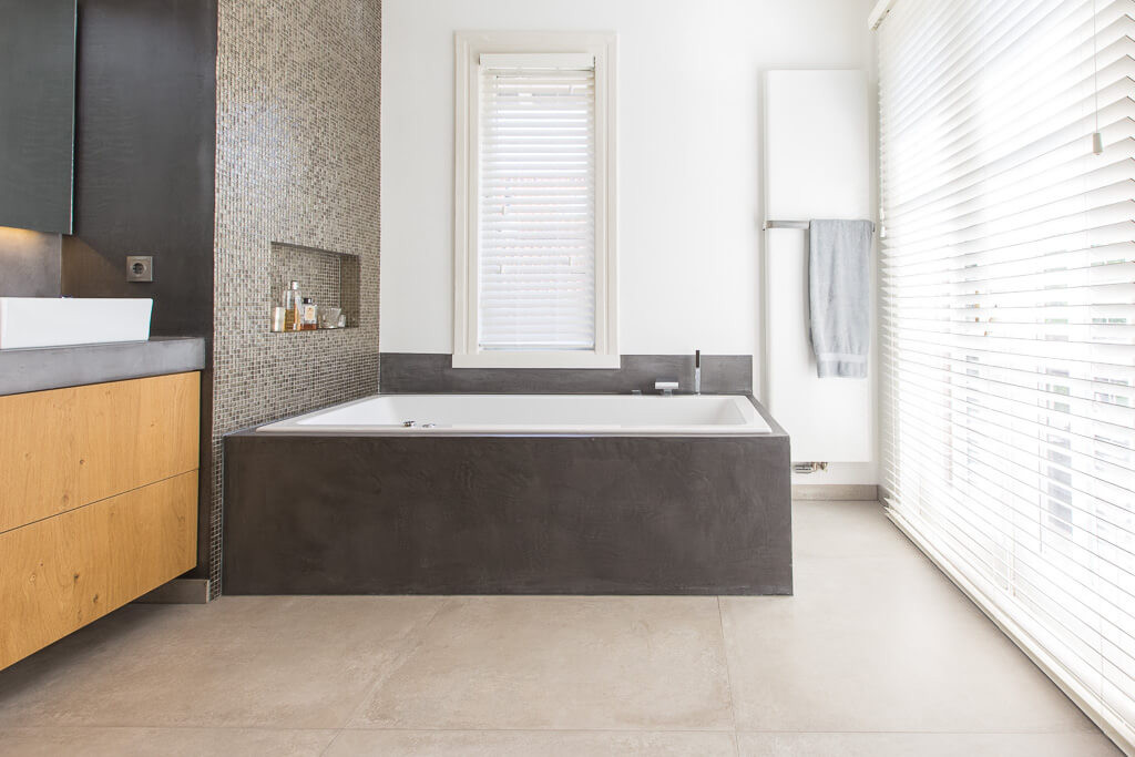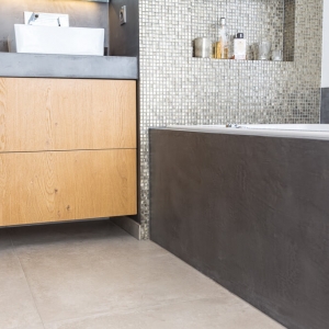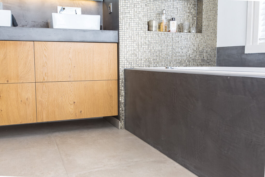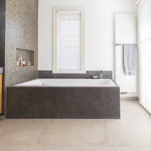 Moderne betonlook keramiek & glasmozaïek tegels in De Bilt