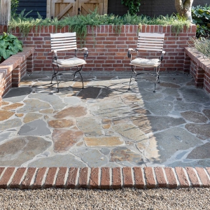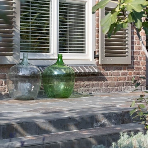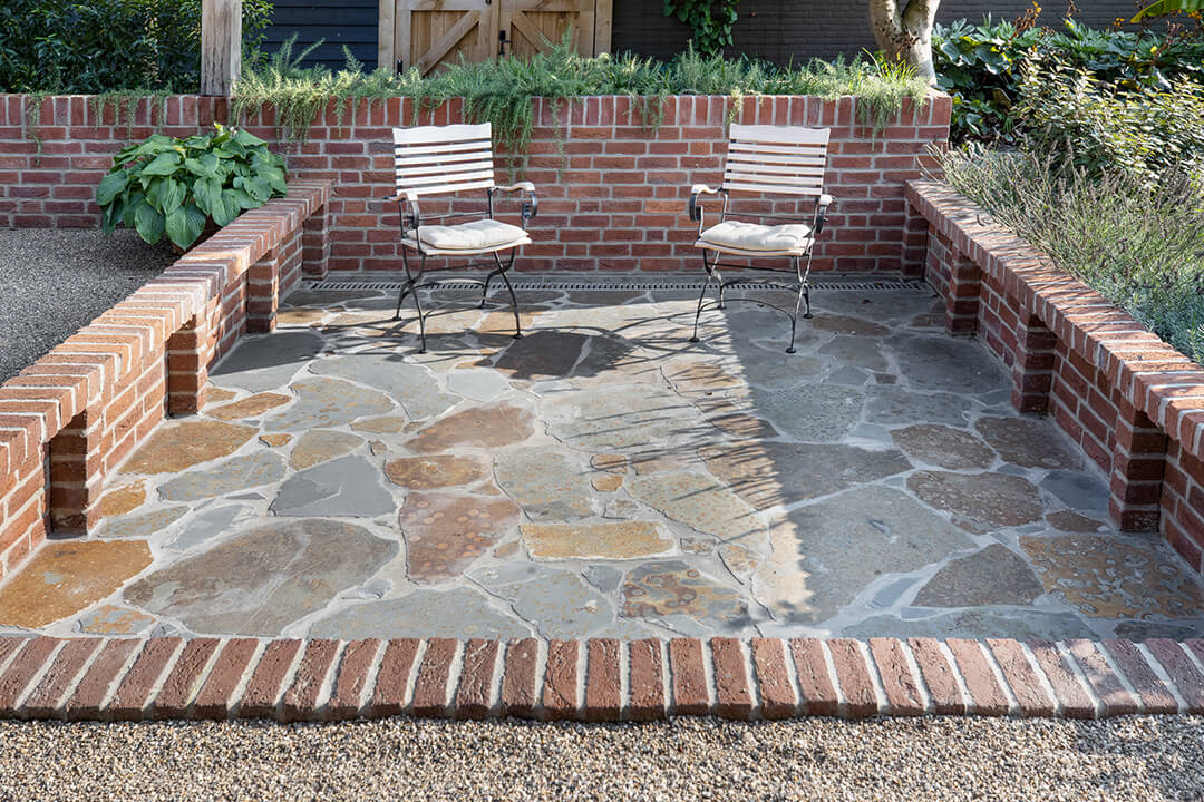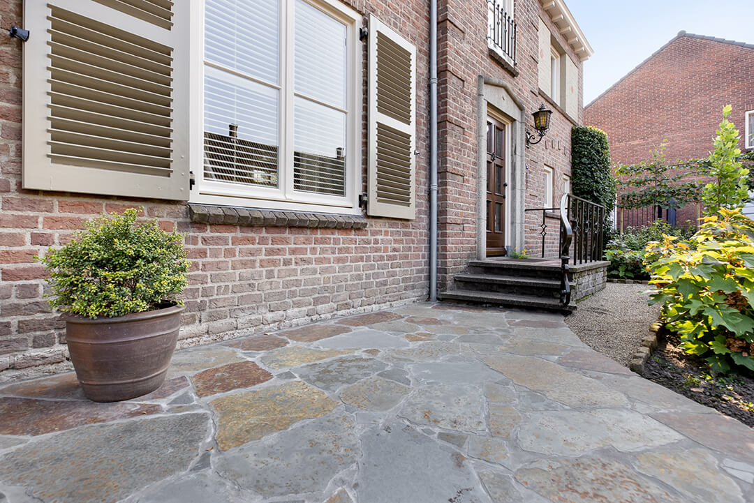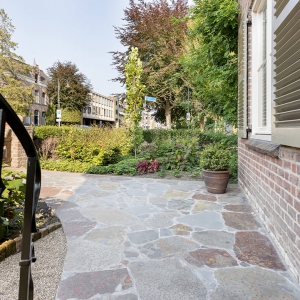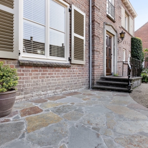 Na in het verleden al wat leistenen materiaal geleverd te hebben, kwamen deze klanten afgelopen zomer onze showroom in Breda bezoeken. Zij hadden de wens om hun terras en looppaden te voorzien van een uniek materiaal. Na een wandeling door onze showtuin kwamen zij uit op de Multicolour leisteen.