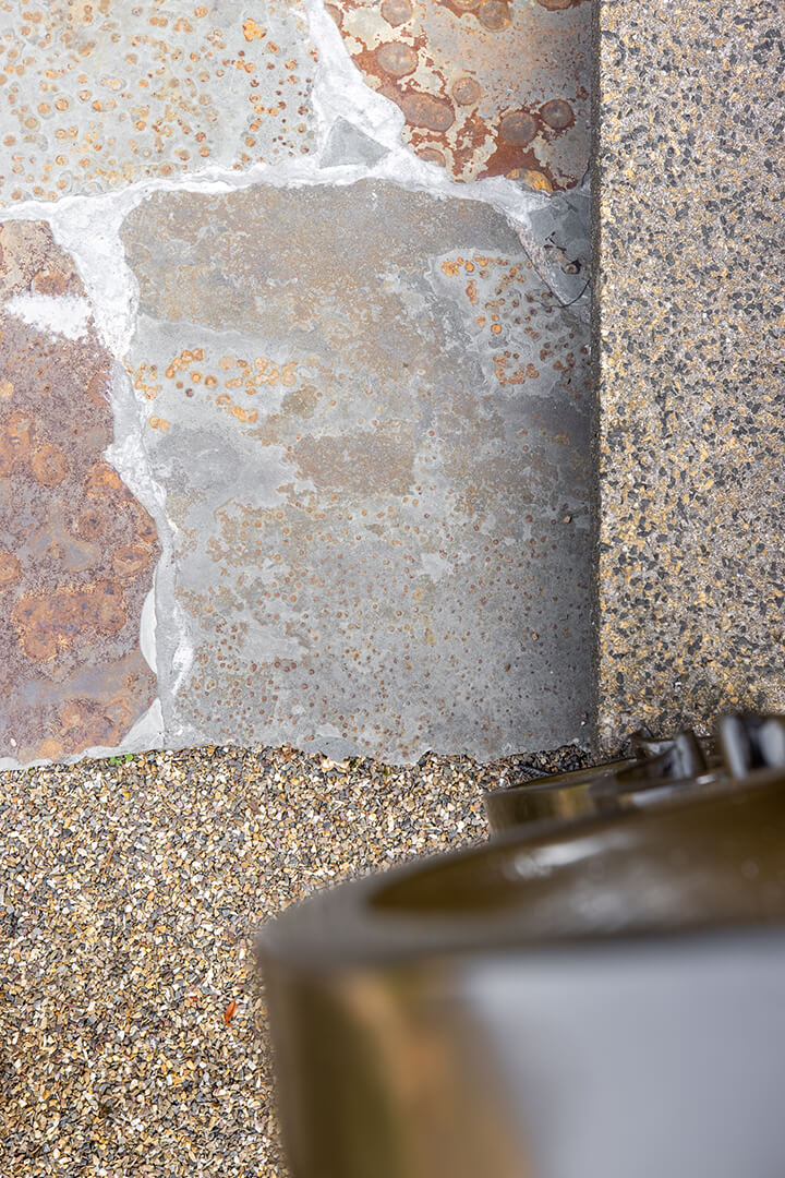 Deze prachtige leisteen hebben wij aangeleverd in grote platen en is vakkundig door het Tegelzettersgilde verwerkt tot flagstones.