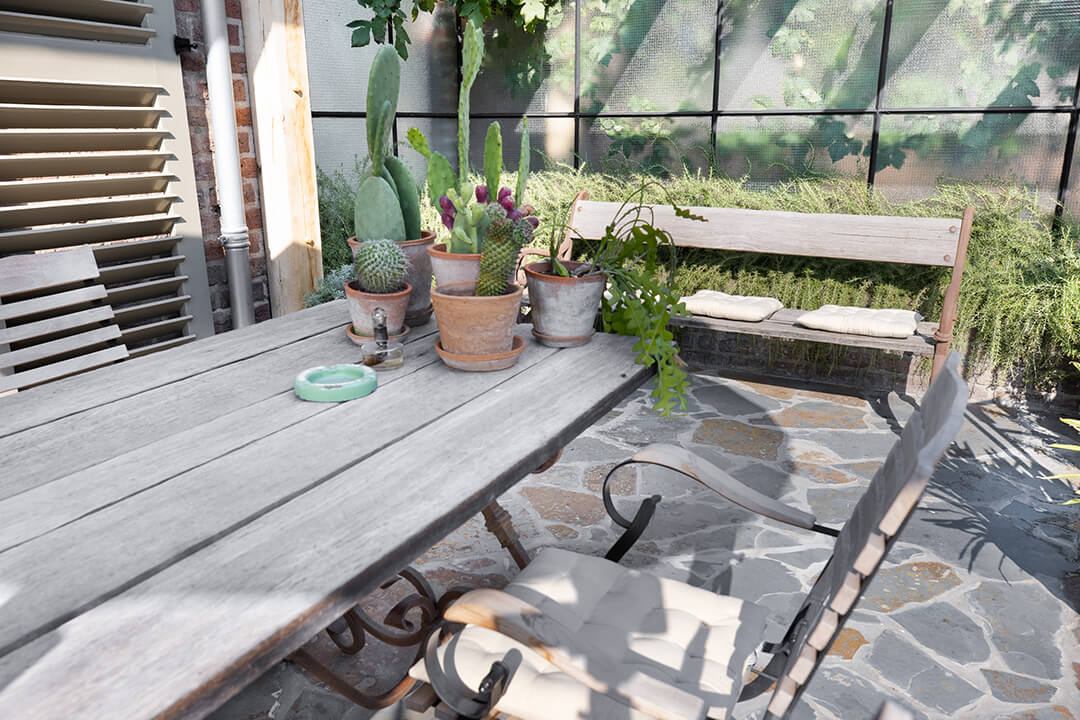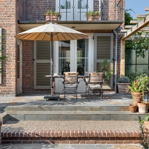 De roest-tinten in combinatie met het metselwerk van deze woning zorgen voor een prachtige bourgondische uitstraling.