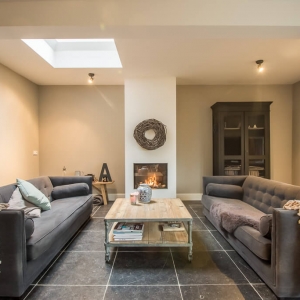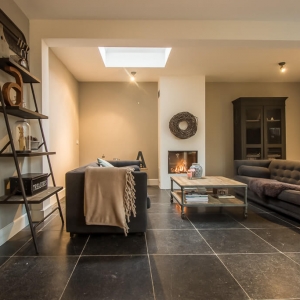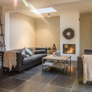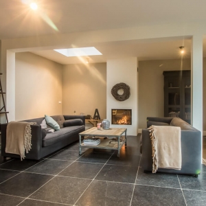 De familie van Ardenne was helemaal fan van Belgisch Hardsteen. Ze kwamen bij ons in de showroom om verschillende soorten Belgisch Hardsteen te bekijken voor op de benedenverdieping. Na het zien van meerdere soorten Belgisch hardsteen viel de keuze op de Belgisch Hardsteen Soft Finish “Light Tone”, vanwege de schitterende lichte kleurtinten in de tegel.