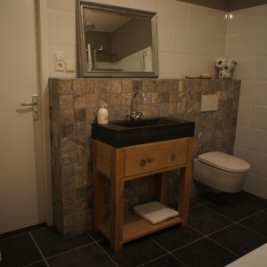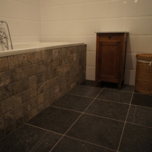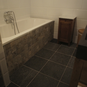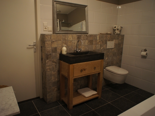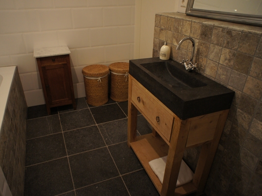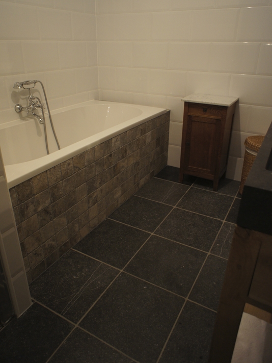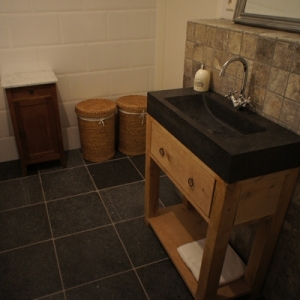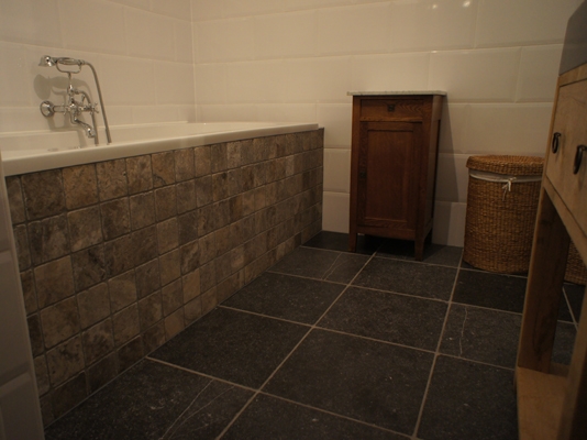 Als het om sfeer gaat hebben wij een ruim assortiment. De familie van Baalen vond bij ons een prachtige Belgisch hardsteen Soft Finish Light Tone, die zij in de natte ruimtes combineerde met onze Apulia travertin Grigio.