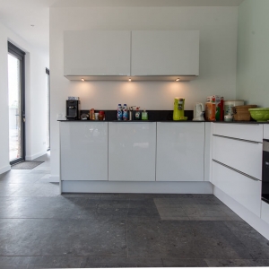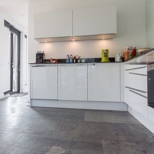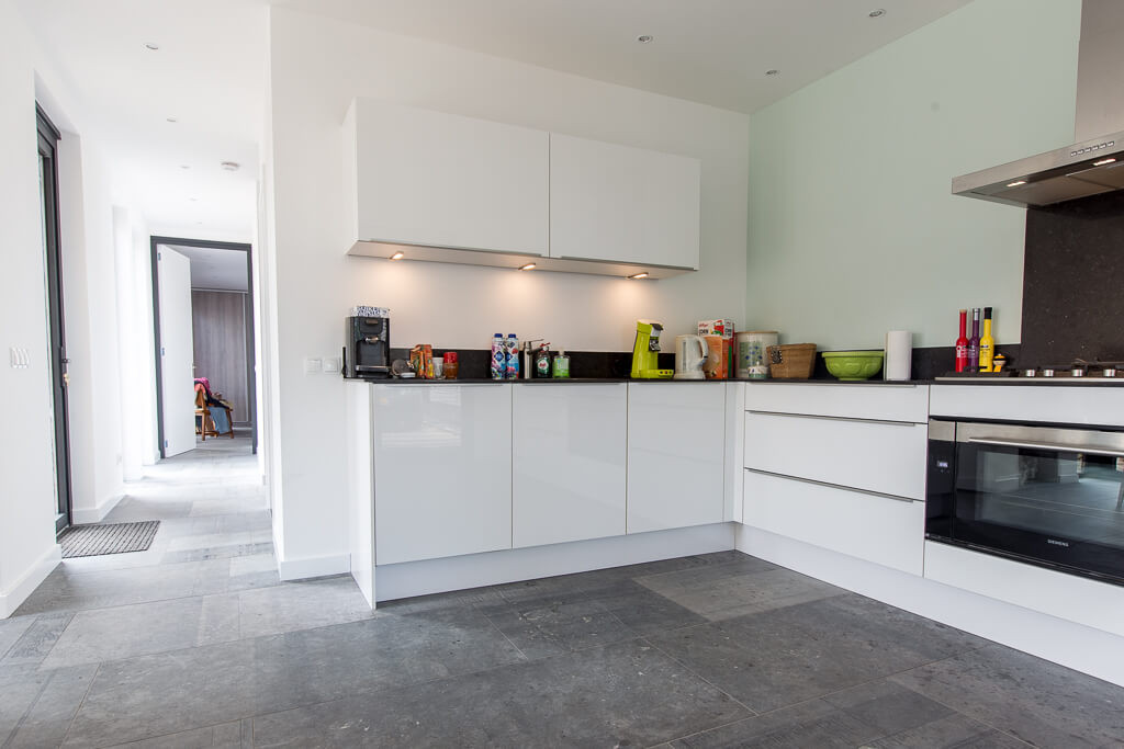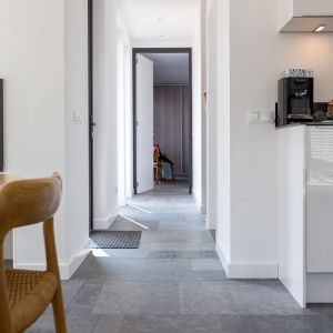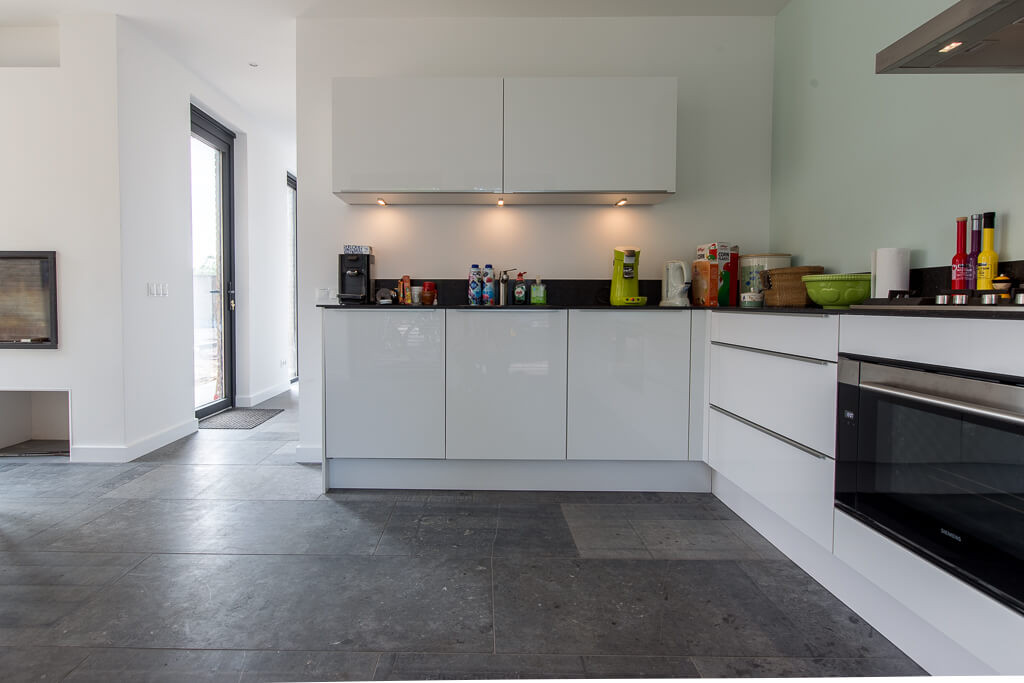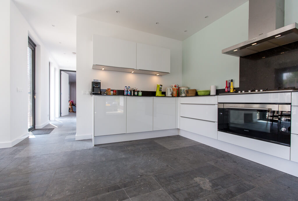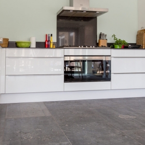 De familie van Baars wilde graag een natuurstenen vloer in de keuken, slaapkamer en hal van hun woning. Tijdens een bezoek aan onze showroom was de familie erg gecharmeerd van Belgisch hardsteen.