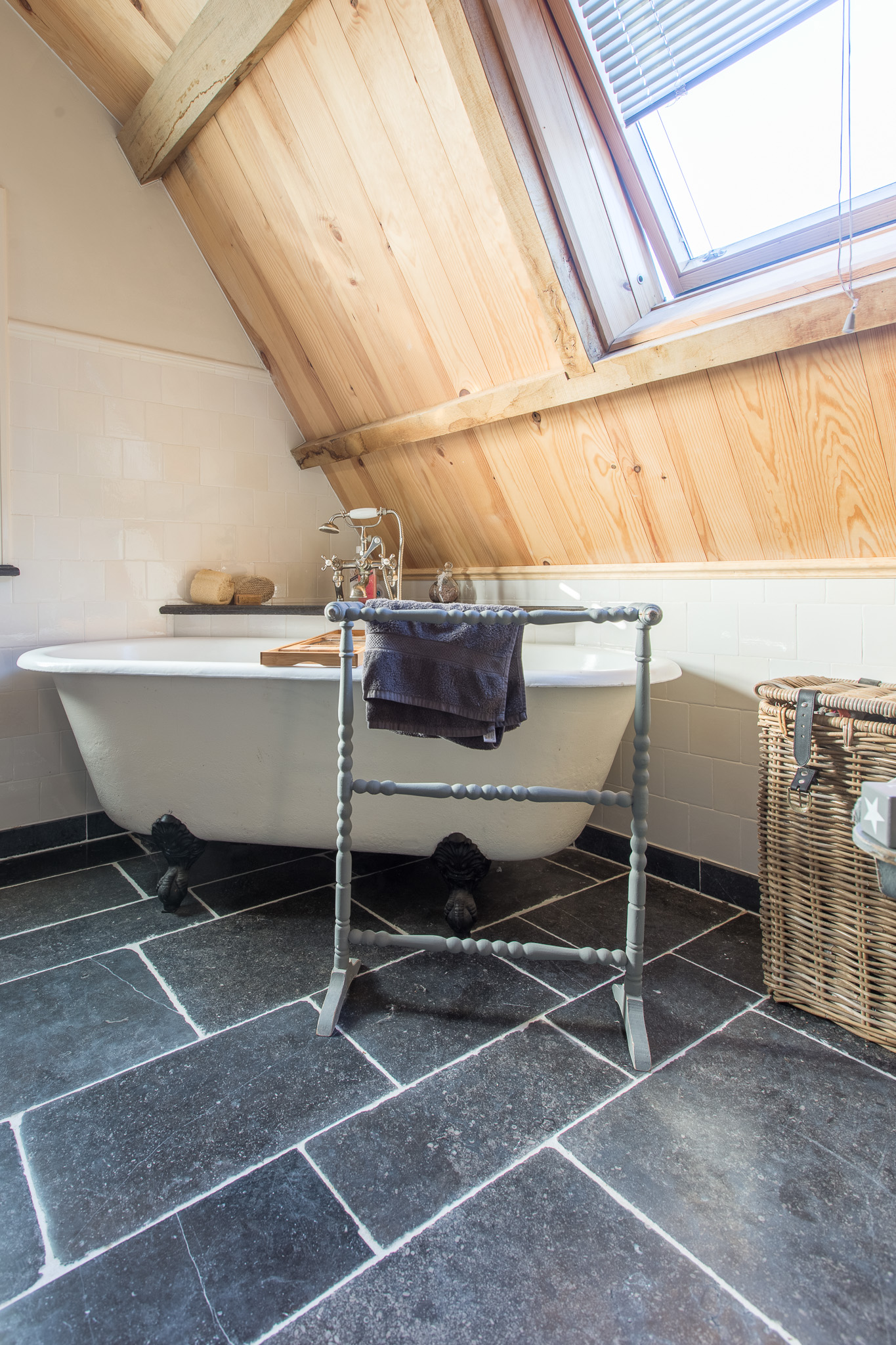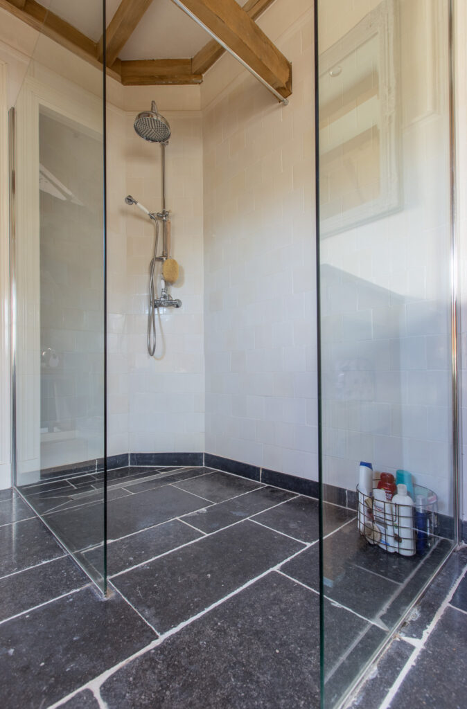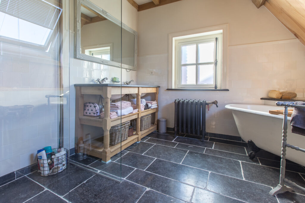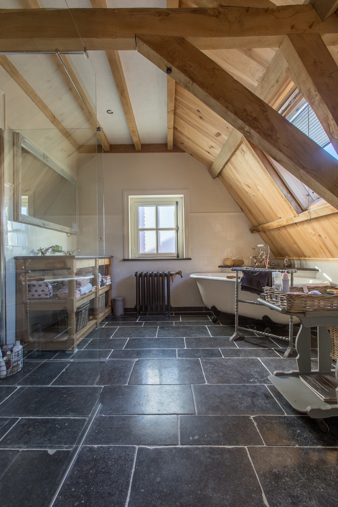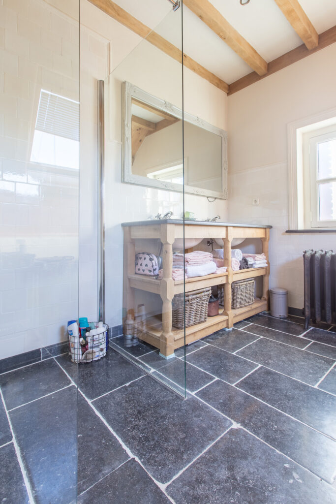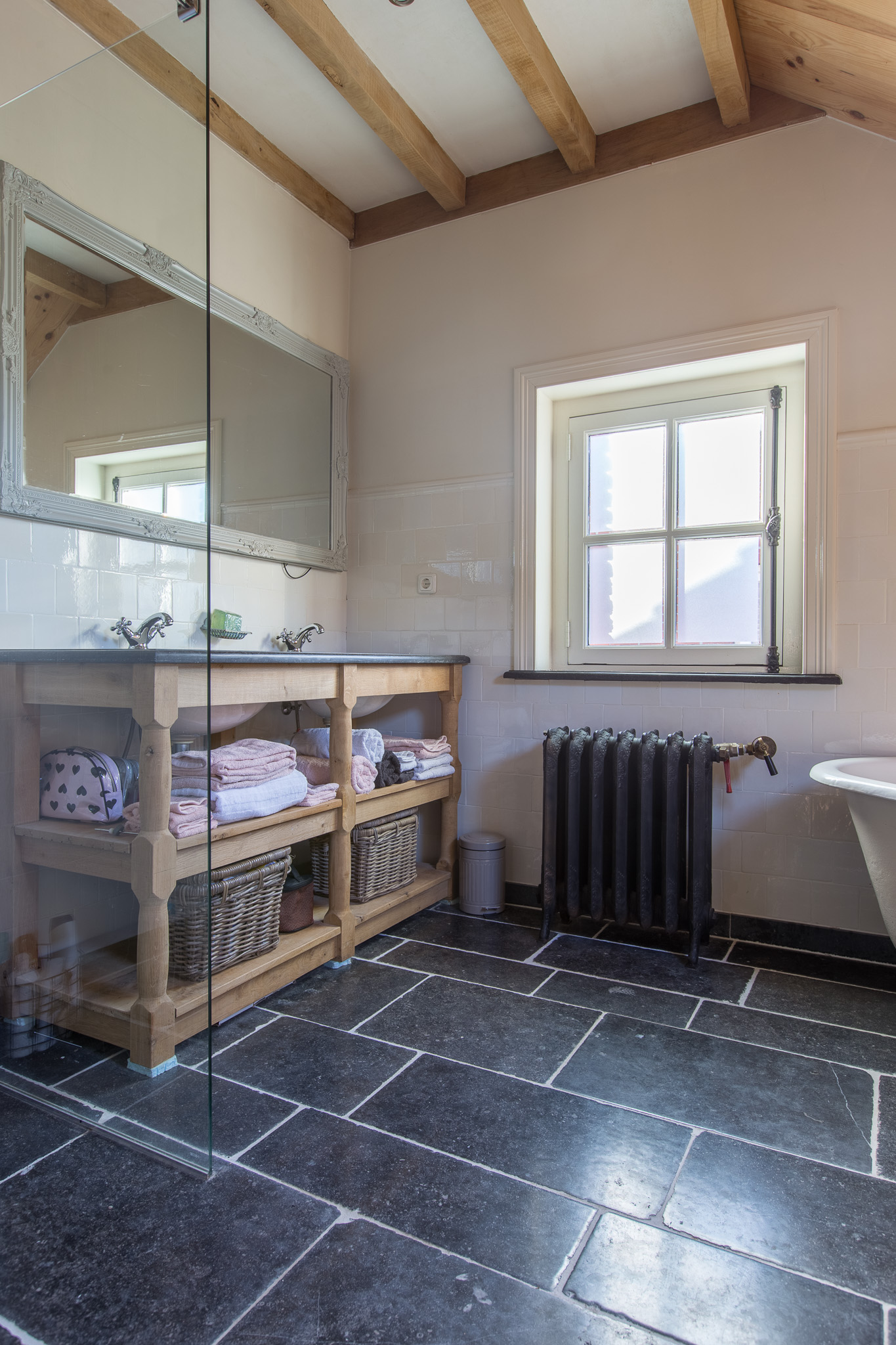 De prachtige authentieke tegels komen prachtig tot hun recht in combinatie met de Belgische Hardsteen die er al lag.