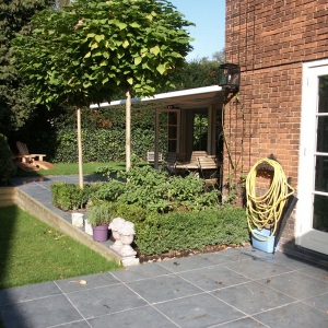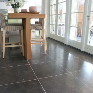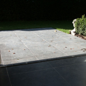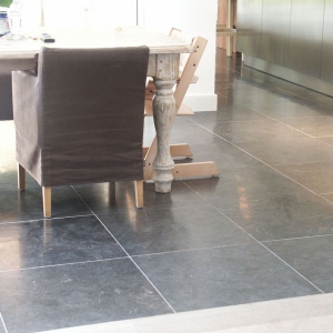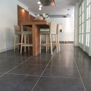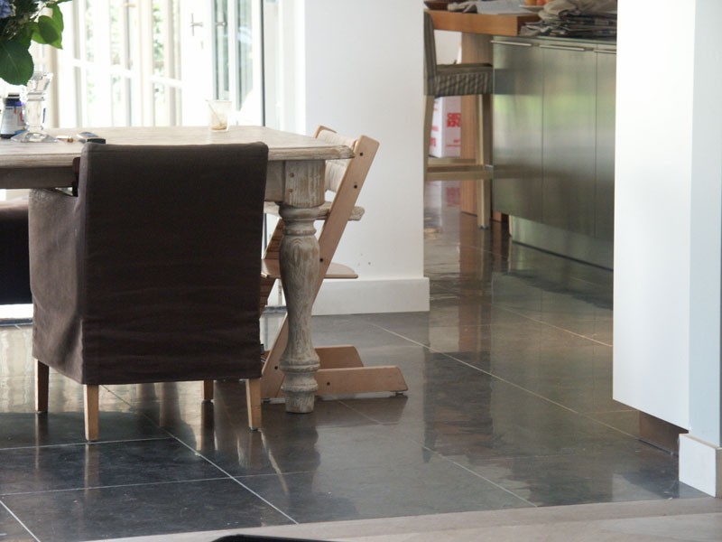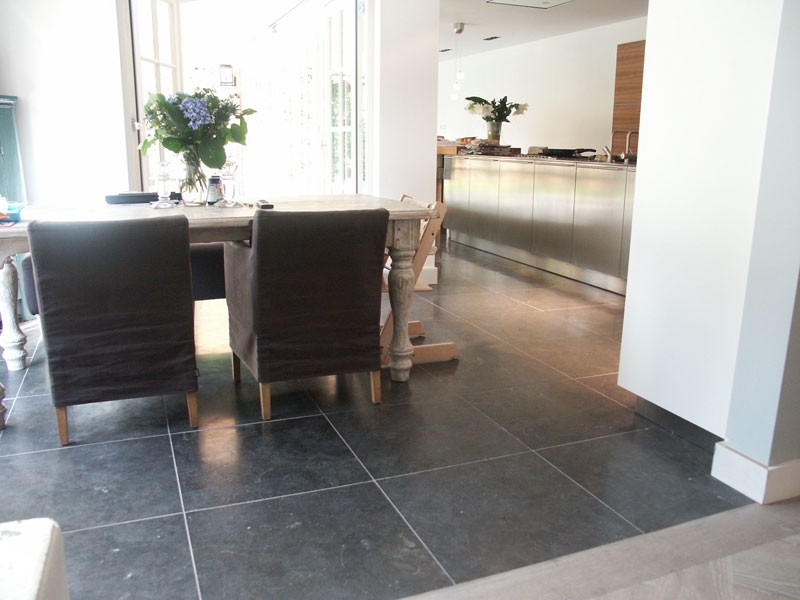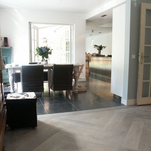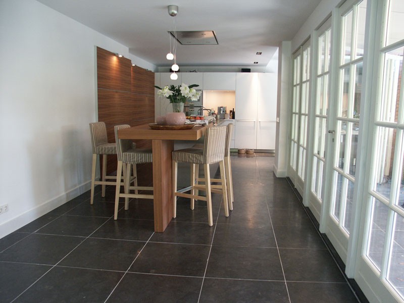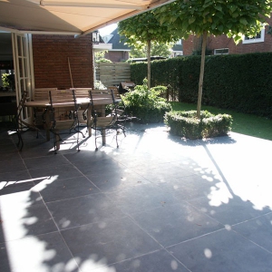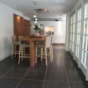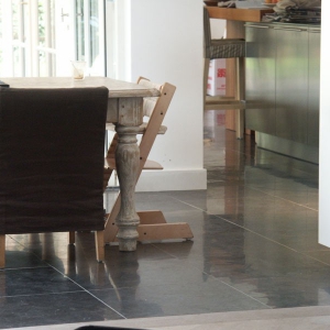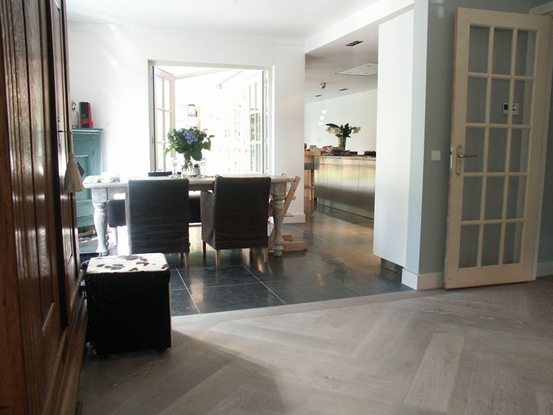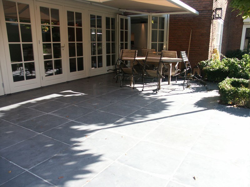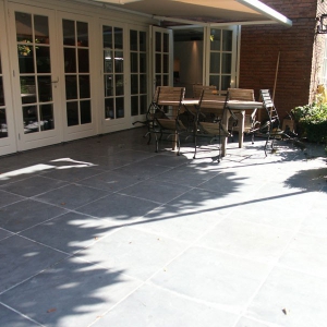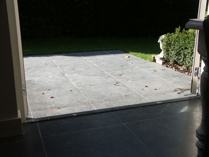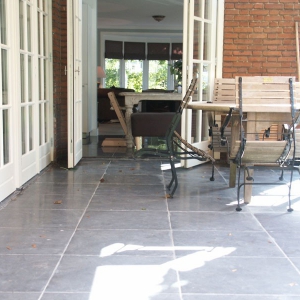 De familie van der Net zocht voor de verbouwing van hun huis een mooie hardsteen vloer voor binnen en buiten. De terrassen waren van beton dus konden zij de binnentegels ook buiten leggen.
