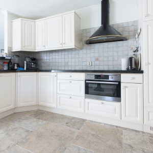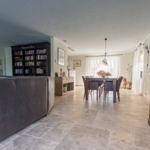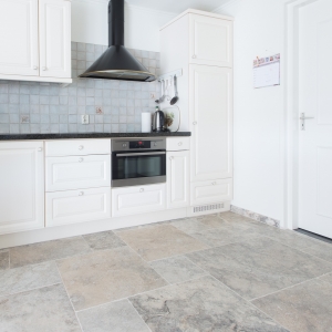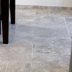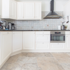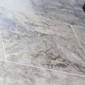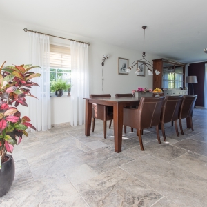 Bij Van den Heuvel & Van Duuren vonden zij de Apulia Grigio (Travertin Silver) “Anticato” in een groot Romaans verband. Deze vloer heeft een mooie natuurlijke uitstraling en is ook zeer gemakkelijk in het onderhoud. Precies wat ze zochten!