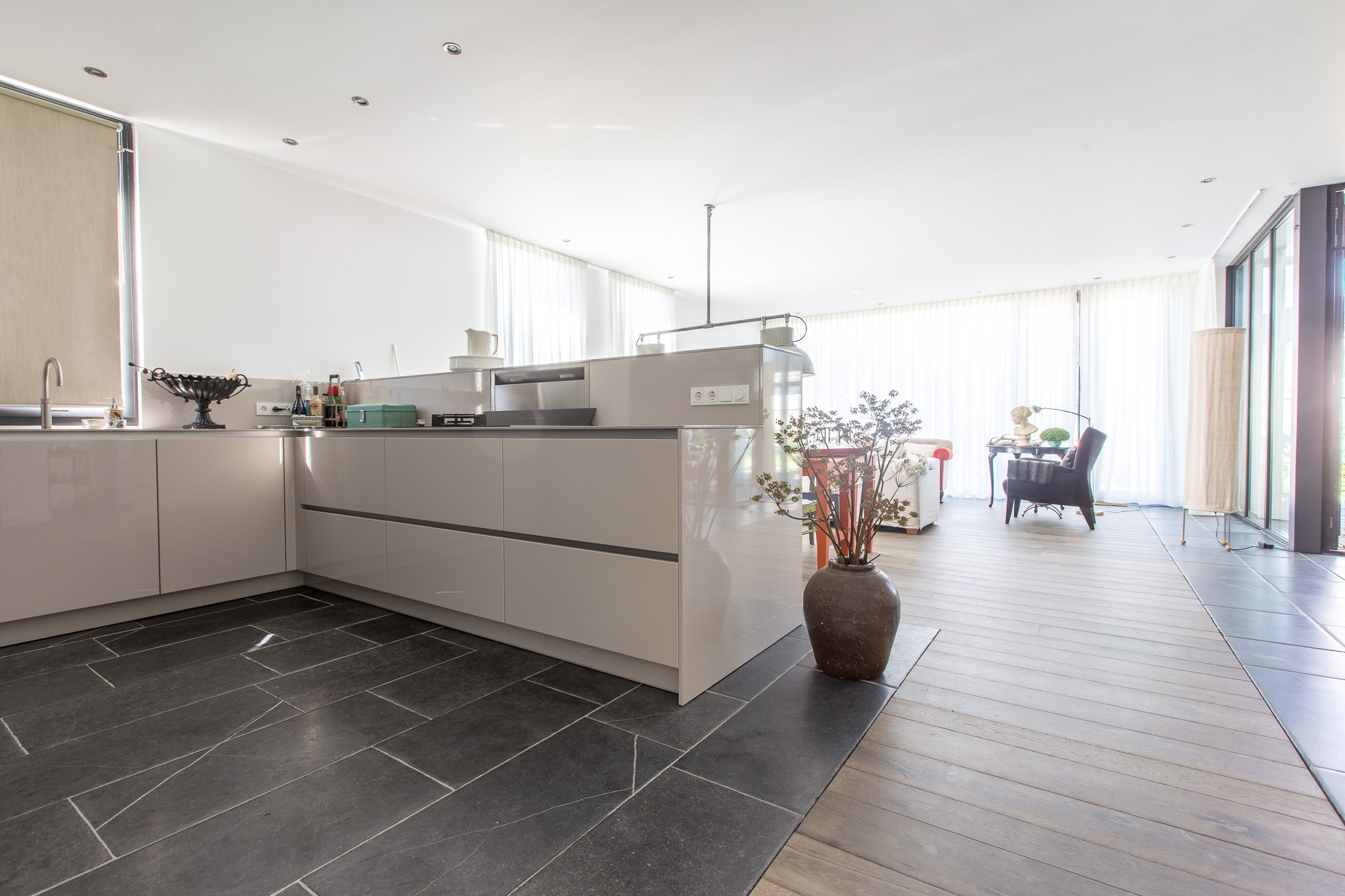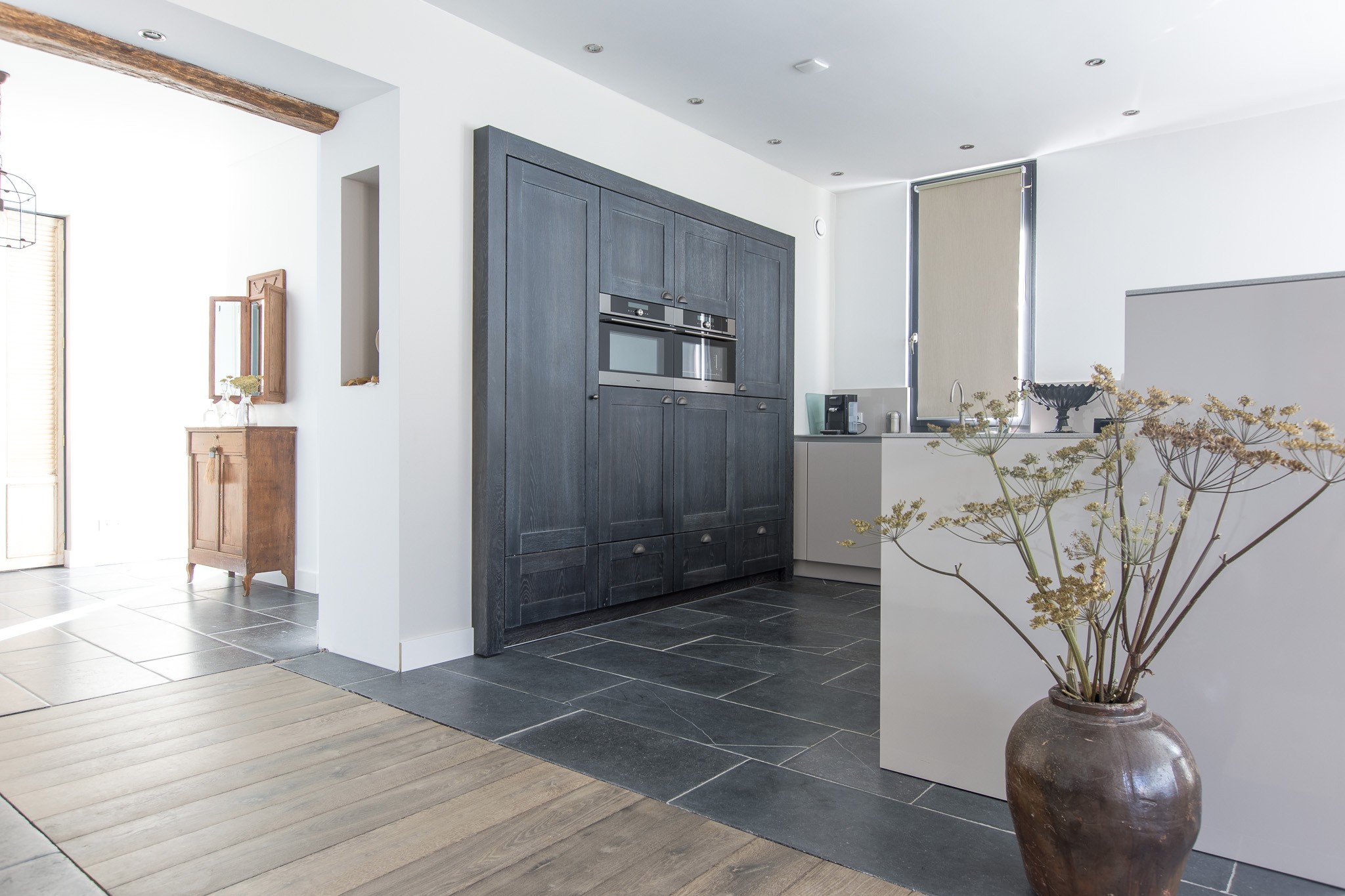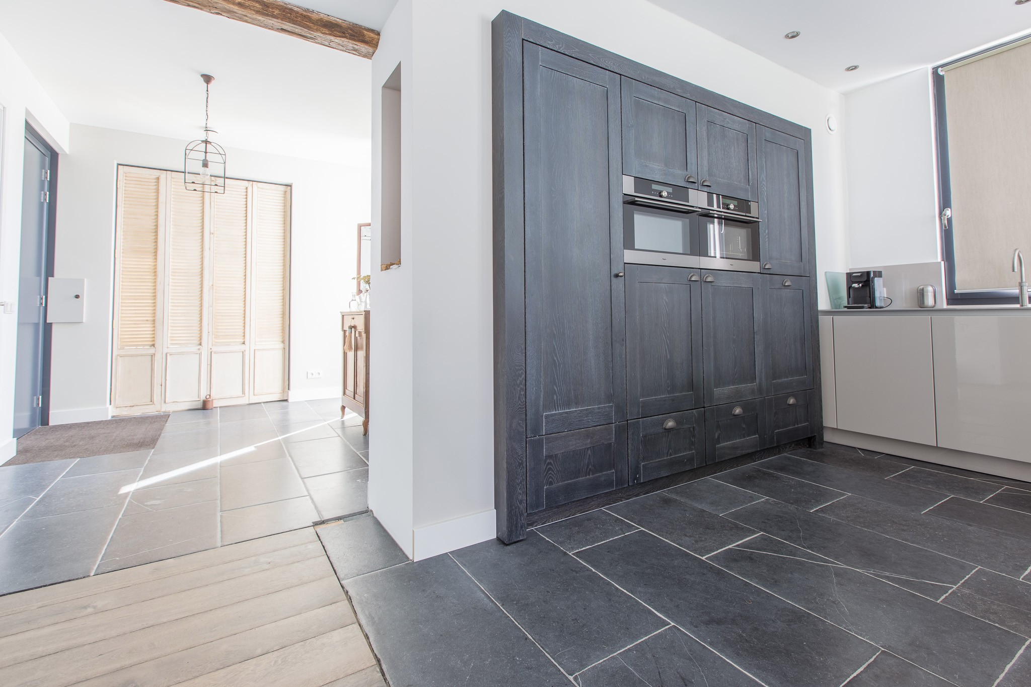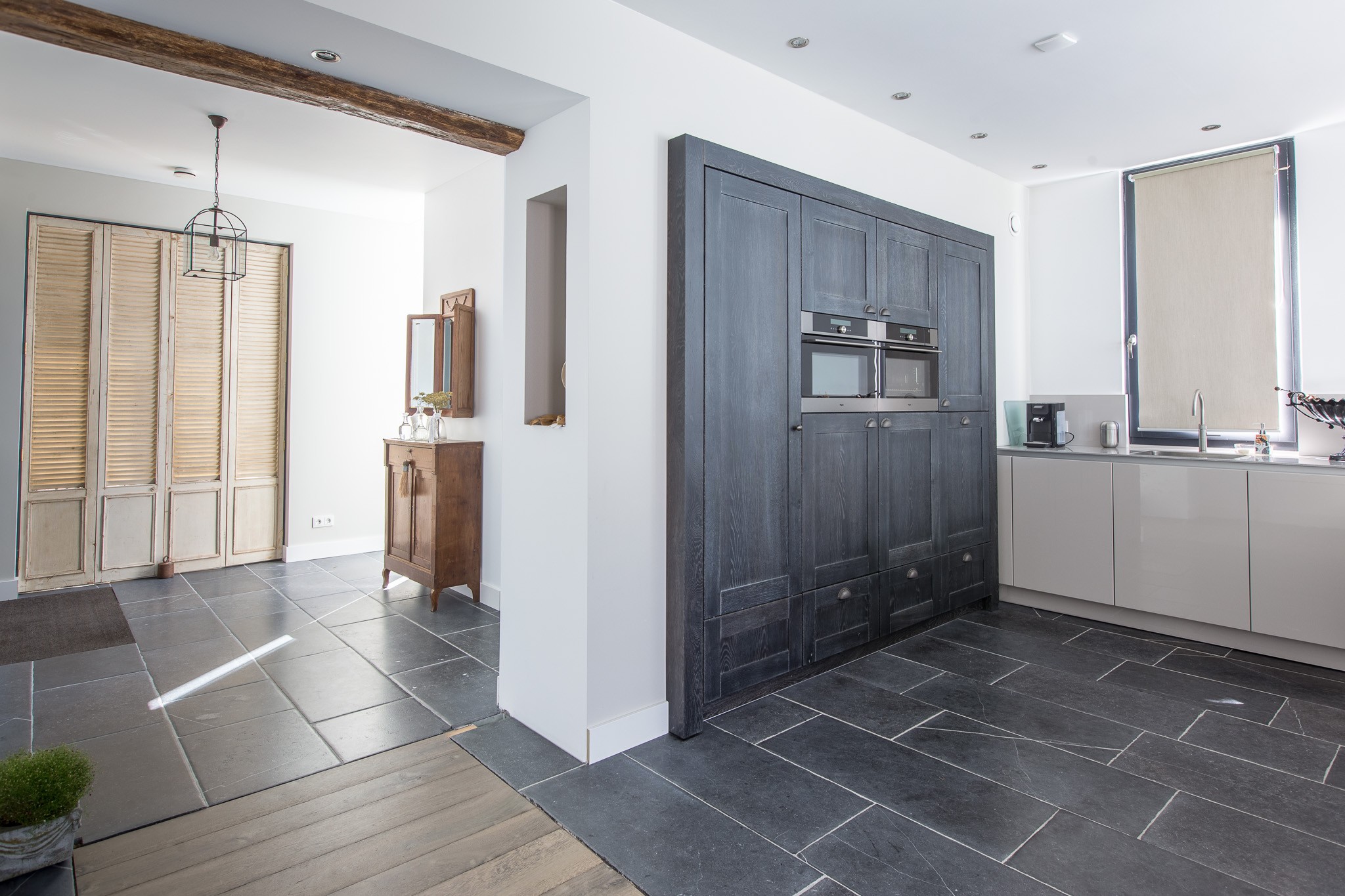 Deze afwerking combineert ook heel goed met het hout wat gebruikt is in de woning.