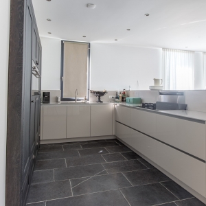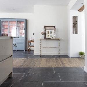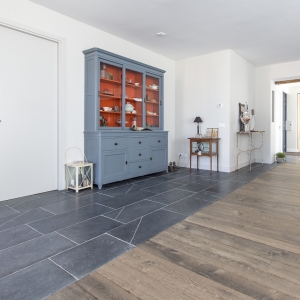 De familie Westerlaken was op zoek naar een vloer van Belgisch hardsteen. Alleen over de afwerking twijfelde ze even. Na een bezoekje in onze showroom is de keuze gevallen op de Monastery light variant.