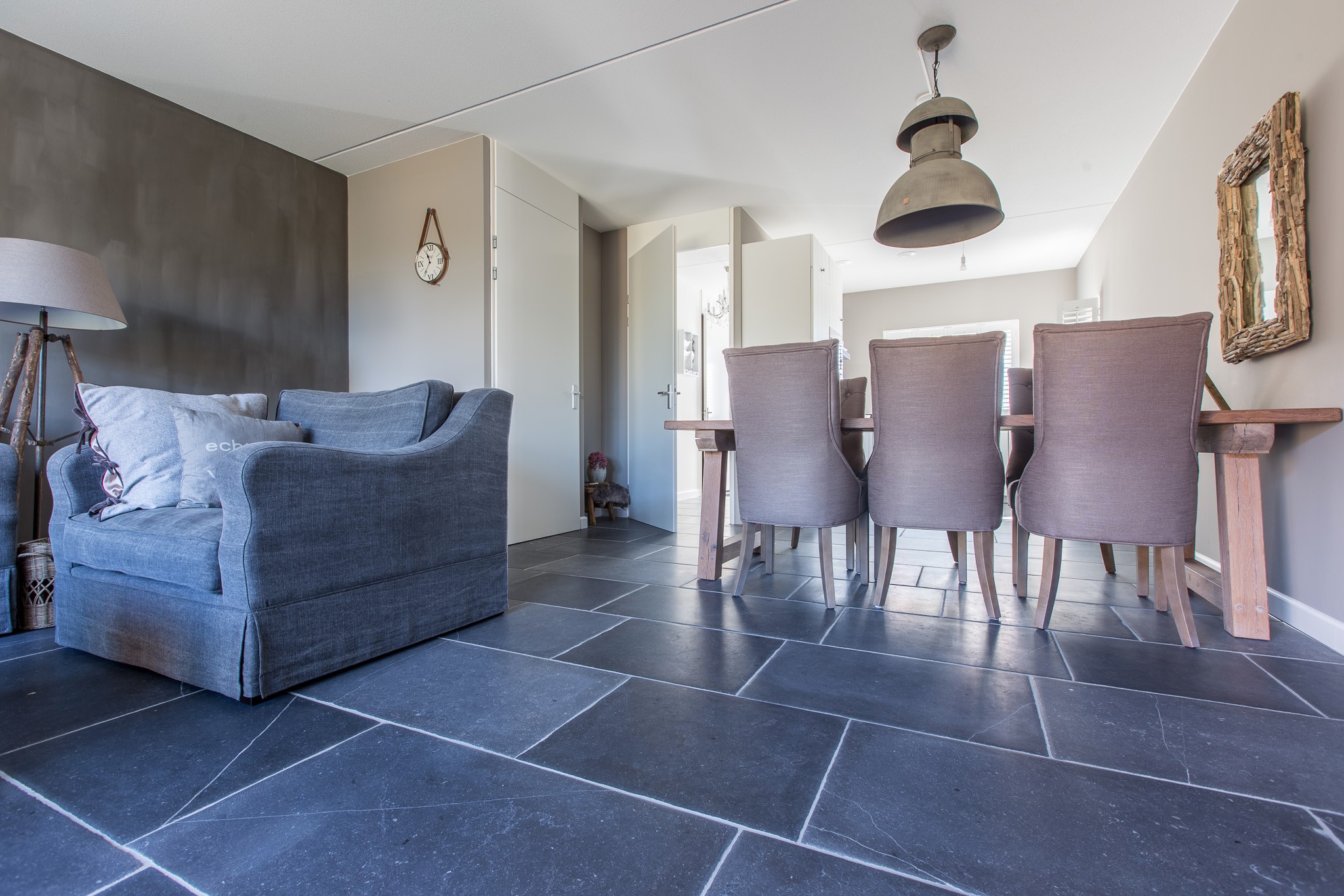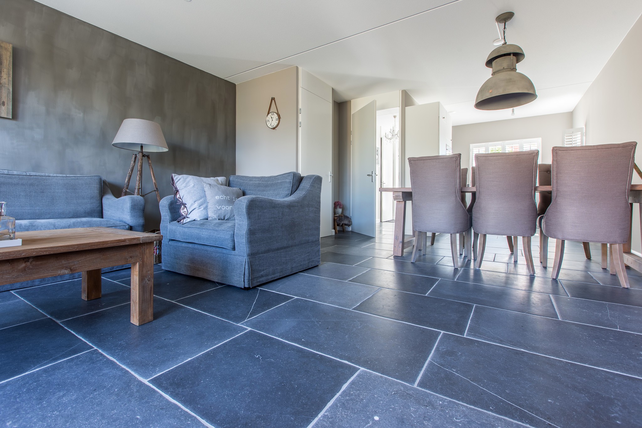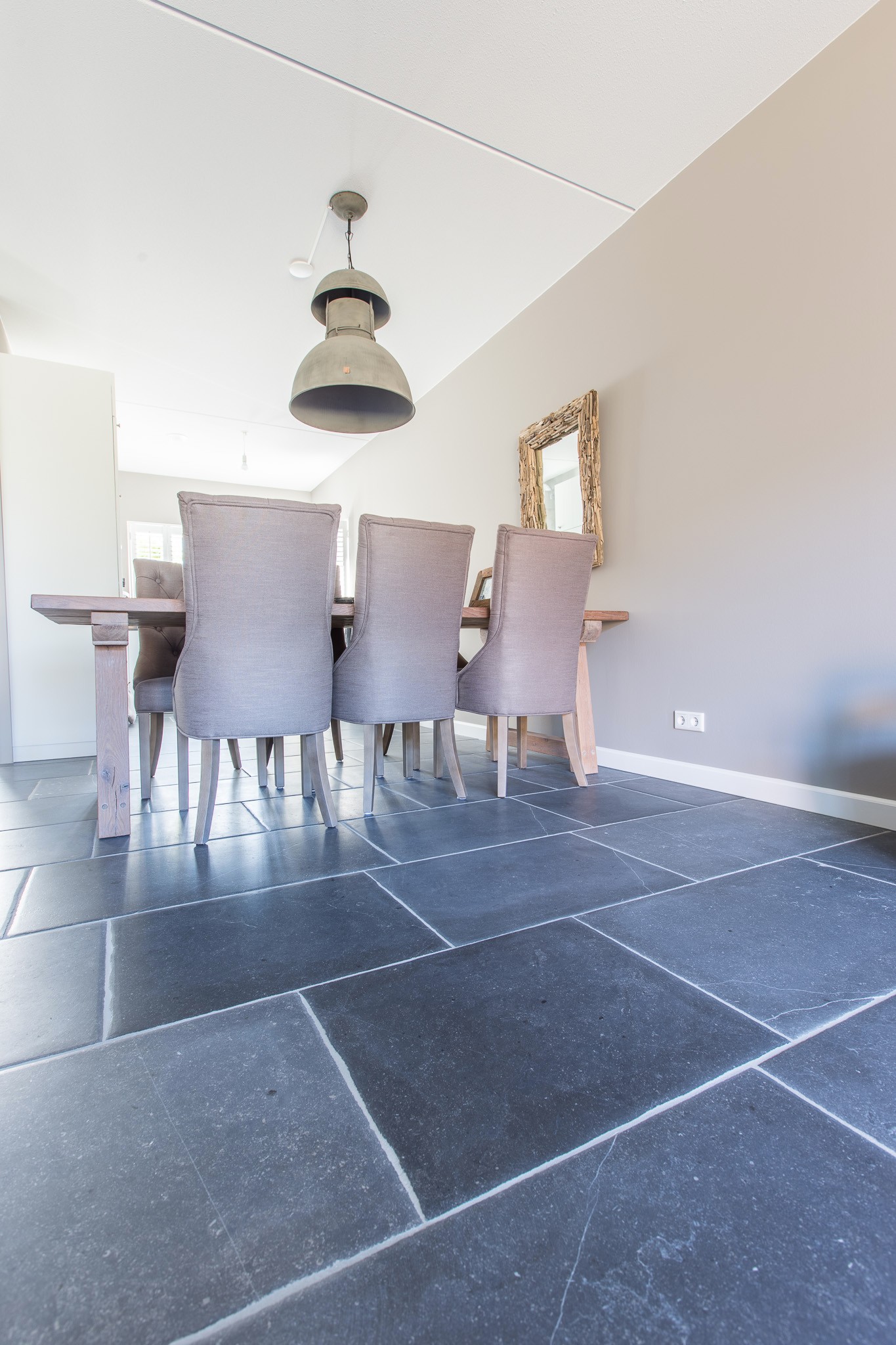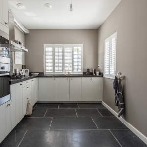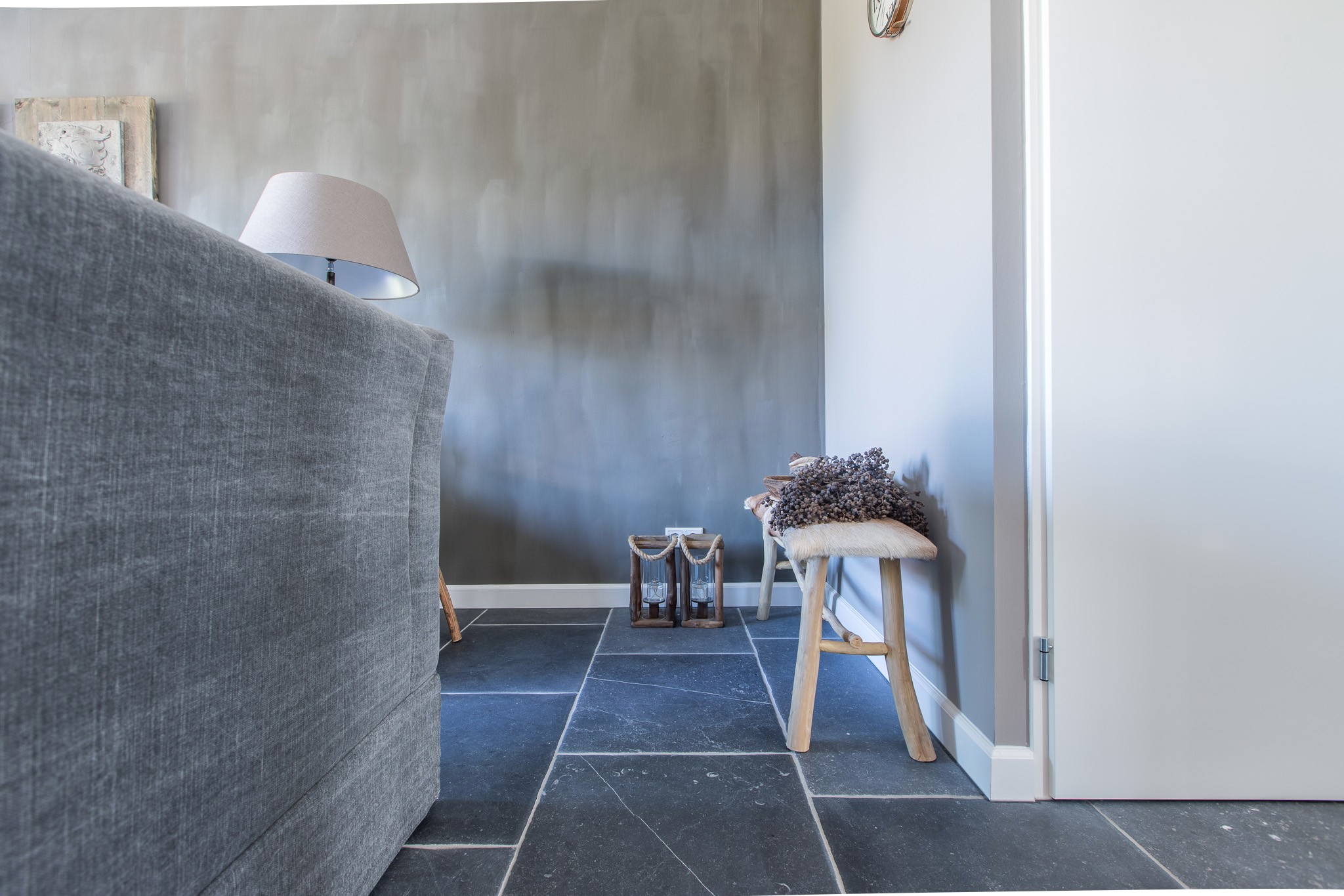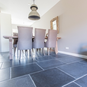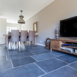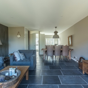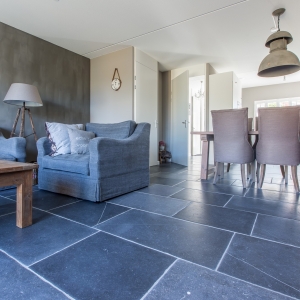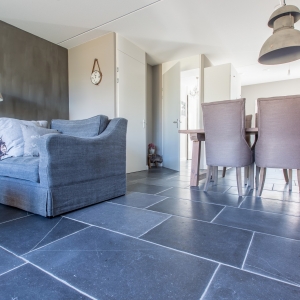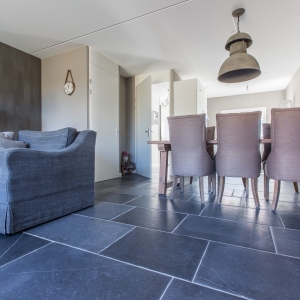 Zij kozen voor een Belgisch Hardsteen Monastery Light voor de benedenverdieping. Samen met de andere natuurlijke materialen en stoffen die gebruikt zijn, is deze woning heel uitnodigend en toch tegelijkertijd een oase van rust.