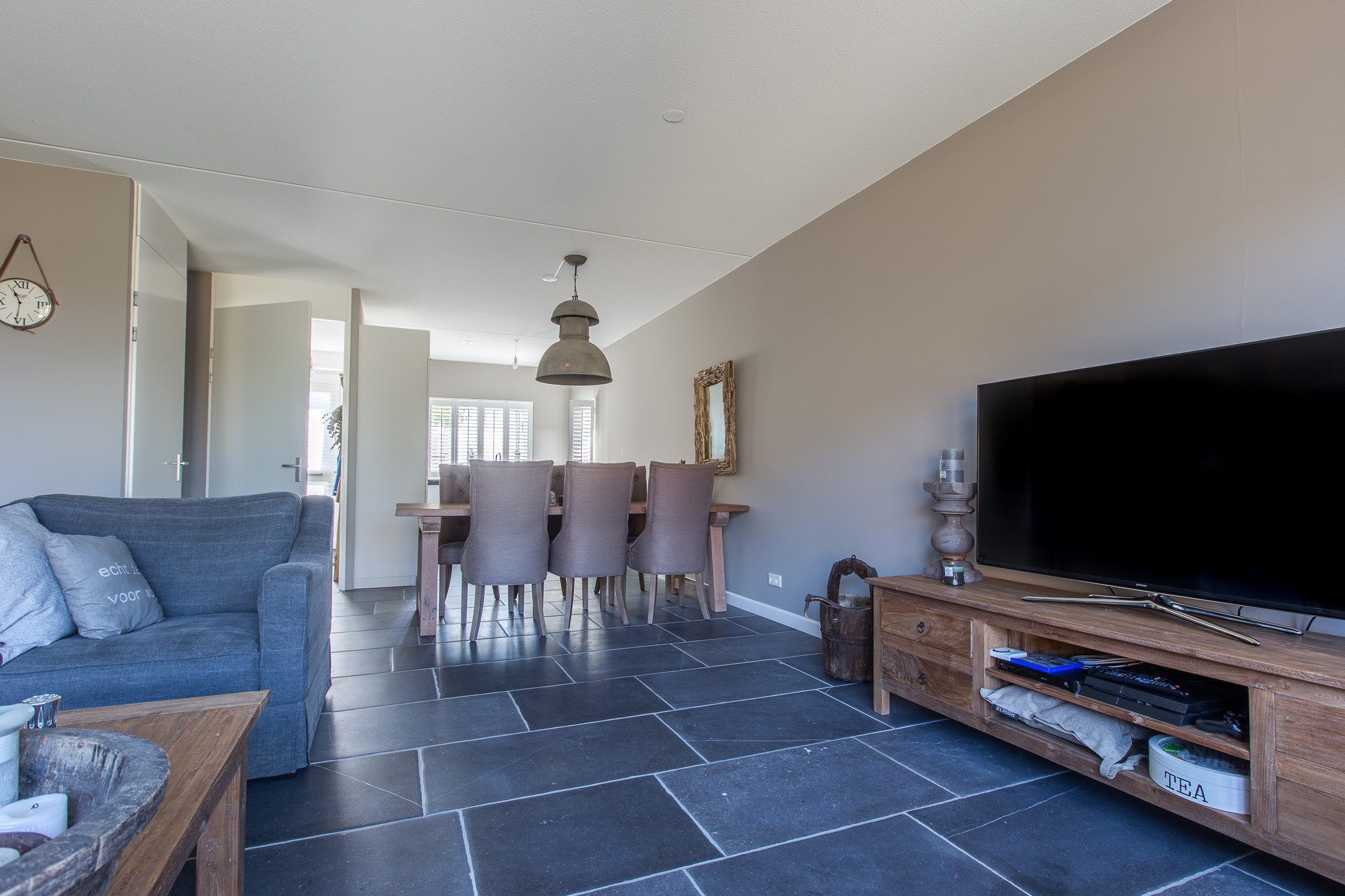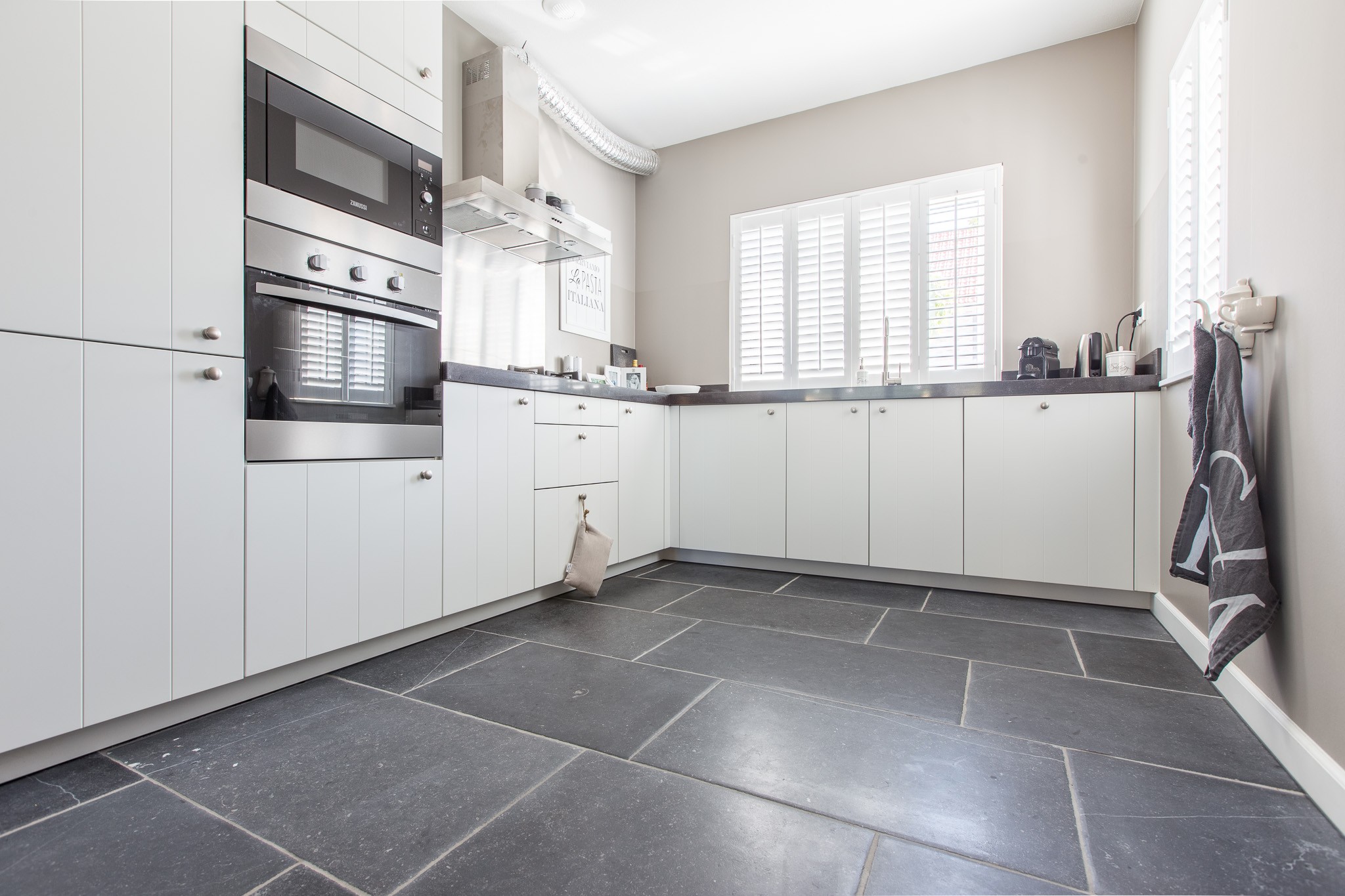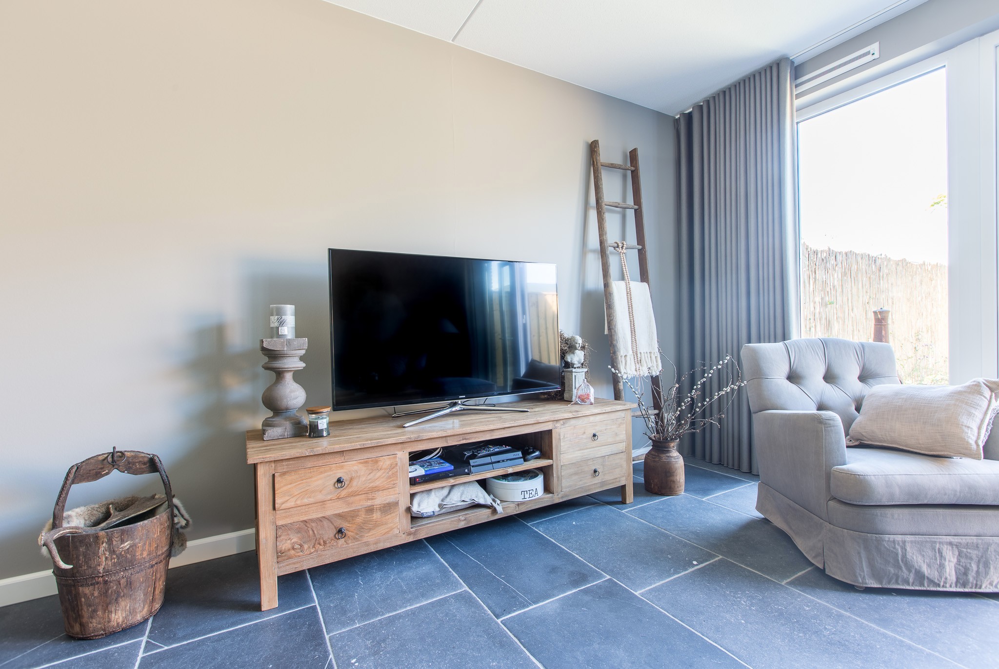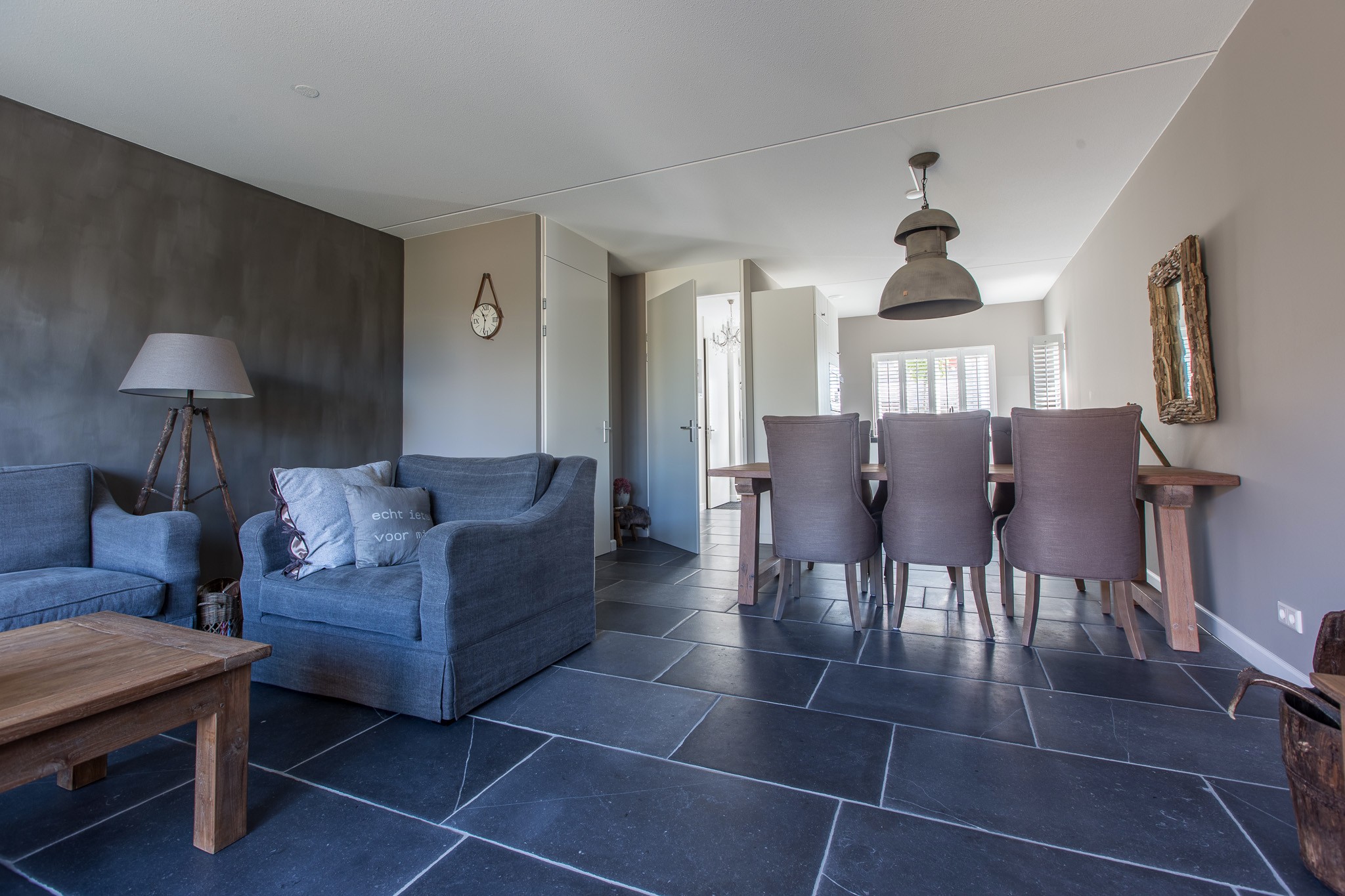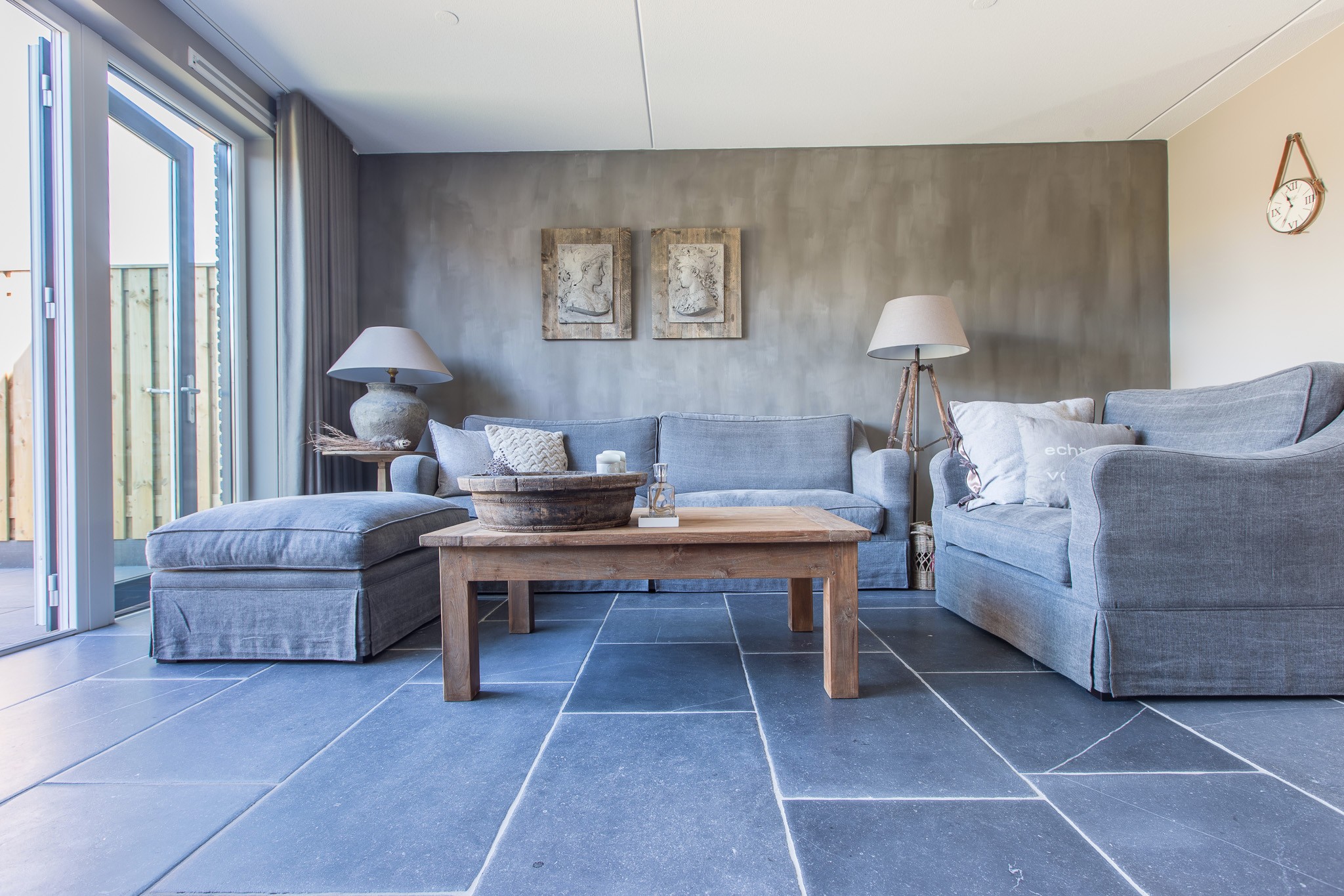 Zij kozen voor een Belgisch Hardsteen Monastery Light voor de benedenverdieping. Samen met de andere natuurlijke materialen en stoffen die gebruikt zijn, is deze woning heel uitnodigend en toch tegelijkertijd een oase van rust.