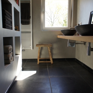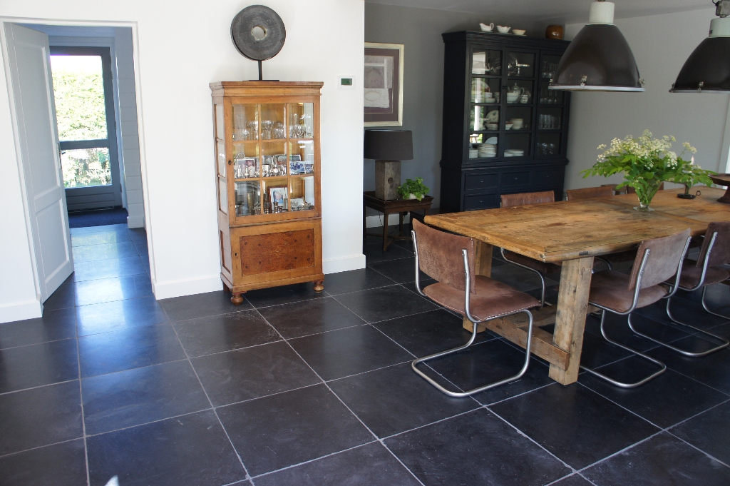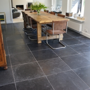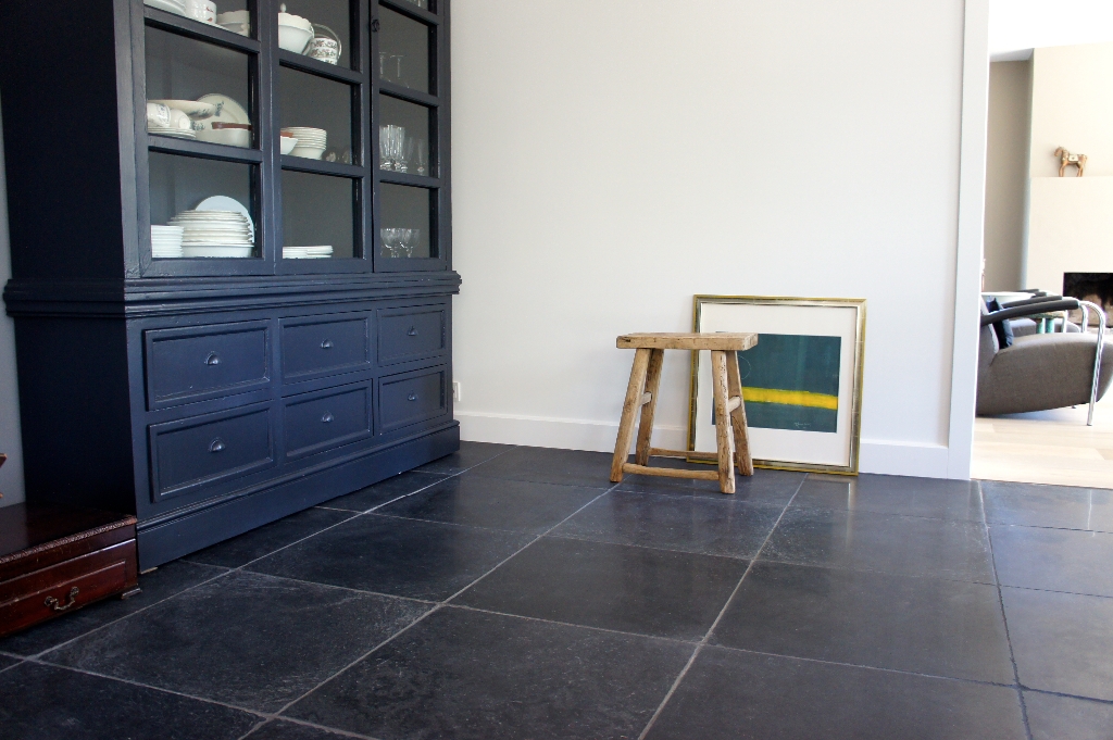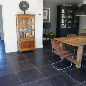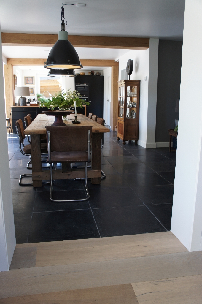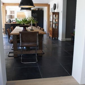 De familie Zijlmans was op zoek naar een donkere verouderde tegel, die perfect paste bij hun nieuwe woning. Na een bezoek aan de showroom hebben zij gekozen voor onze Harappa Stone Black Anticato. Ook het legwerk is door ons verzorgd. Van den Heuvel & Zn. heeft ook deze levering weer prachtig verwerkt.