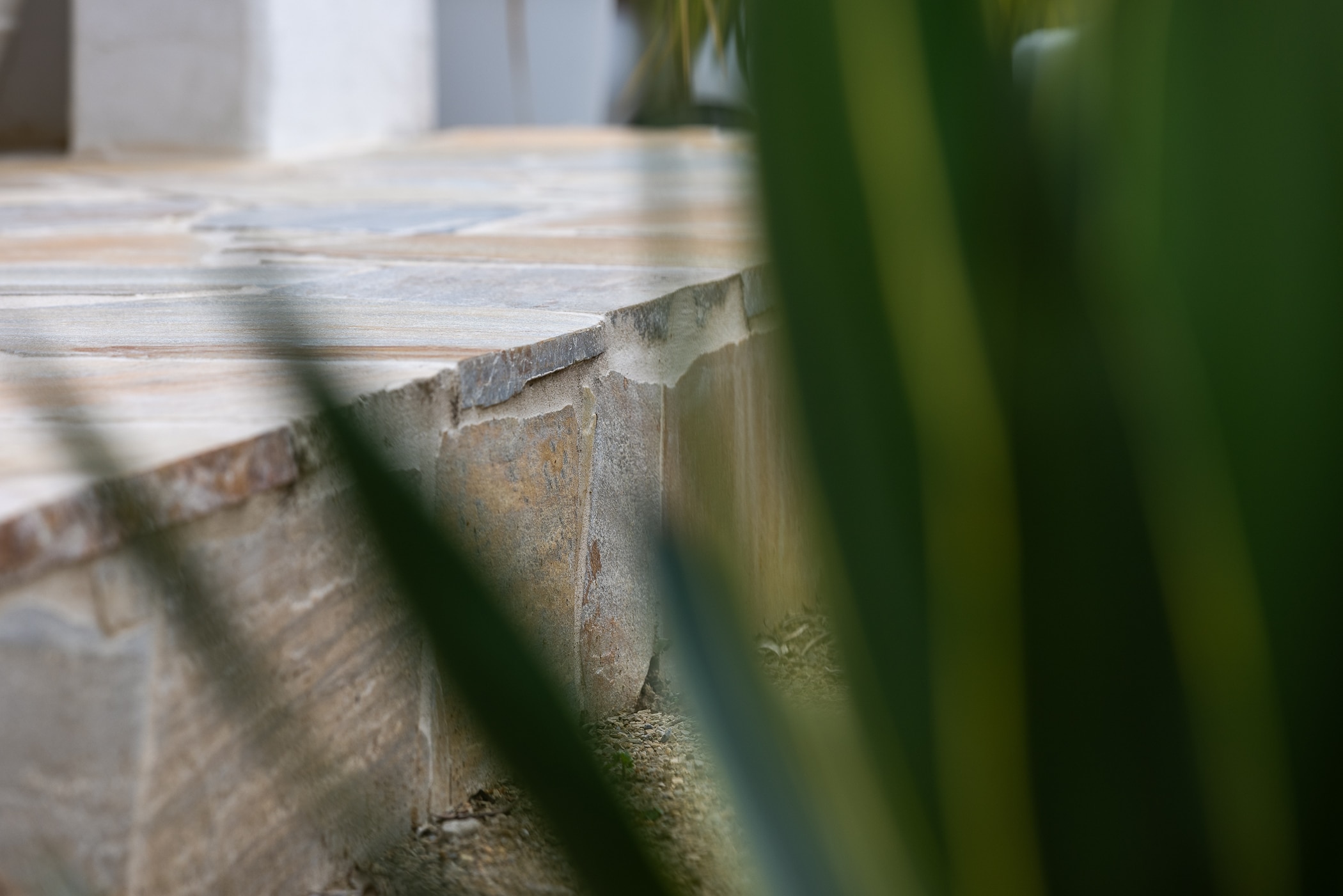 Flagstones Brasil Yellow in Ibiza stijl tuin