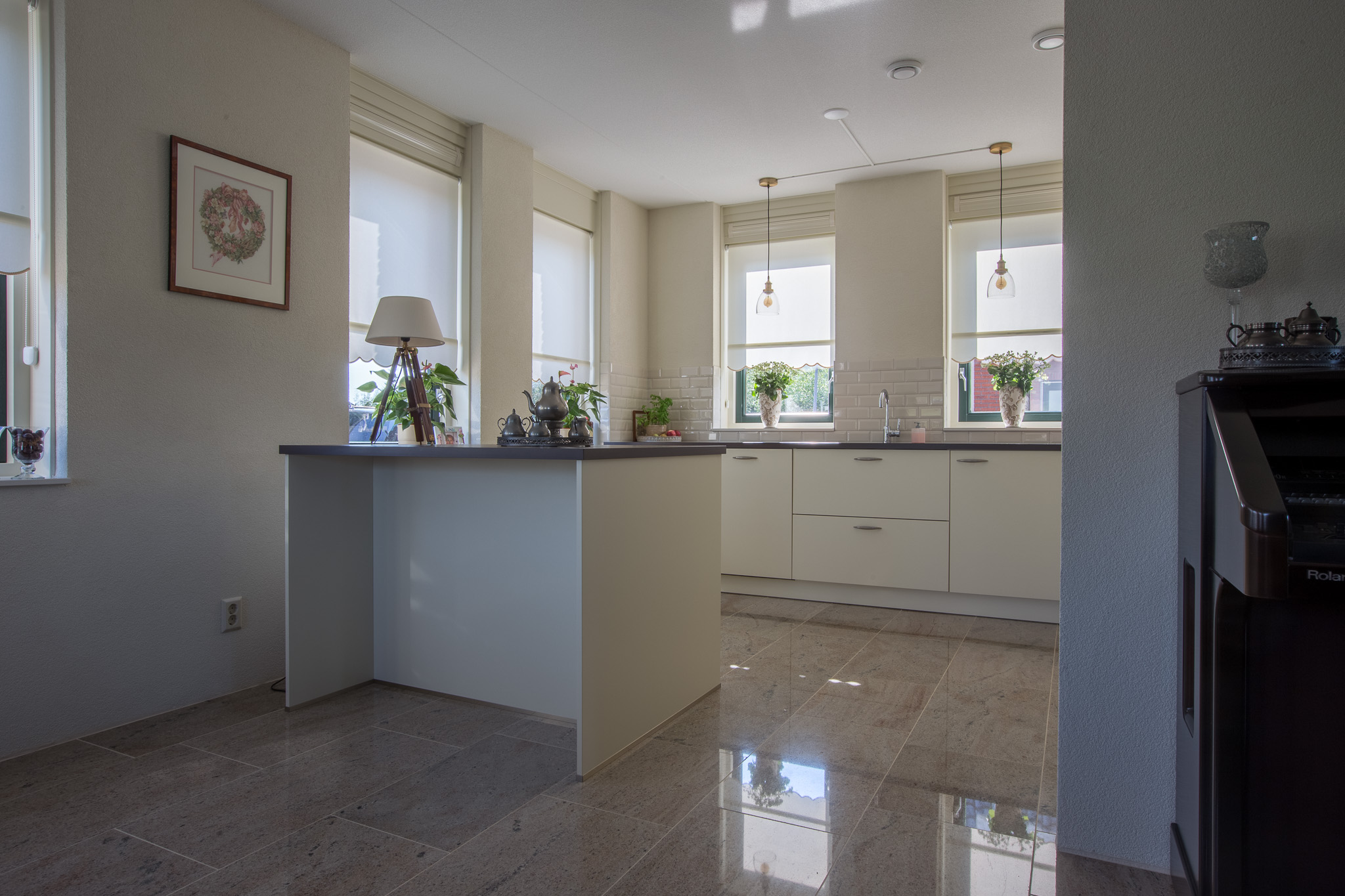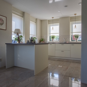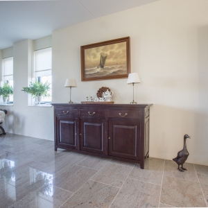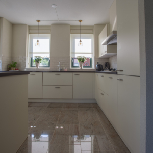 De Ghibly Light Gepolijst is een bijzondere graniet met een zeer exclusieve uitstraling. De gepolijste toplaag zorgt voor een prachtige glans en geeft een schitterend beeld op de structuur van deze graniet. De licht beige opslag van deze Ghibly Light Gepolijst zorgt ervoor dat deze graniet een gemoedelijke opslag heeft. Ook bij weinig licht zal deze vloer absoluut niet donker tonen.