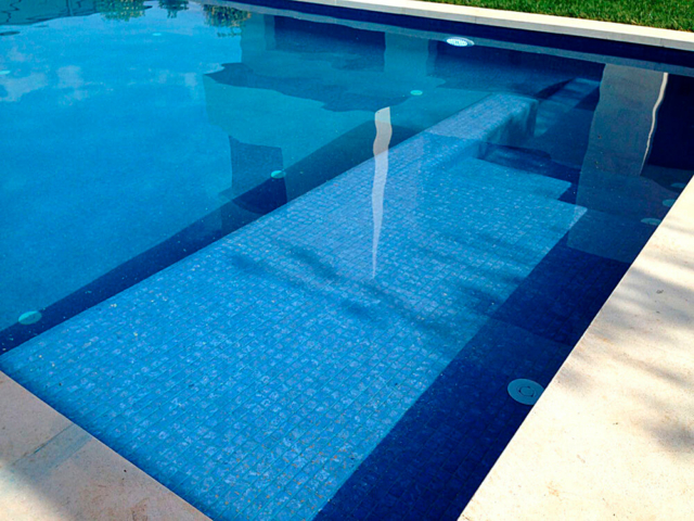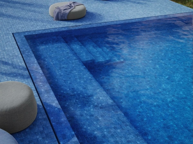 Precies dat effect creëert u wanneer men gebruik maakt van de Zen Bluestone glasmozaïek in bijvoorbeeld een bad, Jacuzzi of zwembad.