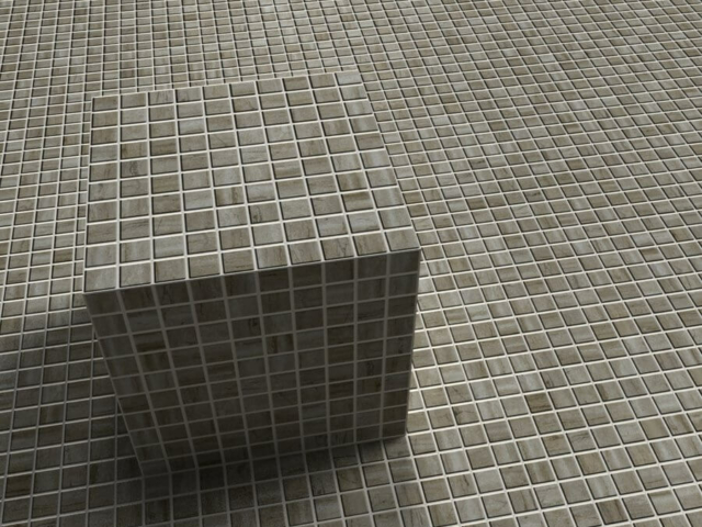Deze Mozaïek is geïnspireerd op het Bruine Travertin, welke tegendraads gezaagd is. Dit noemen ze ook wel Vein Cut.