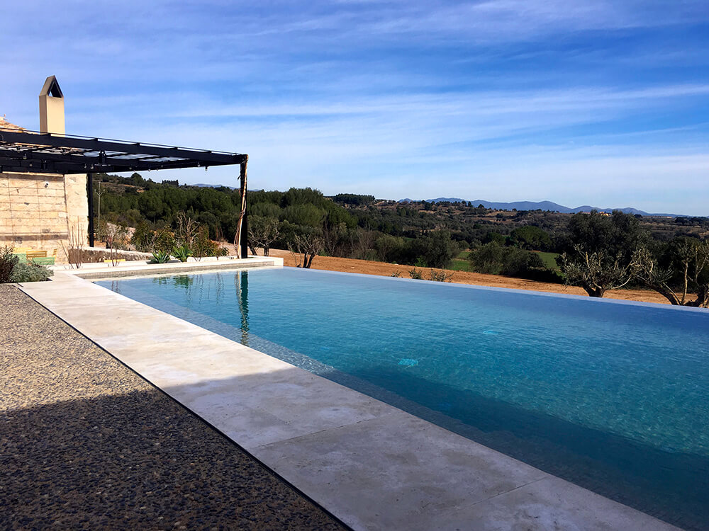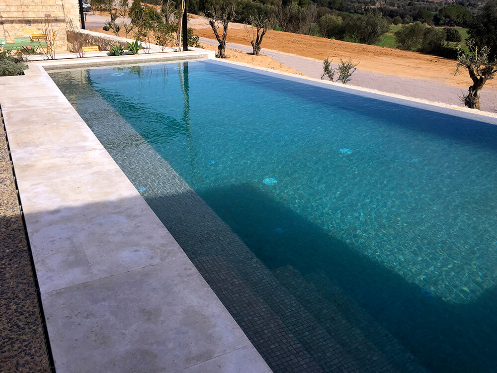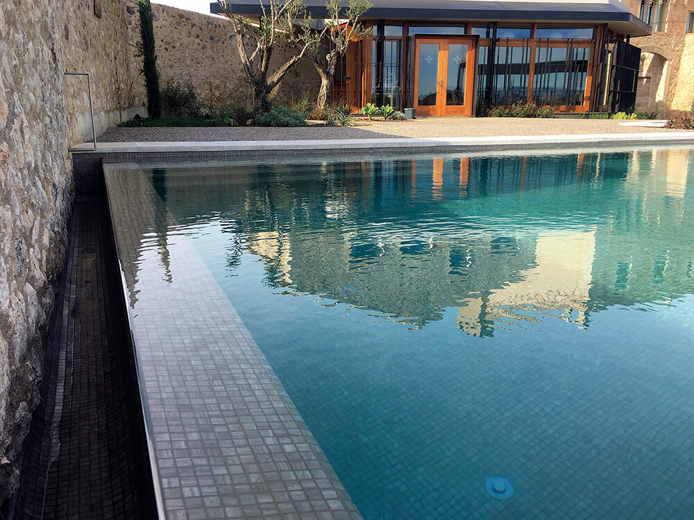 Kleuren met aardetinten werken echt fantastisch in combinatie met de Creamstone Glasmozaïek. Door de exclusieve matte uitstraling van de steentjes wordt bijvoorbeeld ook een zwembad zo omgetoverd tot een luxueus plaatje.