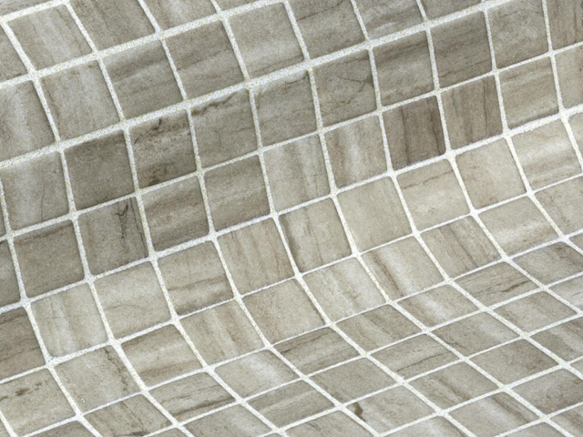 Glasmozaïek heeft een relatief vlakke bovenkant waardoor vlekken vanuit bijvoorbeeld chloor moeite hebben om zicht hieraan te hechten.