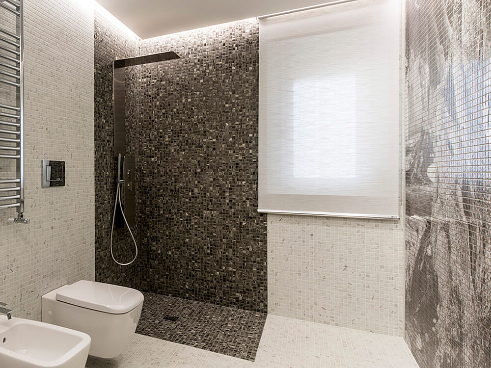 Zwart – Wit geschakeerde Glasmozaïek.