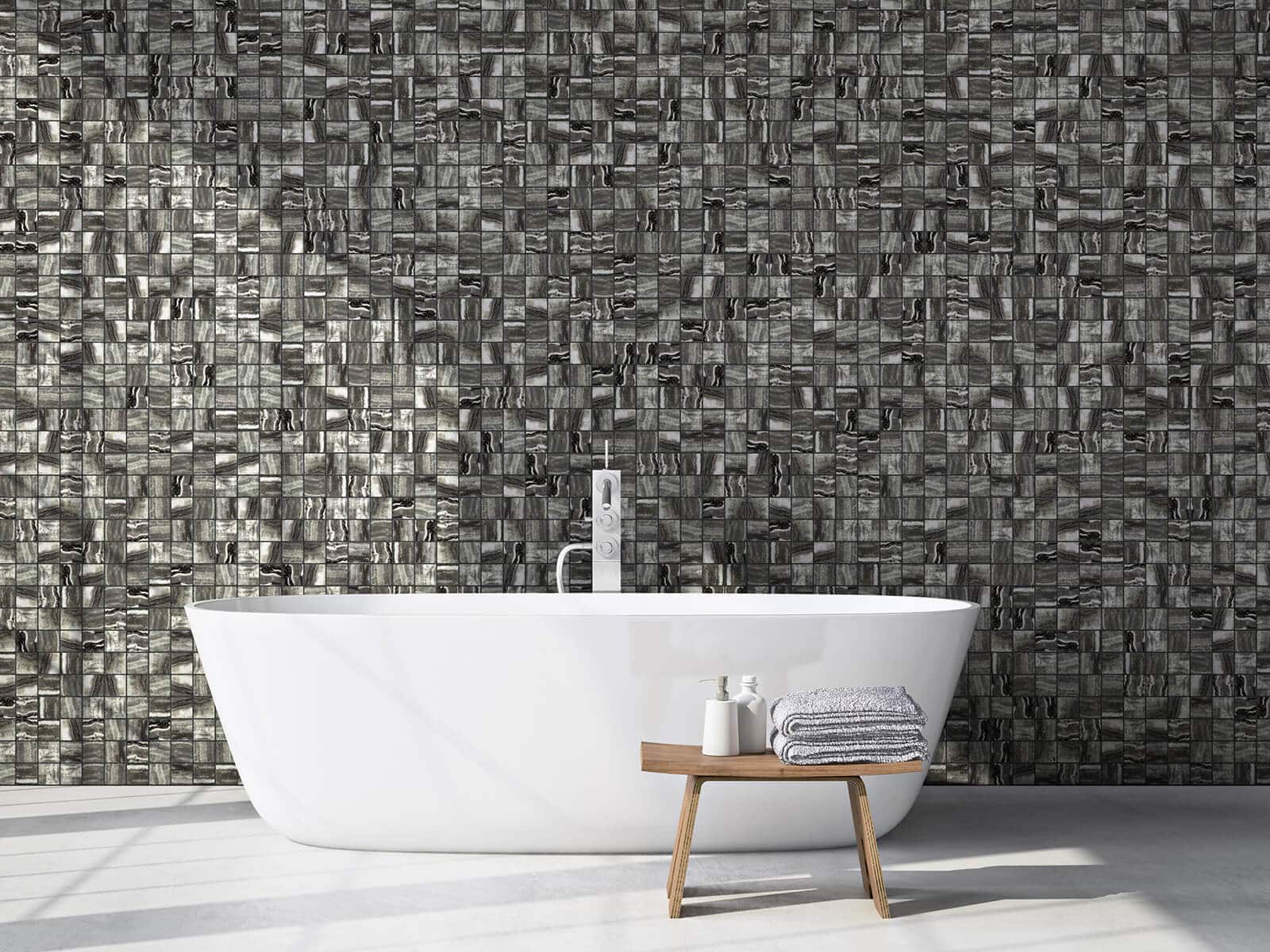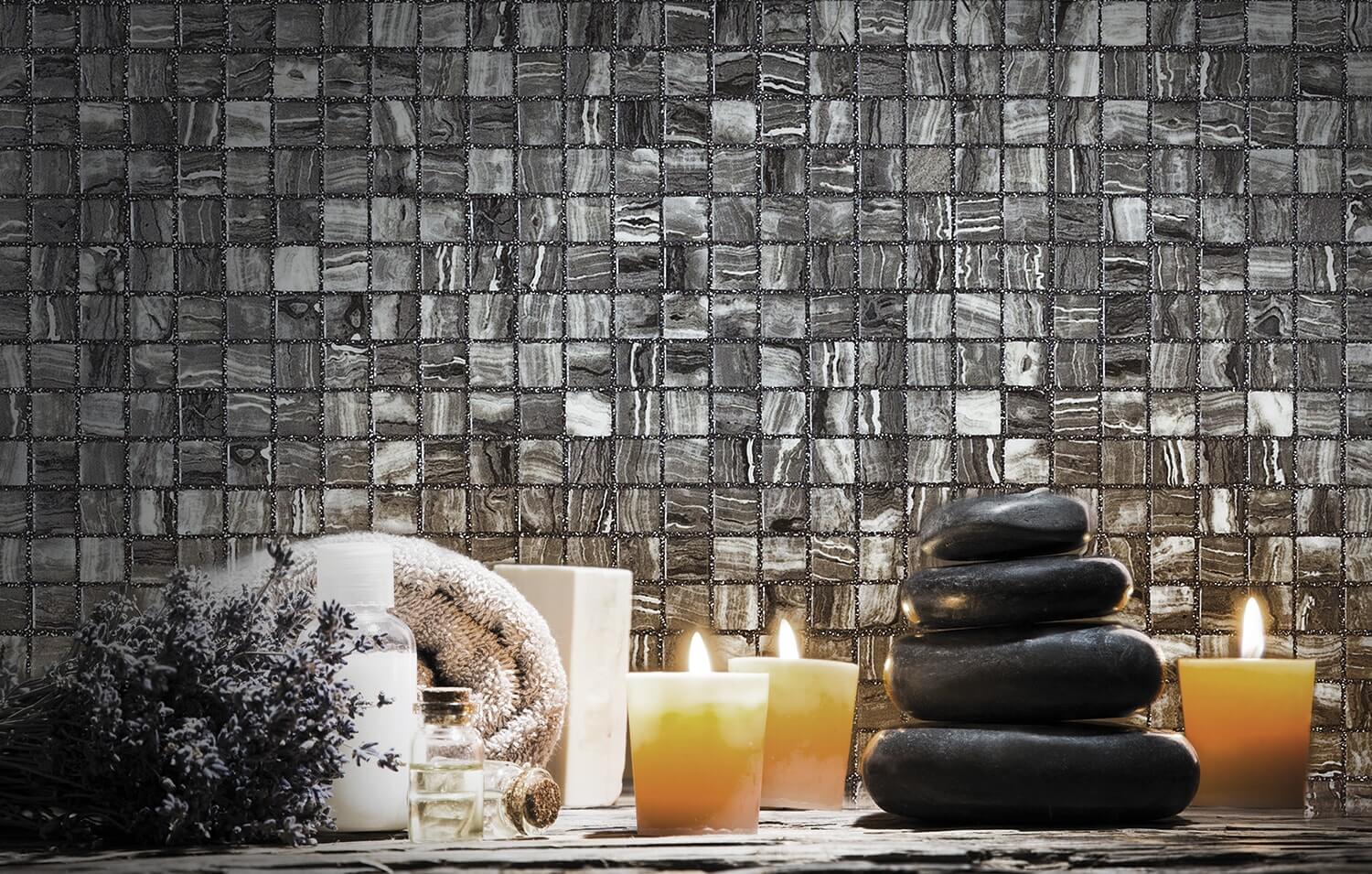 Vaak zien wij dat onze klanten een glasmozaïek met hun kenmerkende felle kleuren te aanwezig vinden in de ruimte. Wanneer dit zo is, kan de Zen Tigrato een perfecte wandoplossing zijn. Deze glasmozaïek wordt gekenmerkt door een donkere kleur met witte beadering. Het fraaie van deze glasmozaïek is dat geen steentje hetzelfde is. Dit geeft een subtiele moderne twist aan elk interieur.