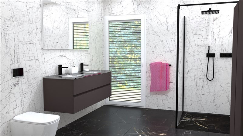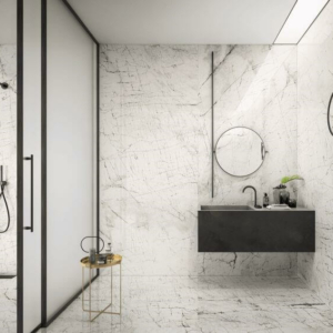 De dunne contrasterende zwarte aders combineren eenvoudig met veel verschillende kleuren en materialen. Zo kunt u de Marmer Look Golden Radix goed combineren met staal, hout en beton.