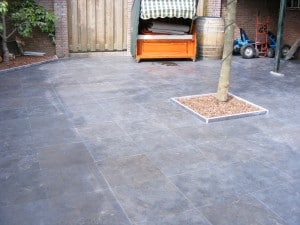 Naast de vloeren die in de specie of lijm verwerkt worden, verkoopt Vdh-vd.nl ook buiten tegels. De hardsteen tegels zijn hetzelfde afgewerkt als de tegels voor binnen. Alleen zijn deze hardsteen tegels 3cm dik. Dit heeft als voordeel dat de tegels gemakkelijk in het zand of gestabiliseerd zand gelegd kunnen worden. Gestabiliseerd zand is zand met daar doorheen cement verwerkt.