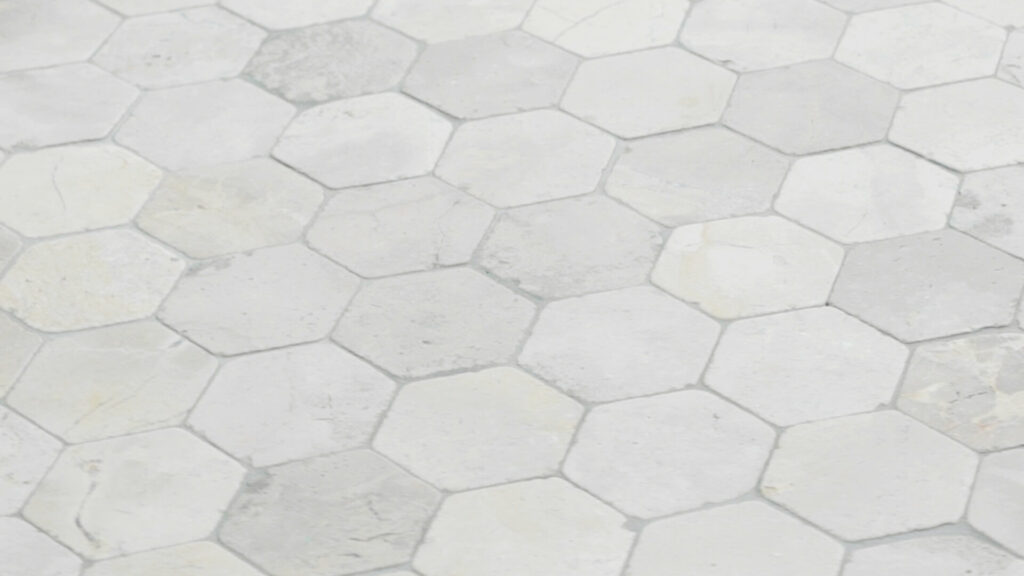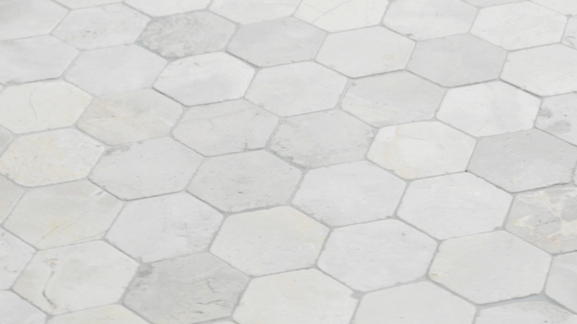 Een prachtige selectie marmer verwerkt tot hexagon mozaïek.