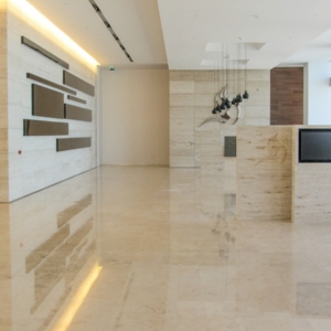 De Jura Gelb Gepolijst is een beige marmer met een prachtige structuur. Door zijn gepolijste afwerking is dit een schitterende strakke vloer.