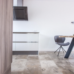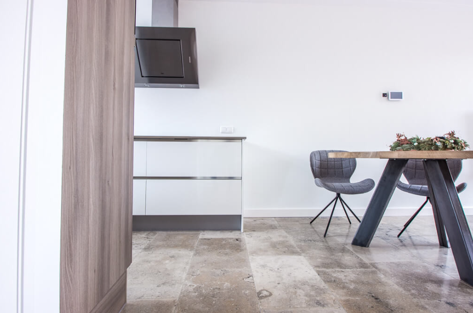 Doordat deze Jura Grau “gezoet” is, heeft de vloer iets minder glans dan zijn gepolijste broer. Hierdoor is de vloer iets neutraler en laat hij zich gemakkelijker onderhouden.