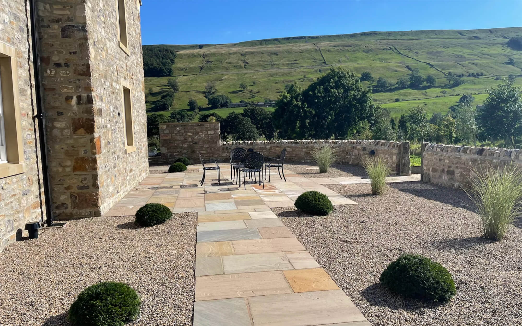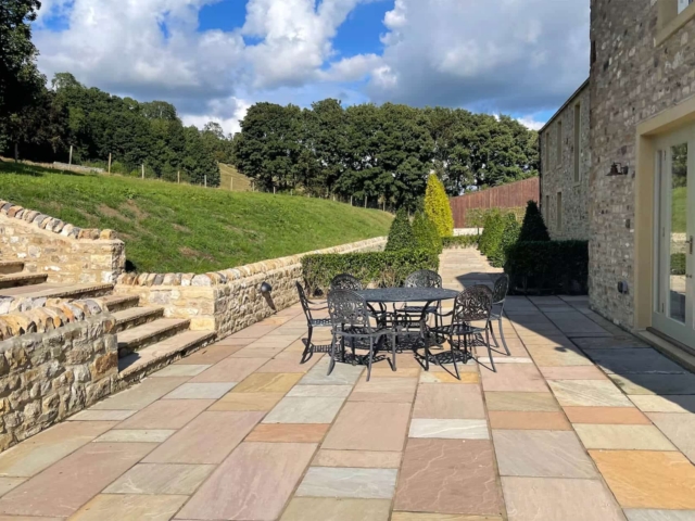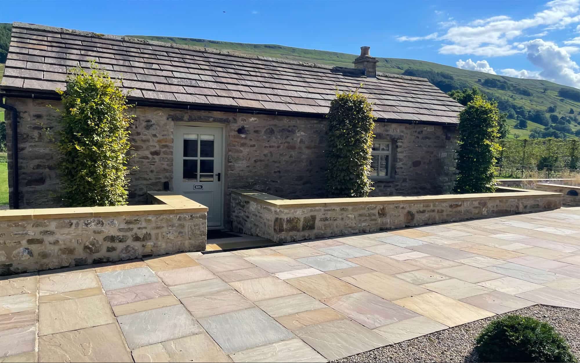 De Kandla Ocre is een harde leisteen tegel die veel fijne eigenschappen heeft. Zo is het breukruwe oppervlak van deze tegel zeer geschikt voor het Hollandse klimaat. De breukruwe toplaag van deze tegels is namelijk niet alleen erg mooi, maar heeft ook een anti-slip functie. Zelfs na een flinke regenbui kunt u veilig uw terras op lopen.
