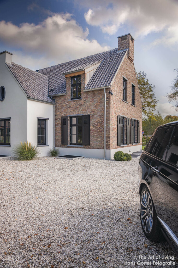 Rond het huis is er gebruik gemaakt van Grind en oude Waaltjes. Dit zet de villa prachtig op een voetstuk in de groene omgeving.