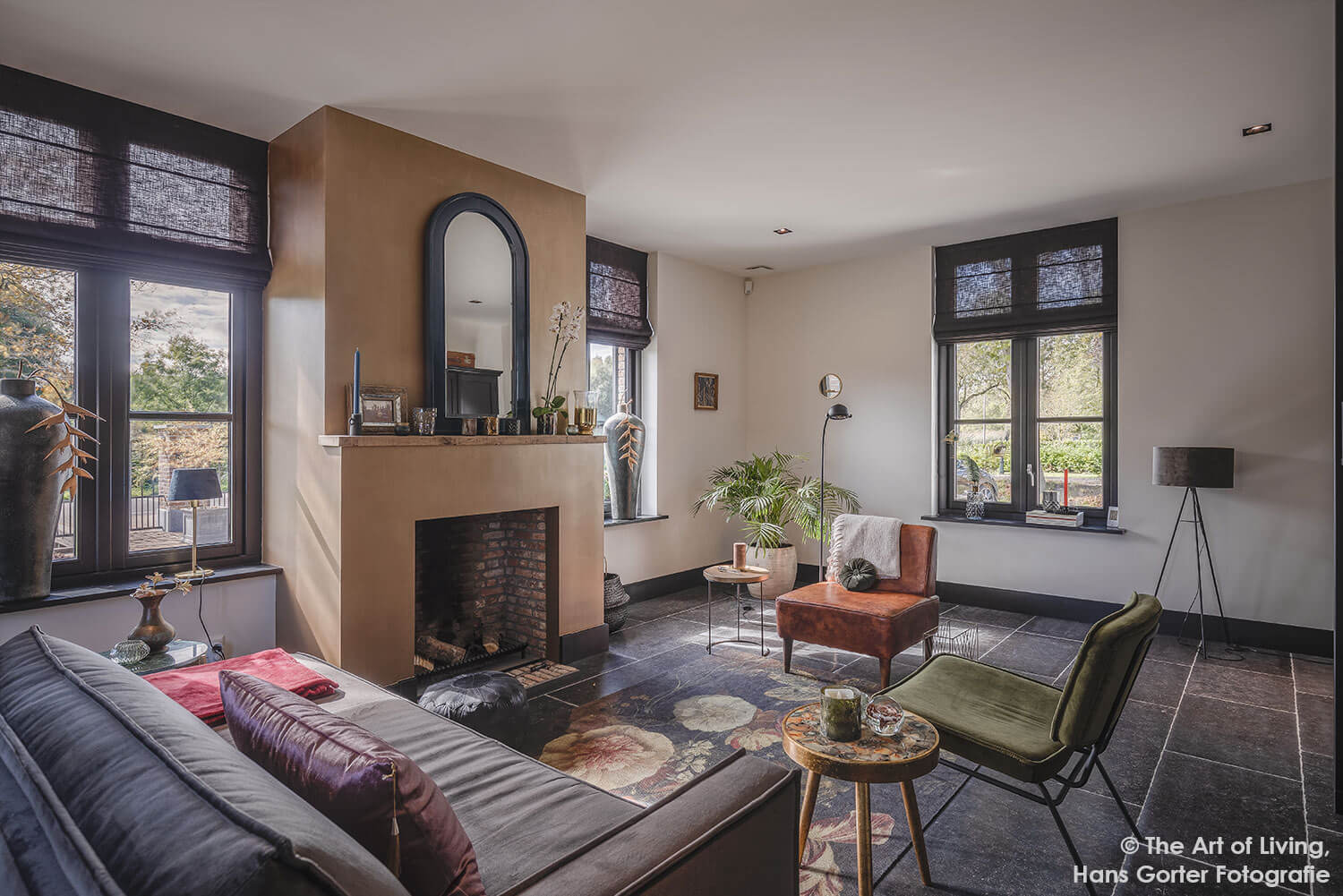 Zowel binnen als buiten het huis zijn verschillende elementen uitgevoerd in Belgisch hardsteen. Denk hierbij aan Raamdorpels, Gevelplinten en een brievenbus.