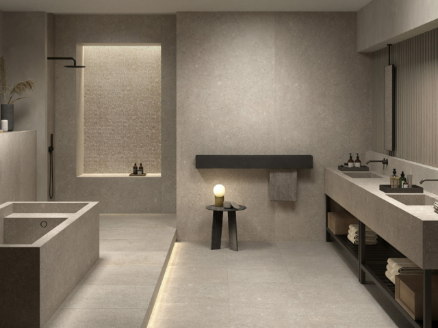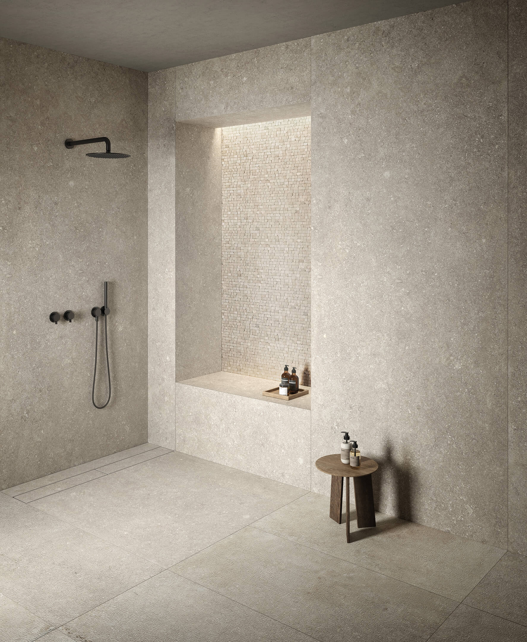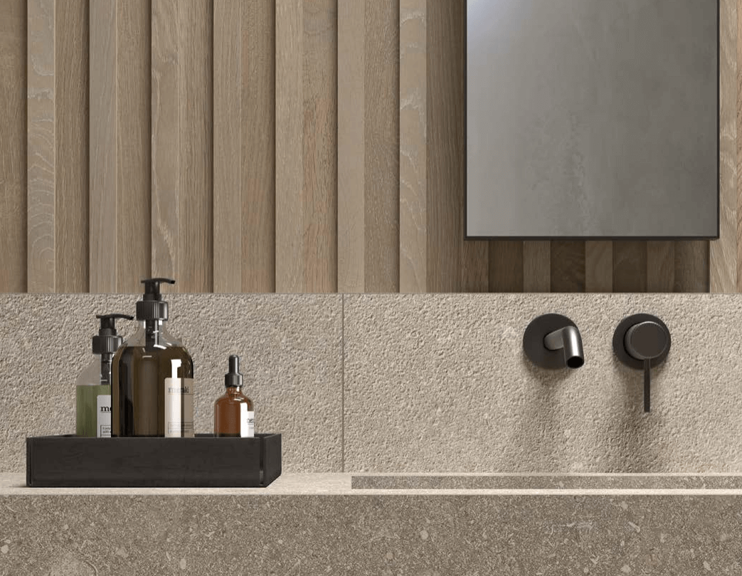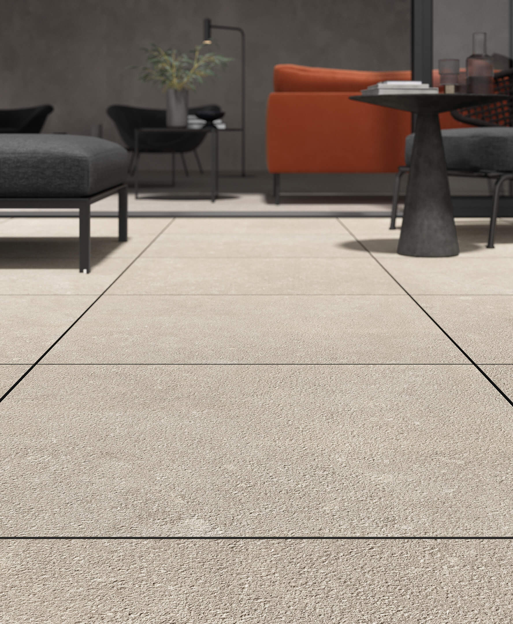- Carved Oppervlak: Het Carved oppervlak van Kronos Le Reverse – Dune Carved is een verwijzing naar de oppervlaktebehandeling van het materiaal, met een gebouchardeerd-effect dat de natuurlijke structuur benadrukt. Dit voegt een boeiende dimensie toe aan het visuele en tactiele aspect van de tegels.
