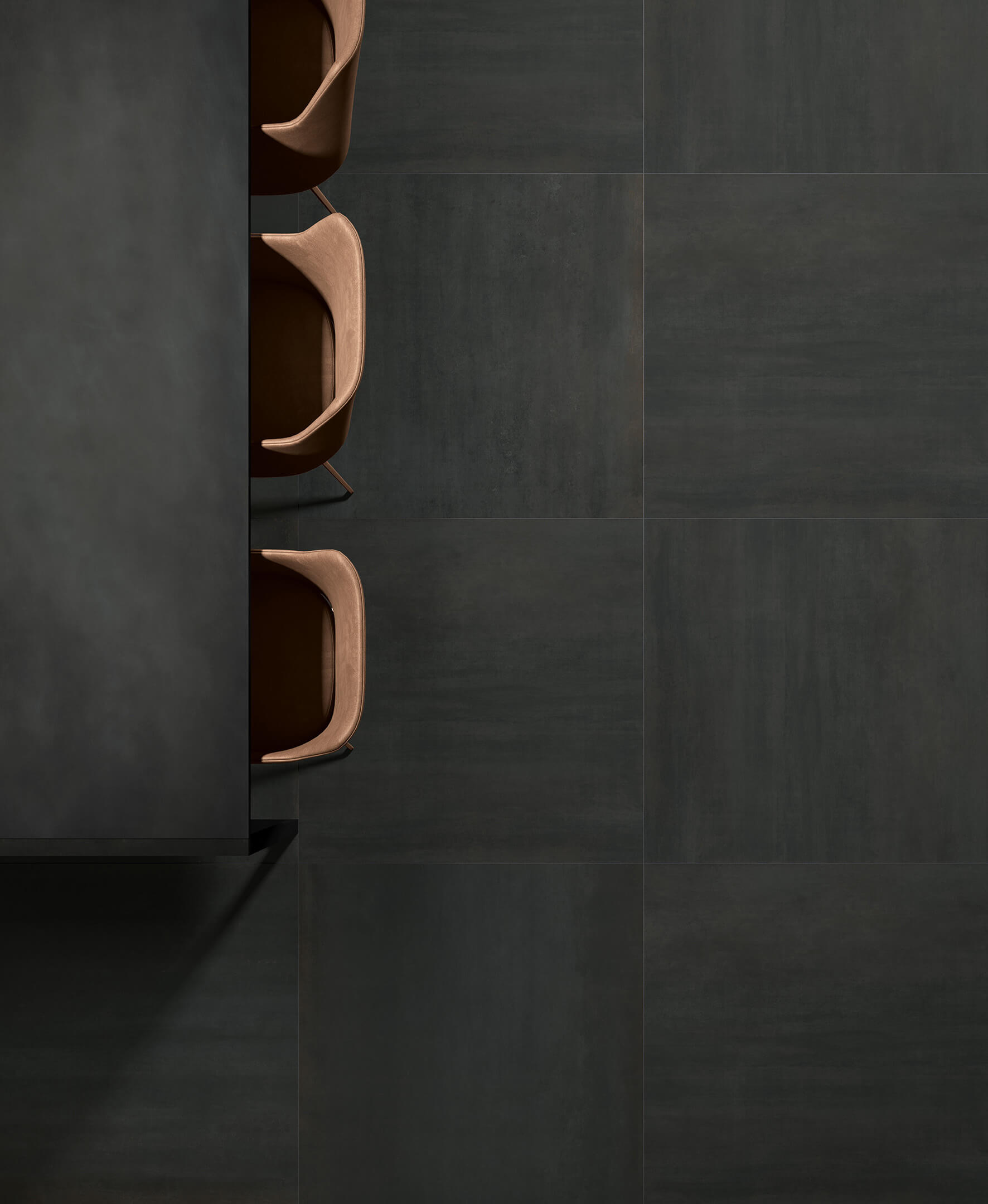 Kronos Metallique – Noir Oxide biedt de perfecte balans tussen industriële pracht en onderhoudsgemak. Deze tegels zijn vrijwel onderhoudsvrij, ze nemen geen vuil en vocht op, waardoor ze een ideale keuze zijn voor jouw ruimtes.