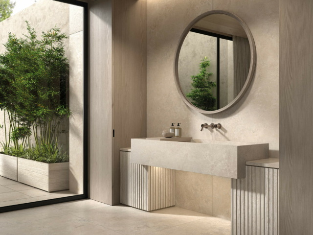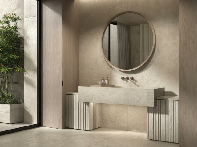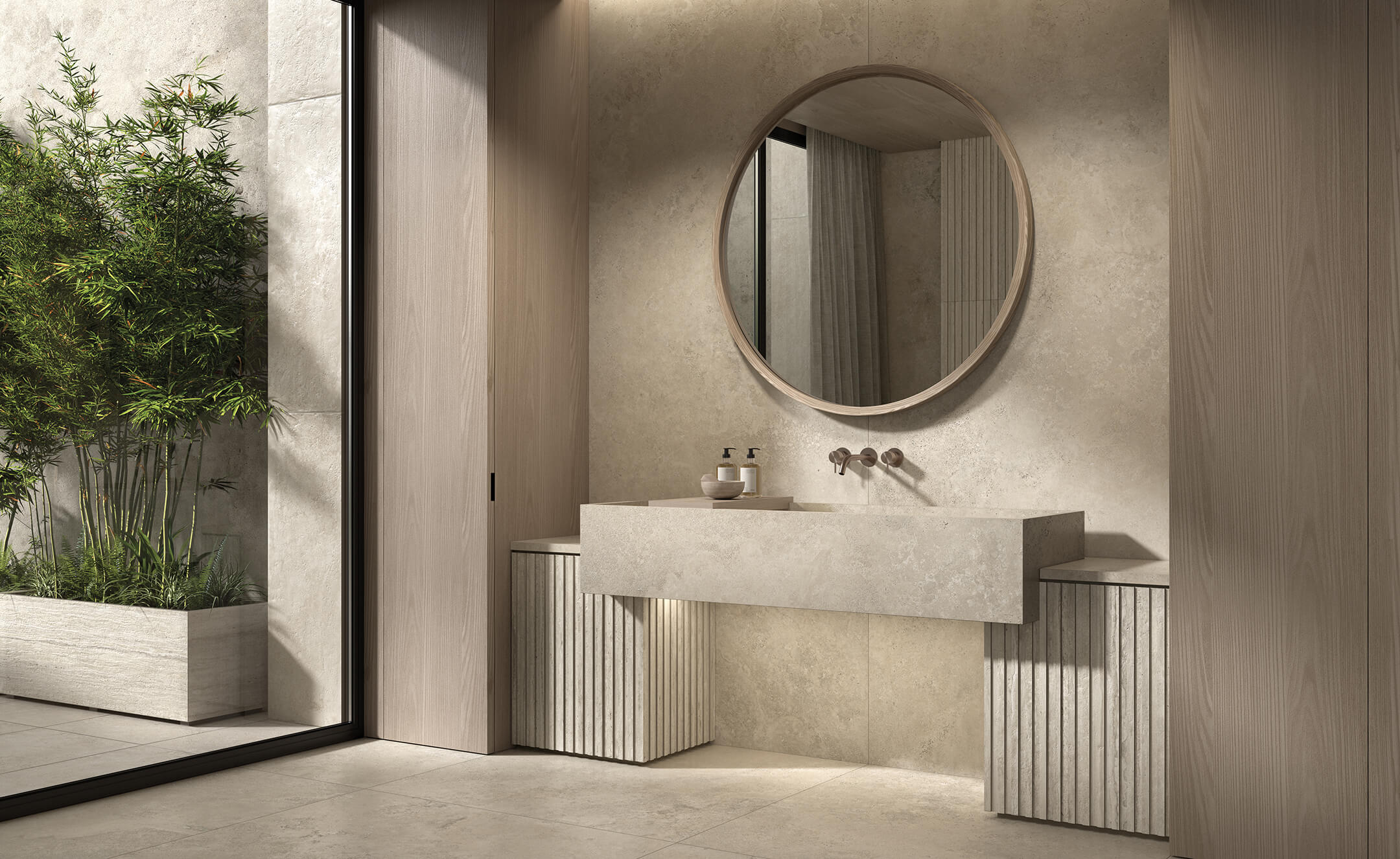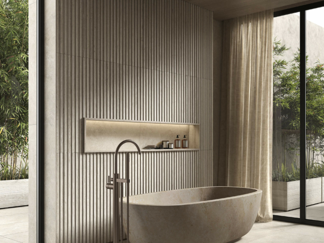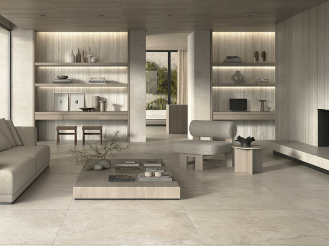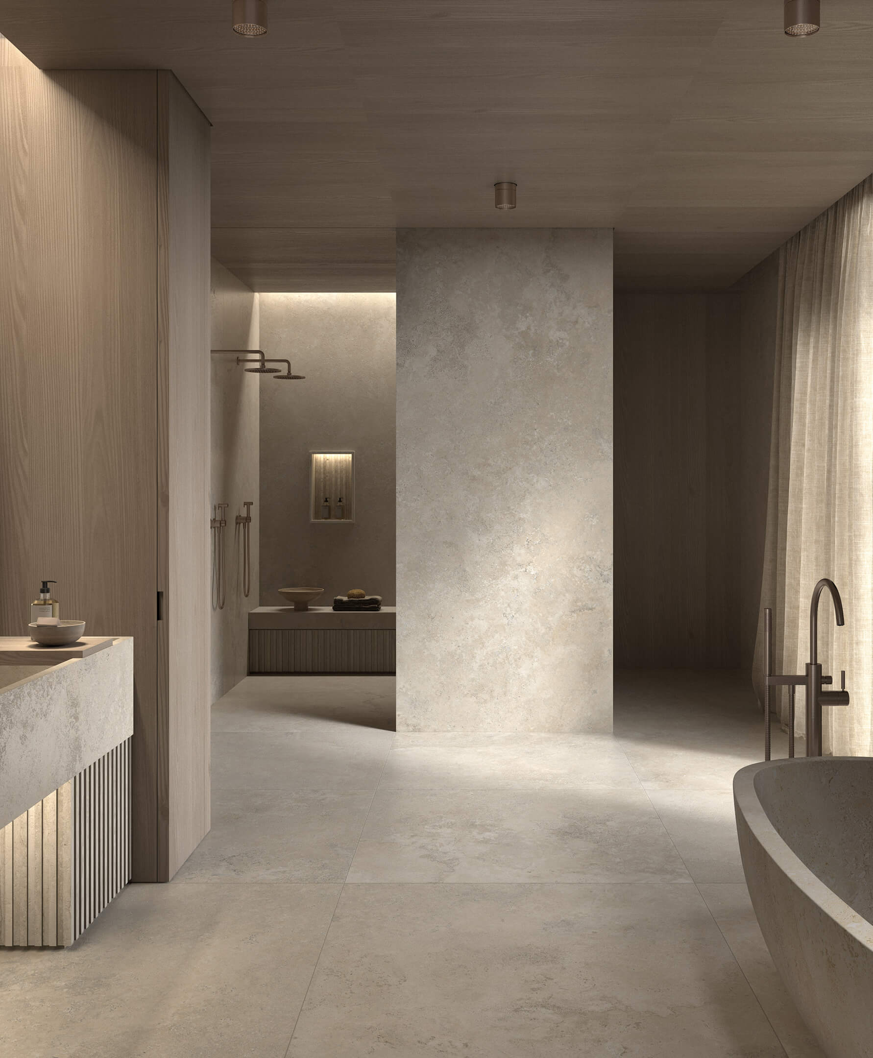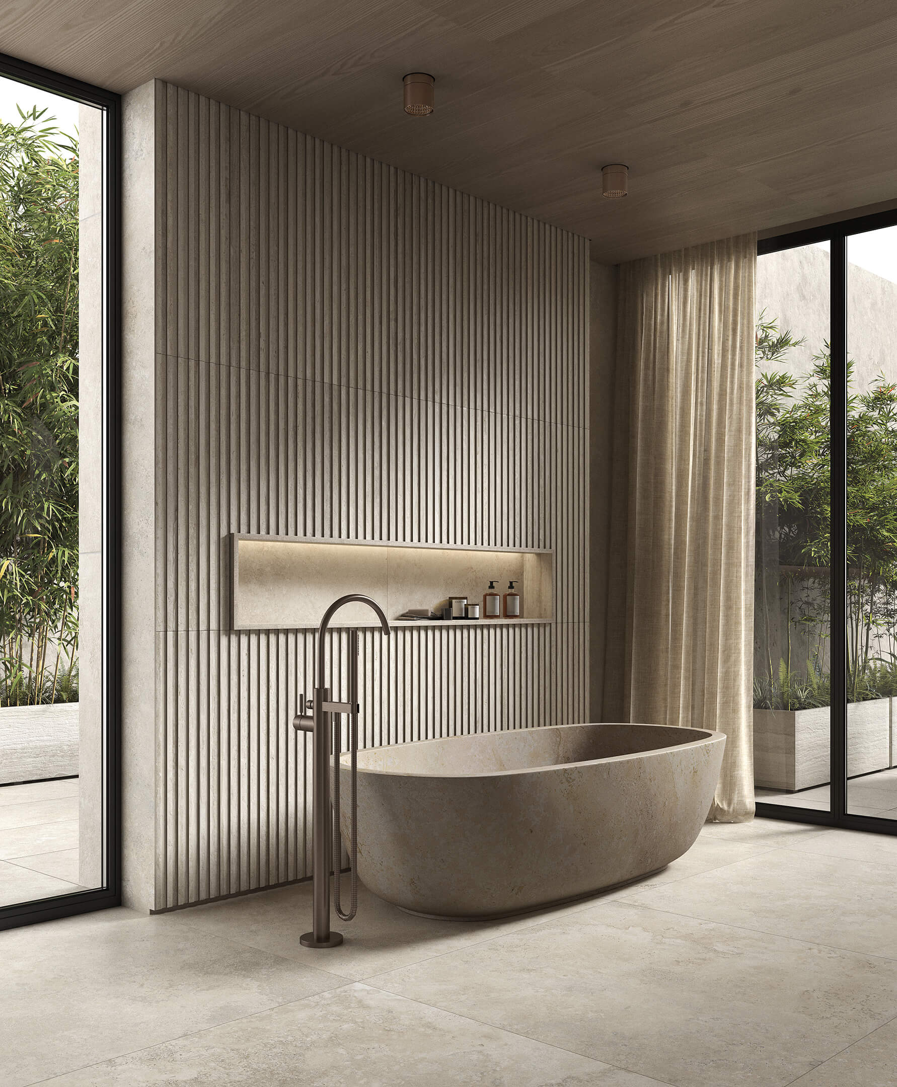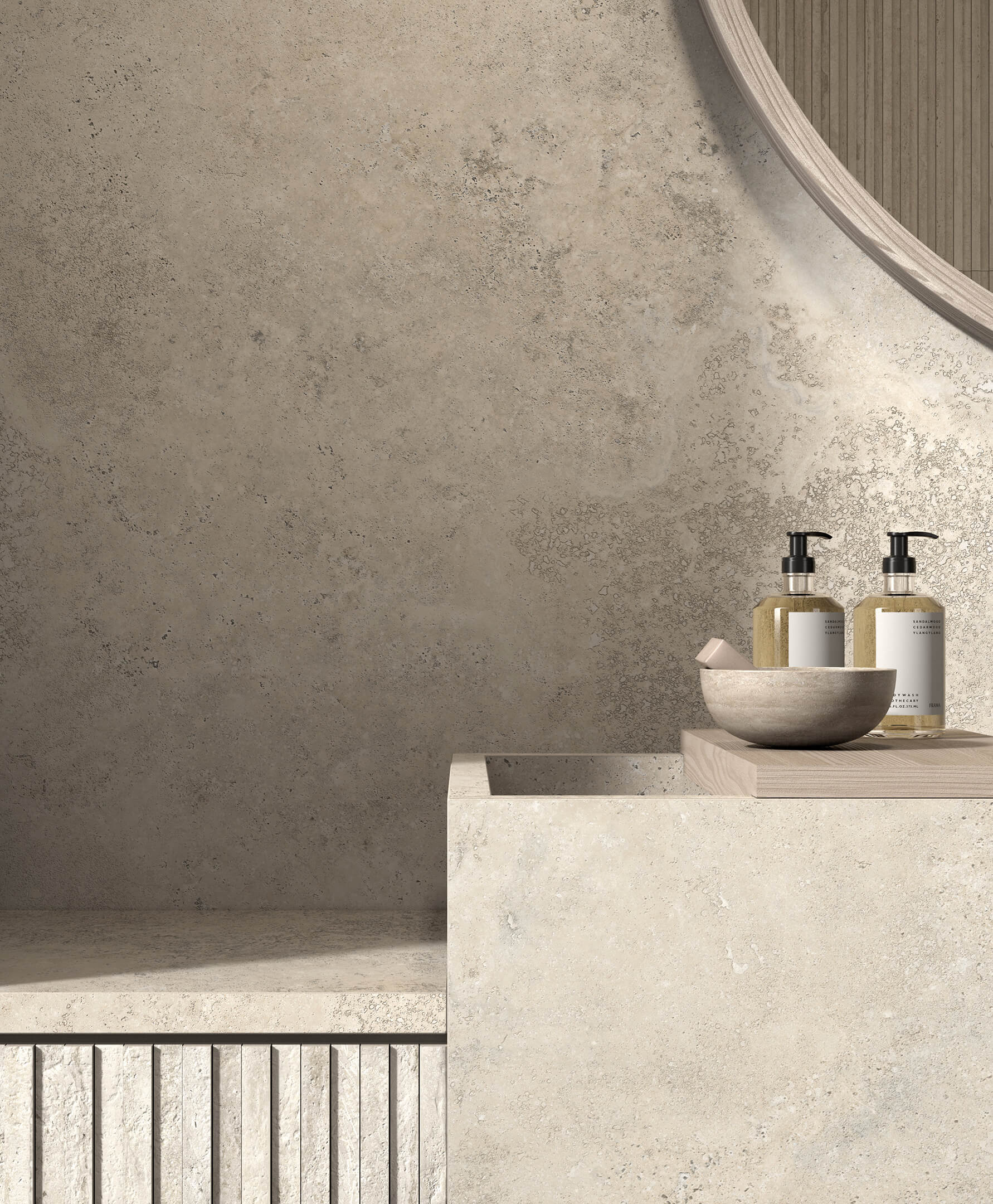 Kronos Nativa – Falda Aurum laat je de magie van Travertin ervaren in combinatie met de veelzijdigheid van keramiek. Creëer een oase van tijdloze schoonheid in jouw interieur met de warme uitstraling van Falda Aurum, een perfecte harmonie tussen natuur en design.