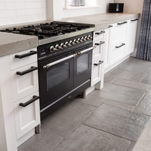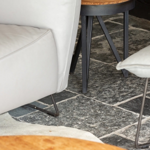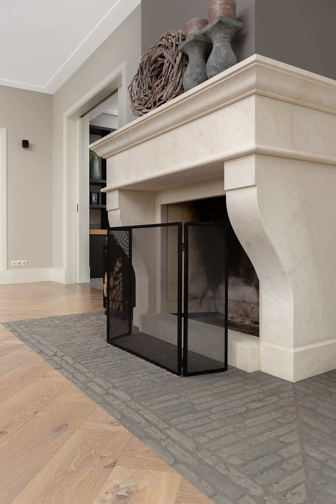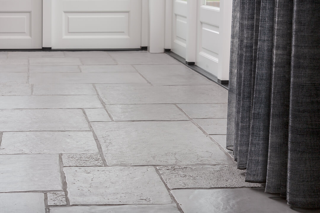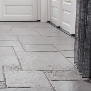 In het huis werd de begane grond voorzien van Bourgondische dallen vloer. Deze Bourgondische dallen van Chateau Carreau werden geleverd in de kleur Geneve. De Bourgondische dallen van Chateau Carreau zijn verwerkt in een wildverband.