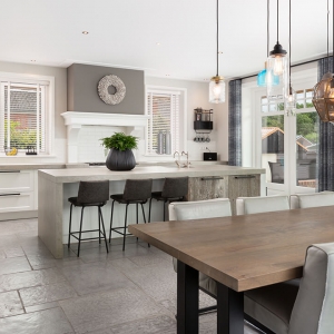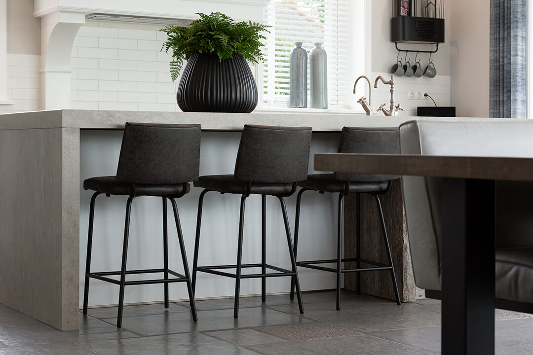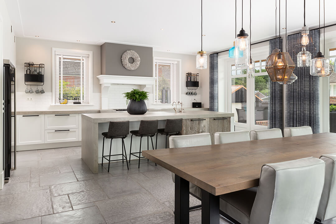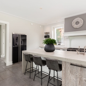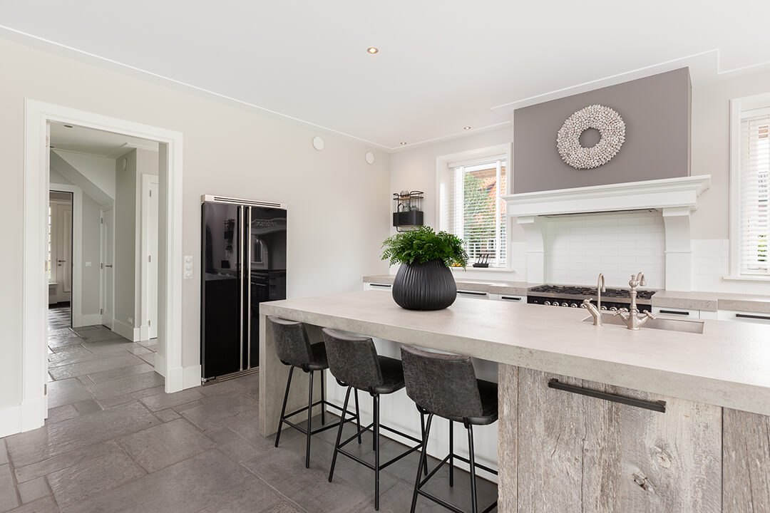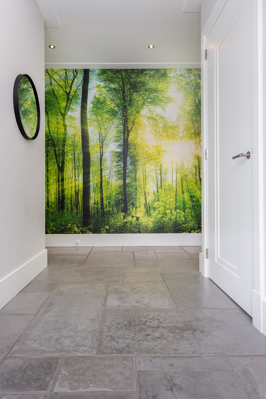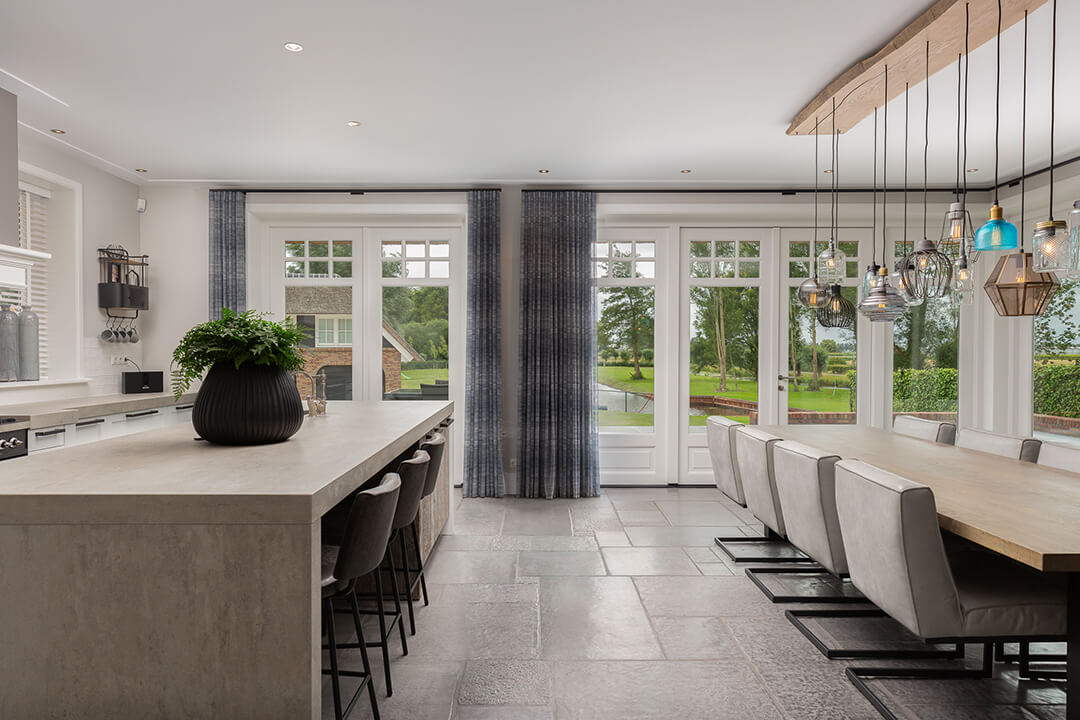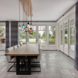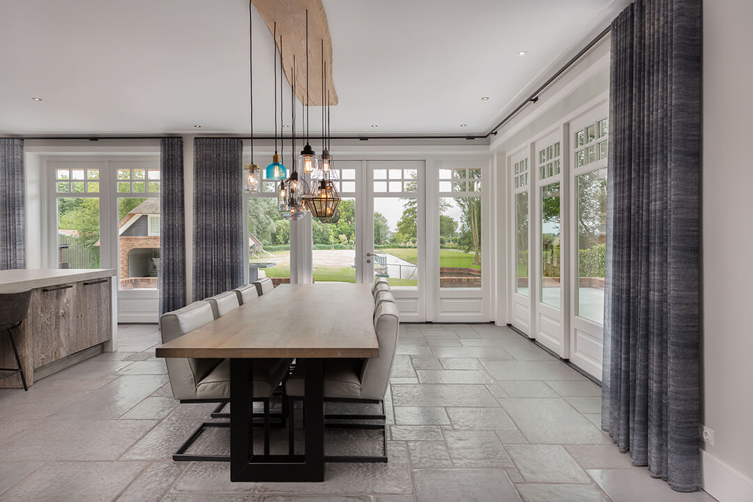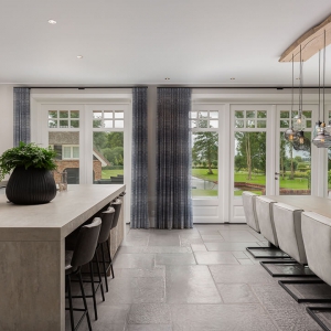 Voor deze landelijk moderne villa werd gezocht naar materialen die extra sfeer in de ruimtes zouden brengen. Deze materialen werden gevonden in de showroom van Van den Heuvel & Van Duuren.